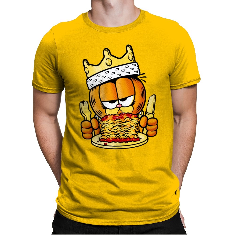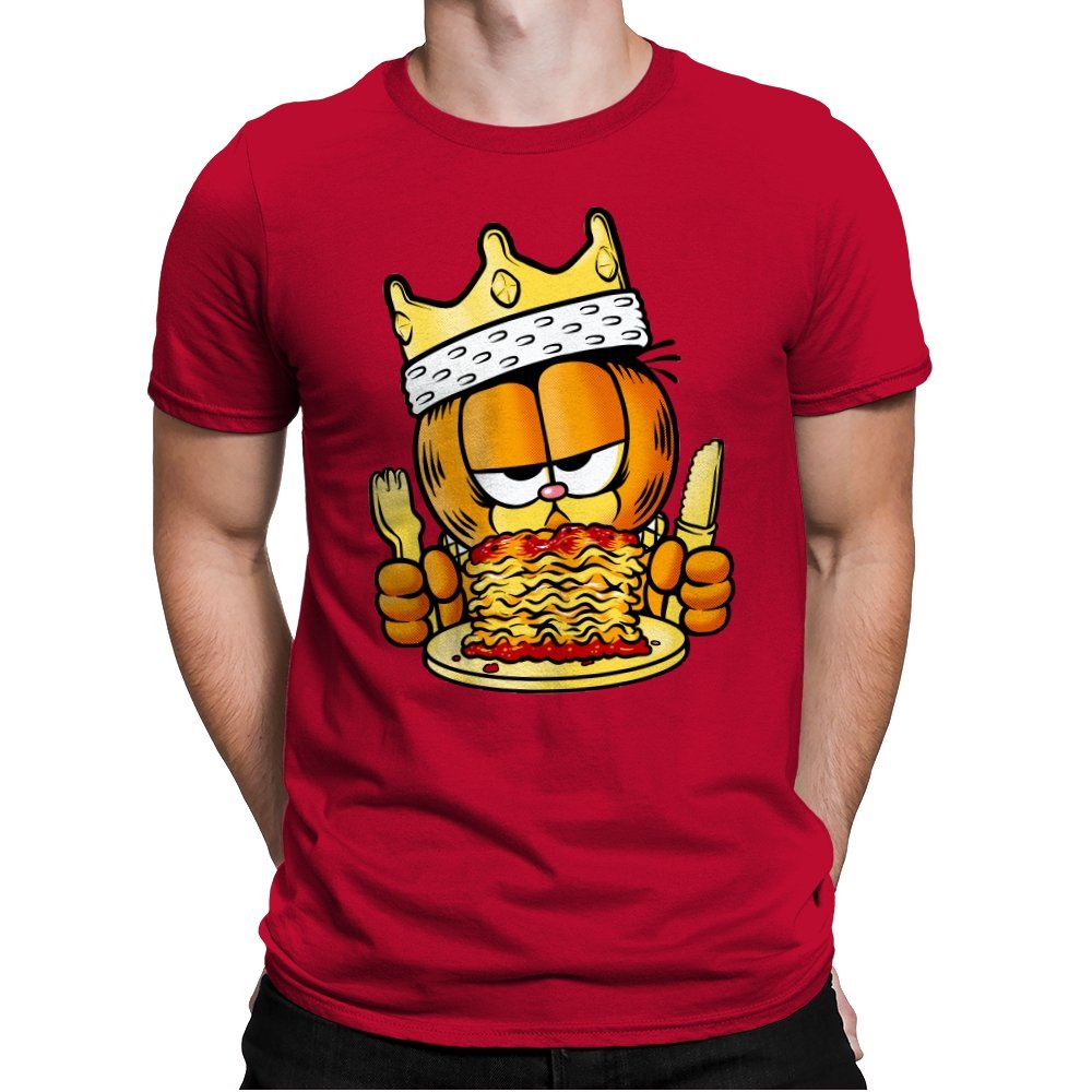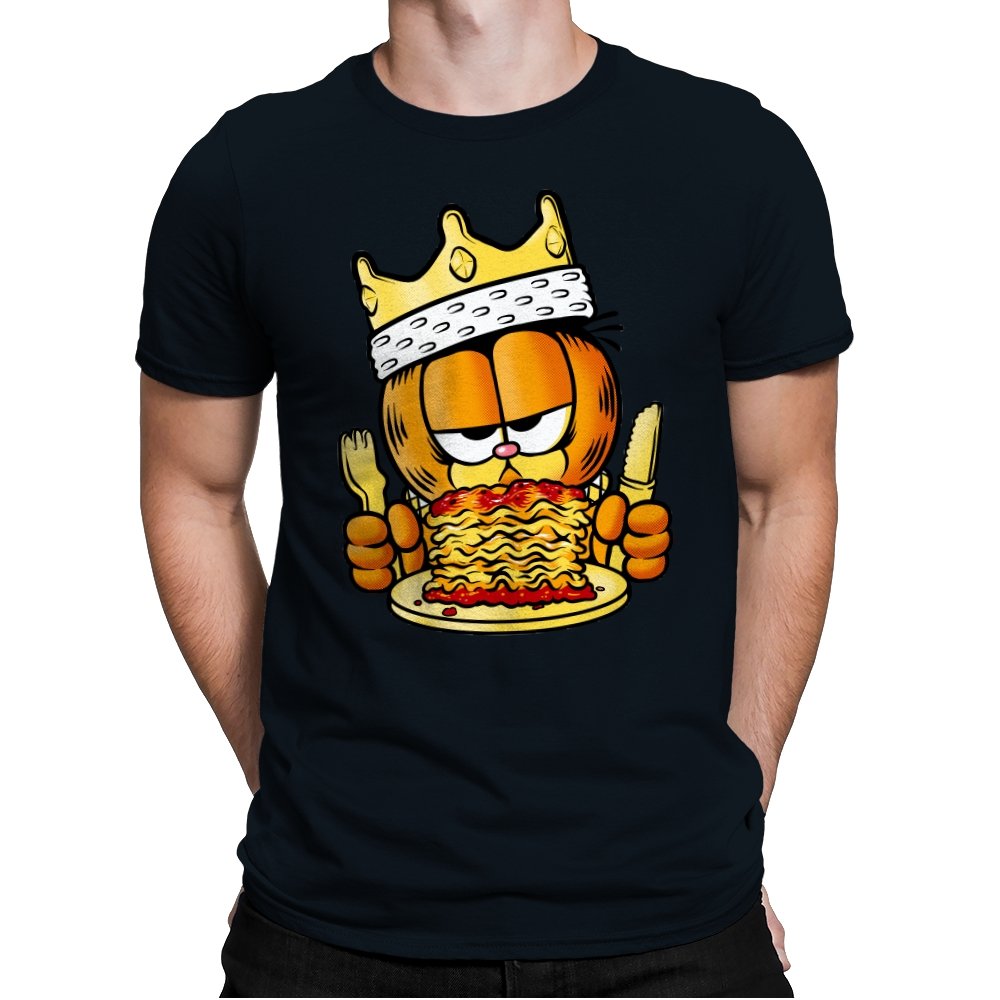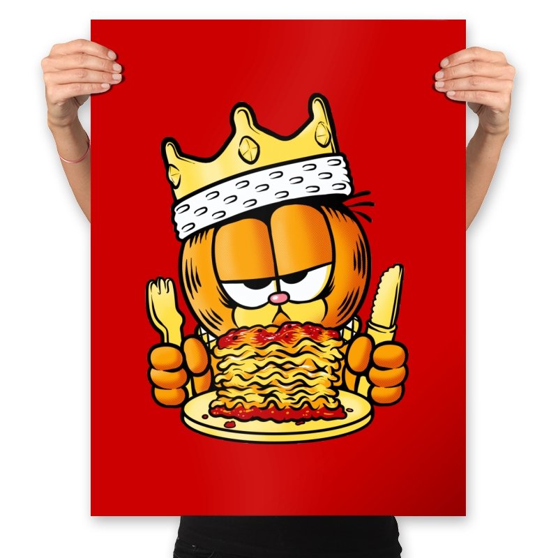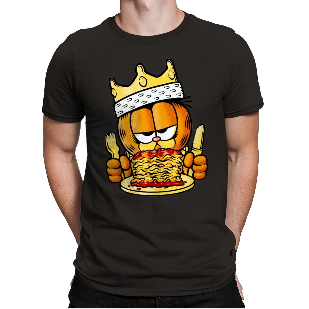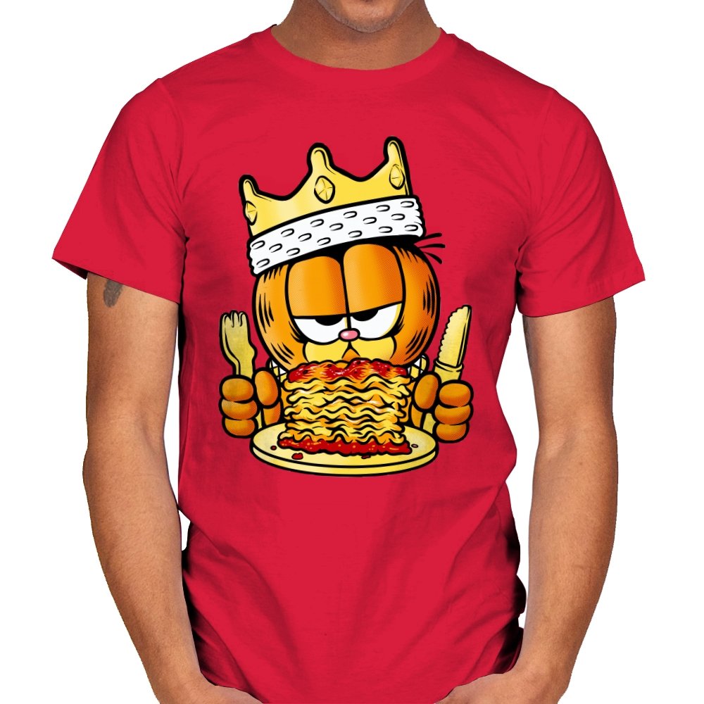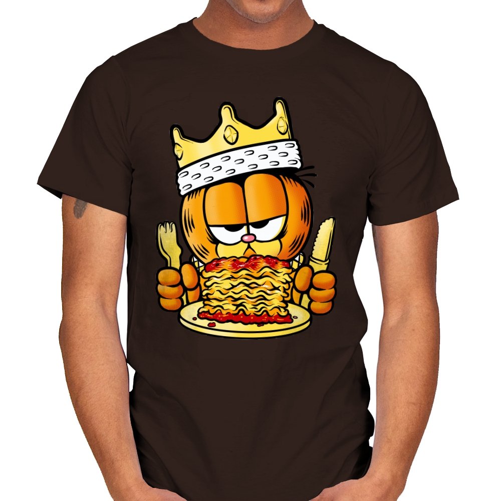This design crowns a famously unimpressed cat and lets the attitude do the rest. The crown, the towering stack of lasagna, and the deadpan stare all work together to turn indulgence into authority. It feels like a mashup of royalty, rap-era bravado, and classic comic timing, delivered without a single wasted detail. The joke lands instantly if you know the reference, and it does not ask for permission.