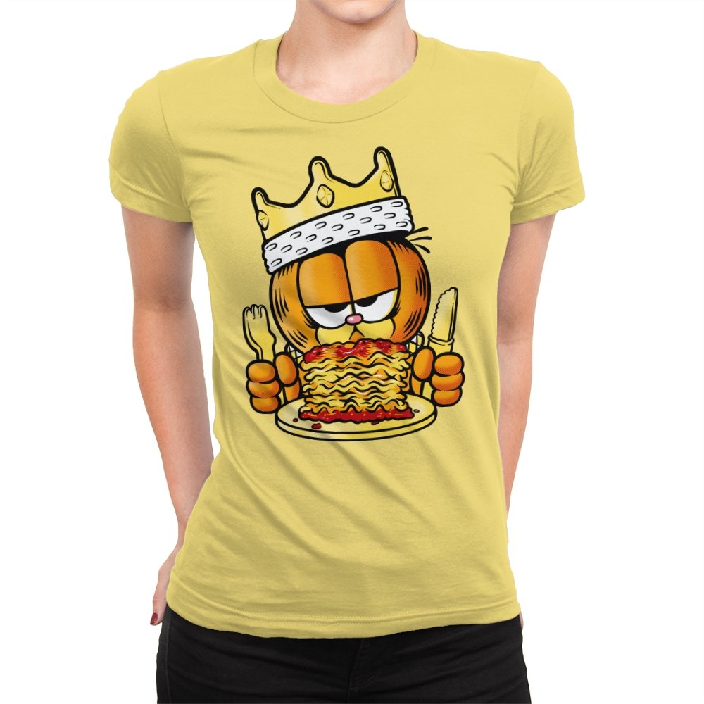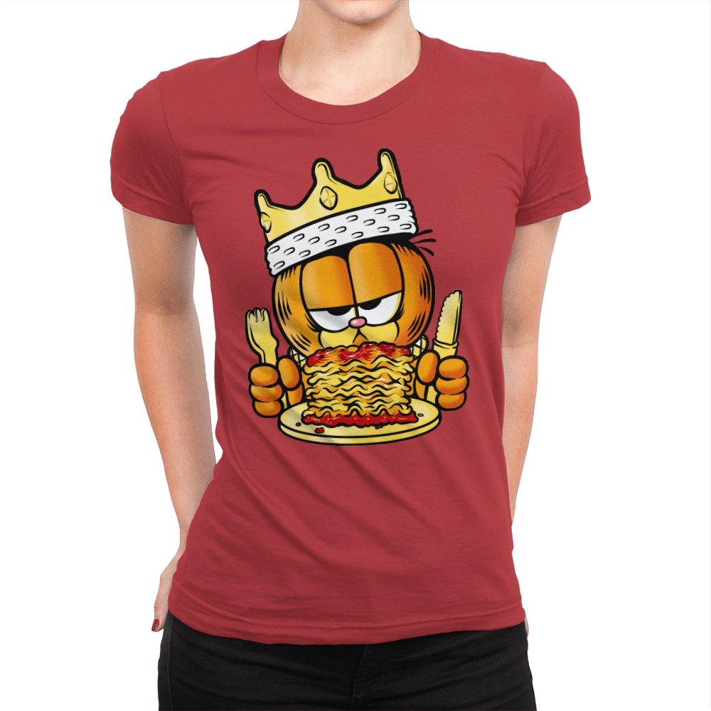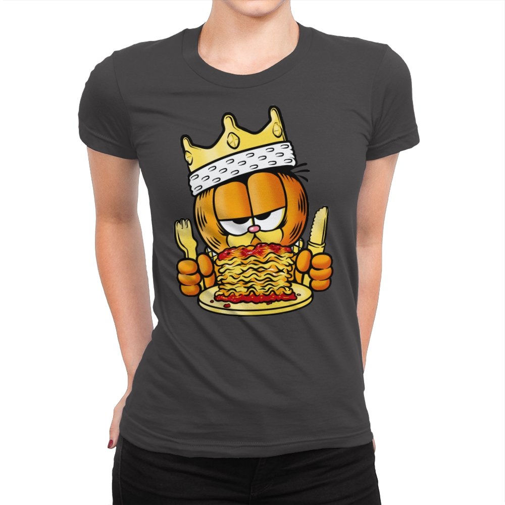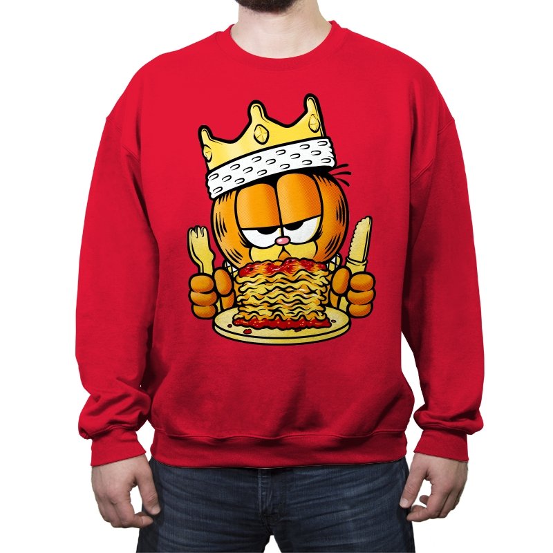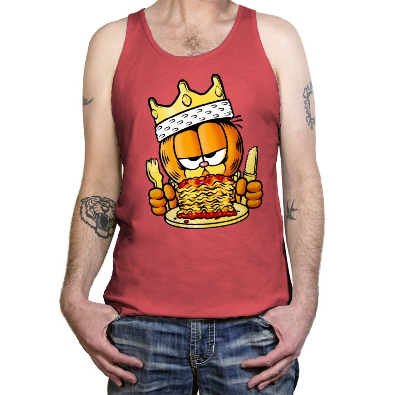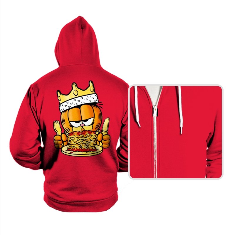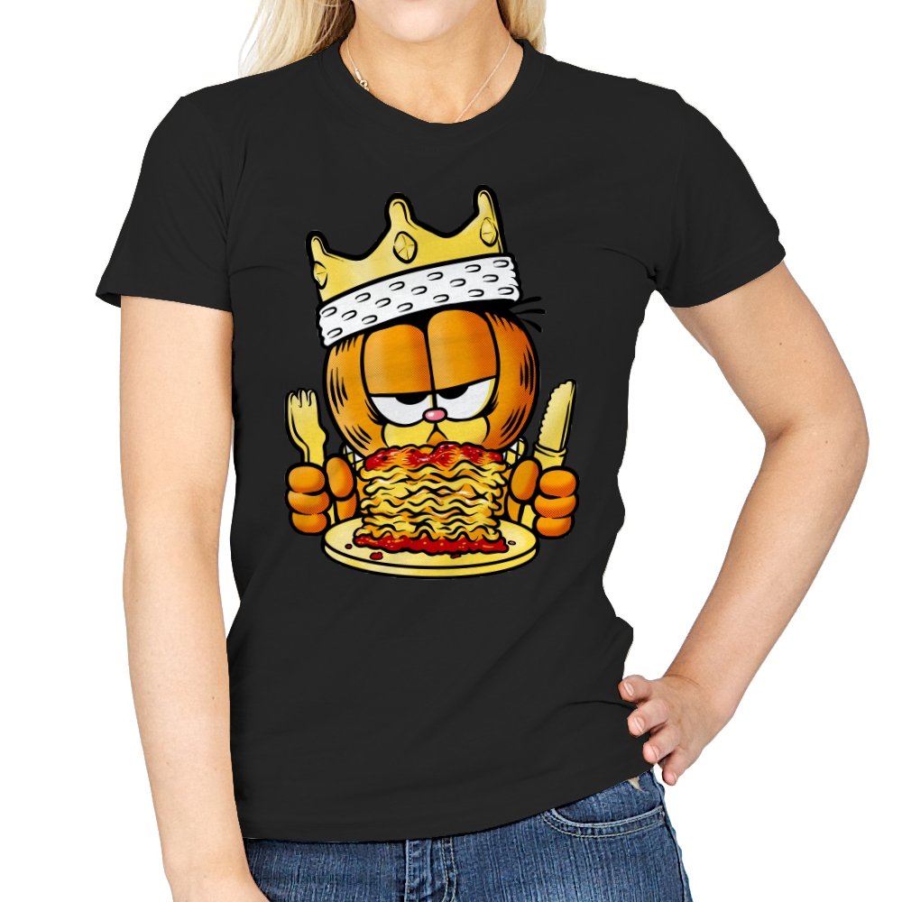This design crowns a famously unimpressed cat and lets the attitude do the rest. The crown, the towering stack of lasagna, and the deadpan stare all work together to turn indulgence into authority. It feels like a mashup of royalty, rap-era bravado, and classic comic timing, delivered without a single wasted detail. The joke lands instantly if you know the reference, and it does not ask for permission.