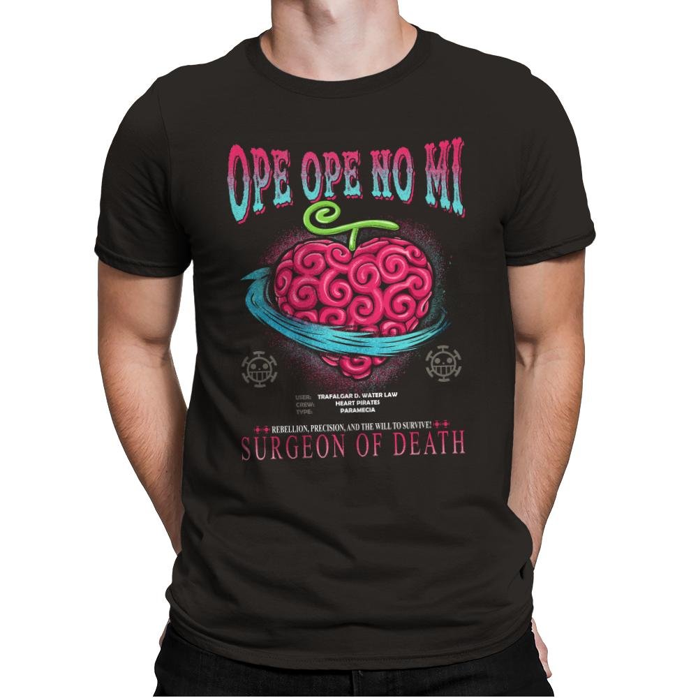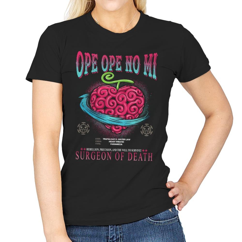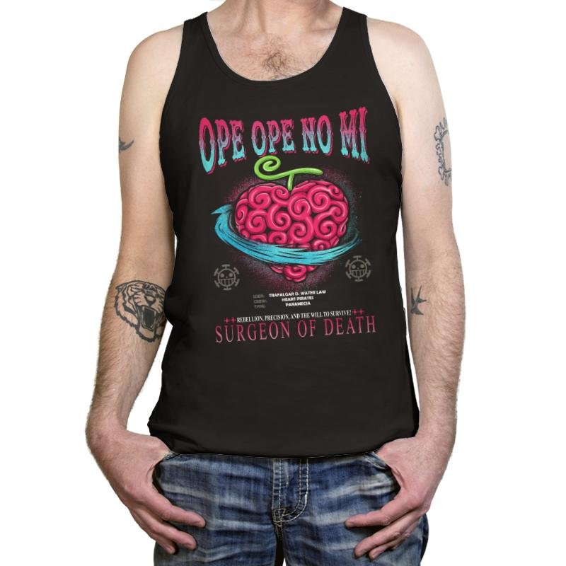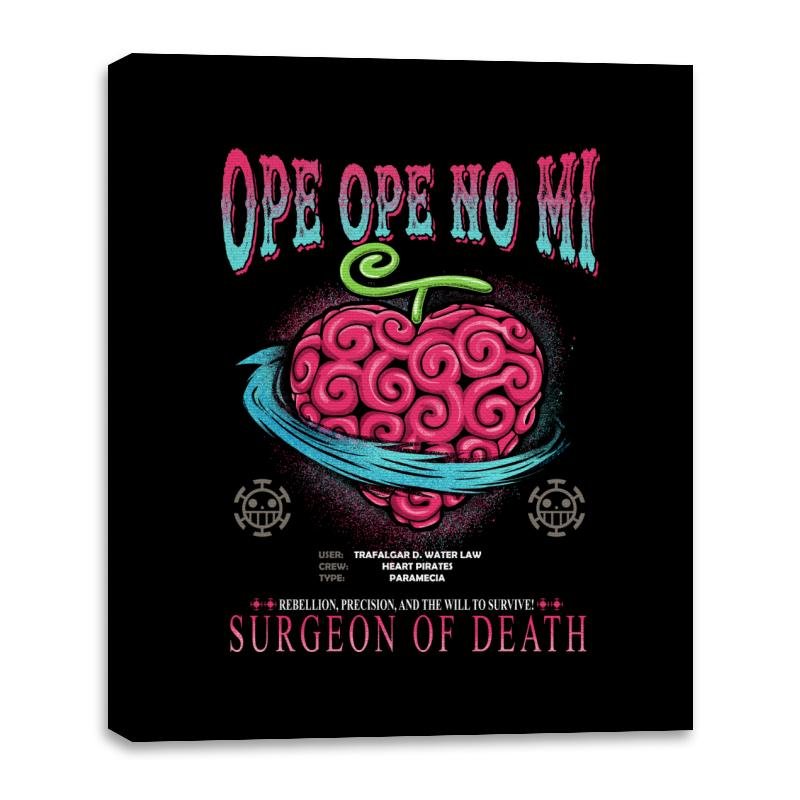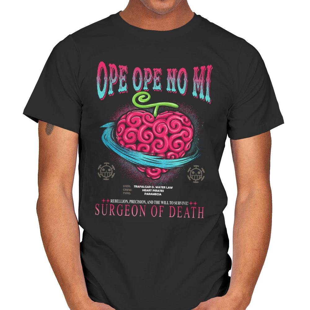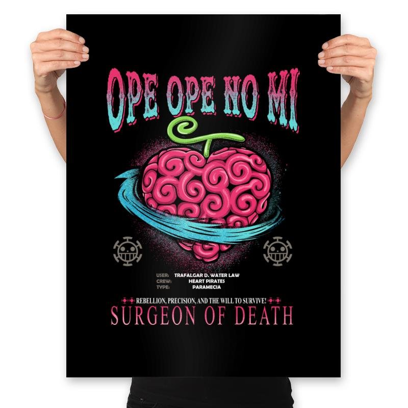 Ope Ope No Mi Devil Fruit treats an iconic power source from pirate lore as if it were a biological specimen cataloged by a very dramatic doctor. The design shows a heart shaped fruit with curling patterns and a mint green stem, wrapped by a teal ribbon of surgical energy. Supplementary text lists owners and affiliations like clinical notes, while emblematic seals flank the composition to reinforce status and morbidity. Fans immediately recognize the blend of medicine, rebellion, and treachery that defines this artifact.