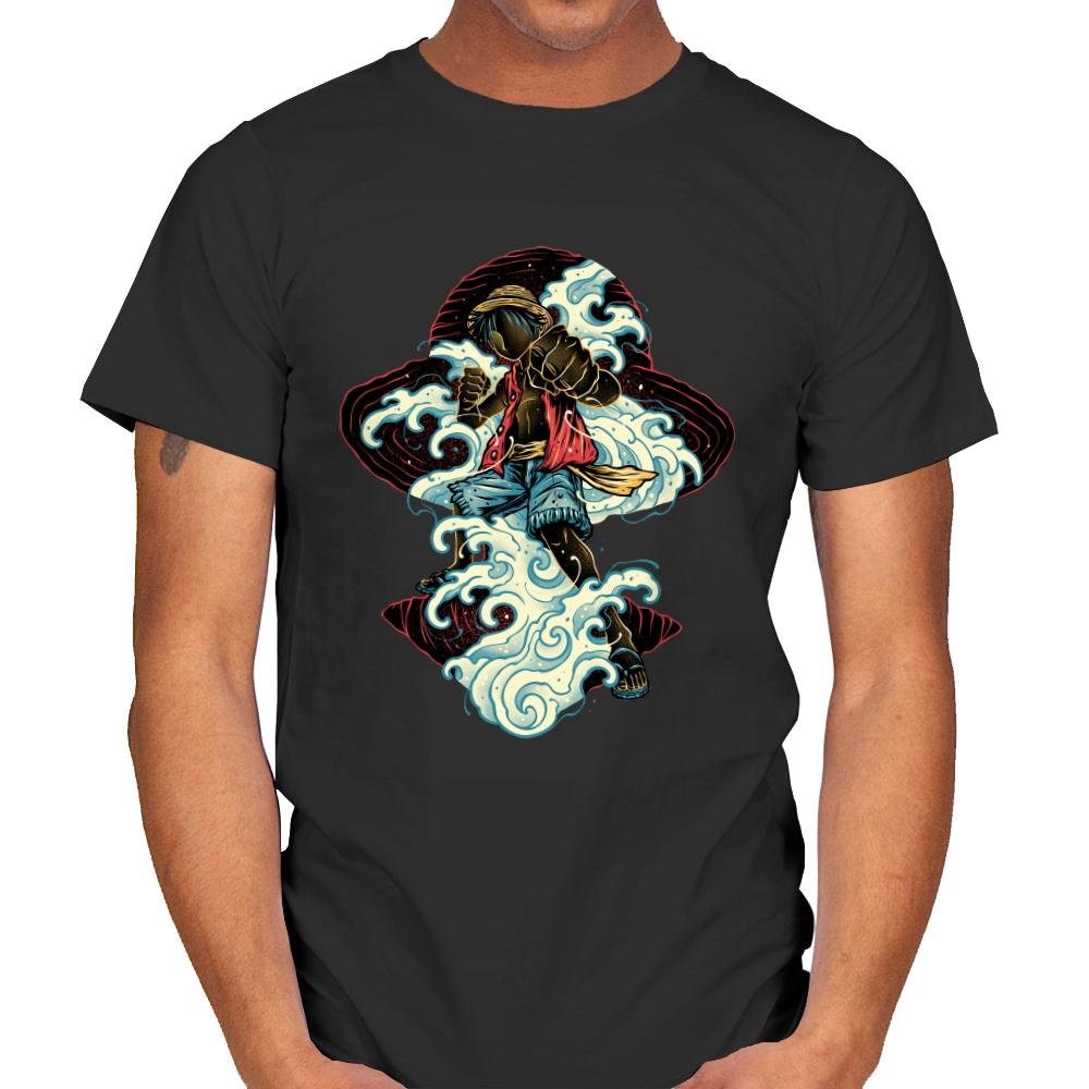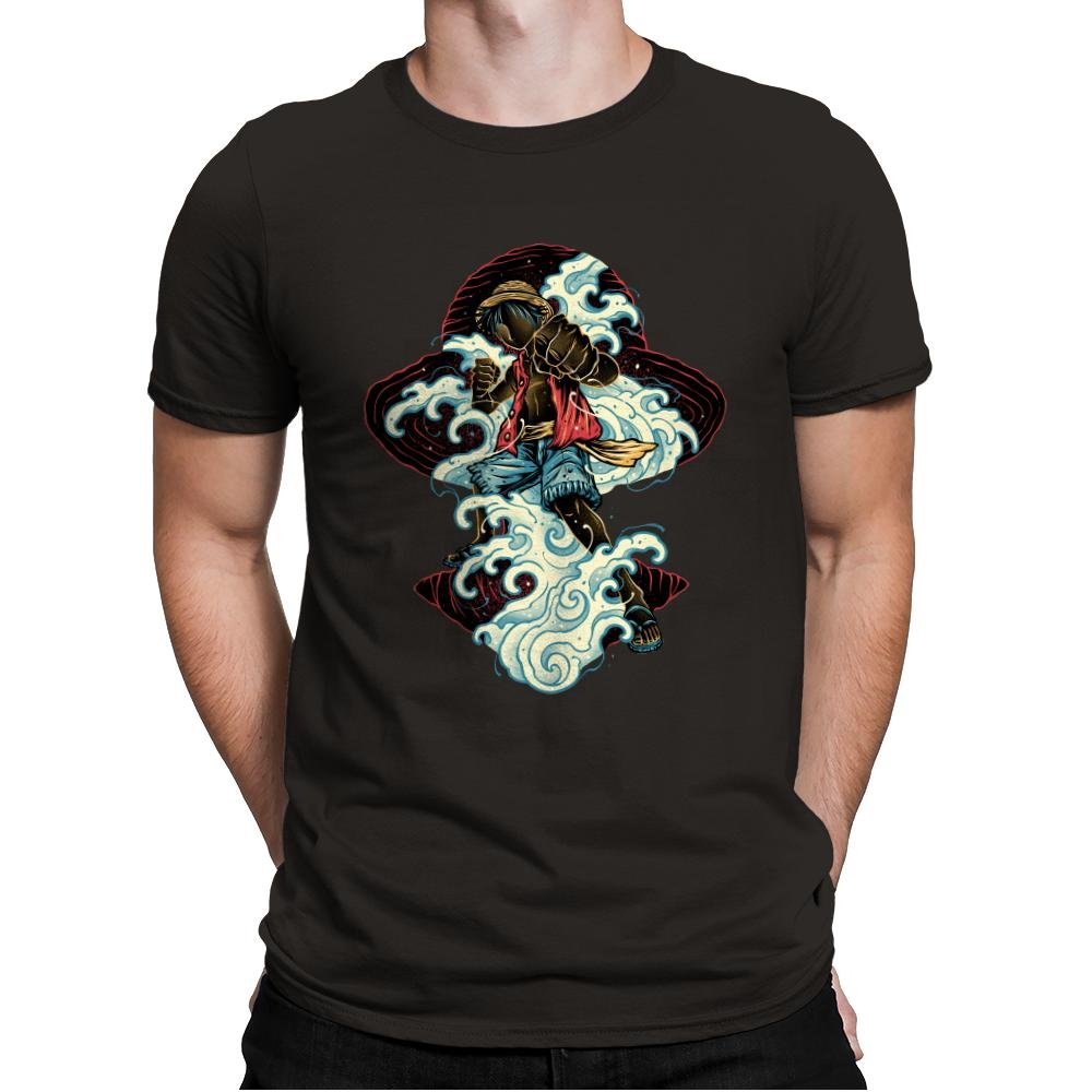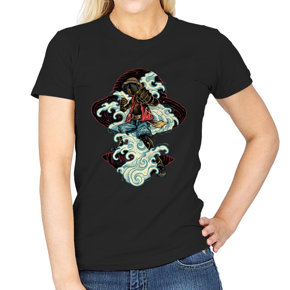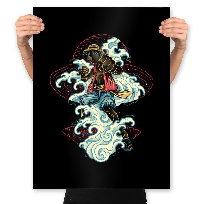 This design shows a pirate king in motion, driving forward through curling waves with nothing held back. The water wraps around him like an extension of his will, drawn in bold, flowing lines that feel alive rather than decorative. It captures that moment when strength, freedom, and stubborn resolve all collide at once. If you know the story, you know this is not about the sea itself, it is about conquering limits.
