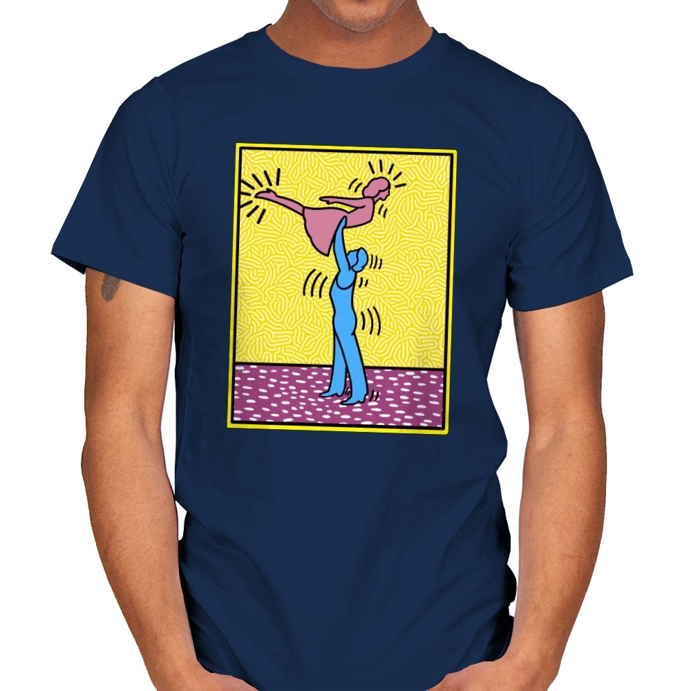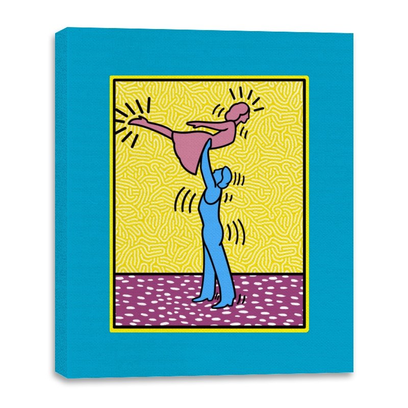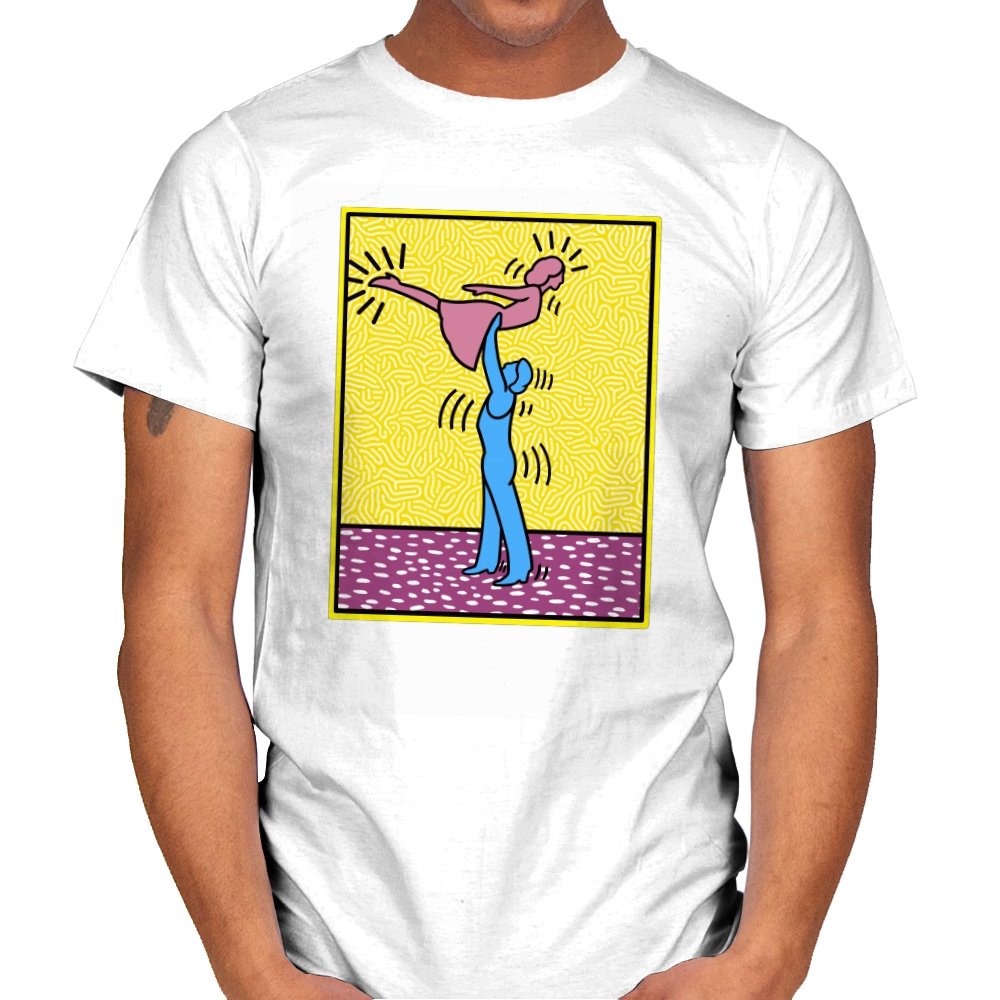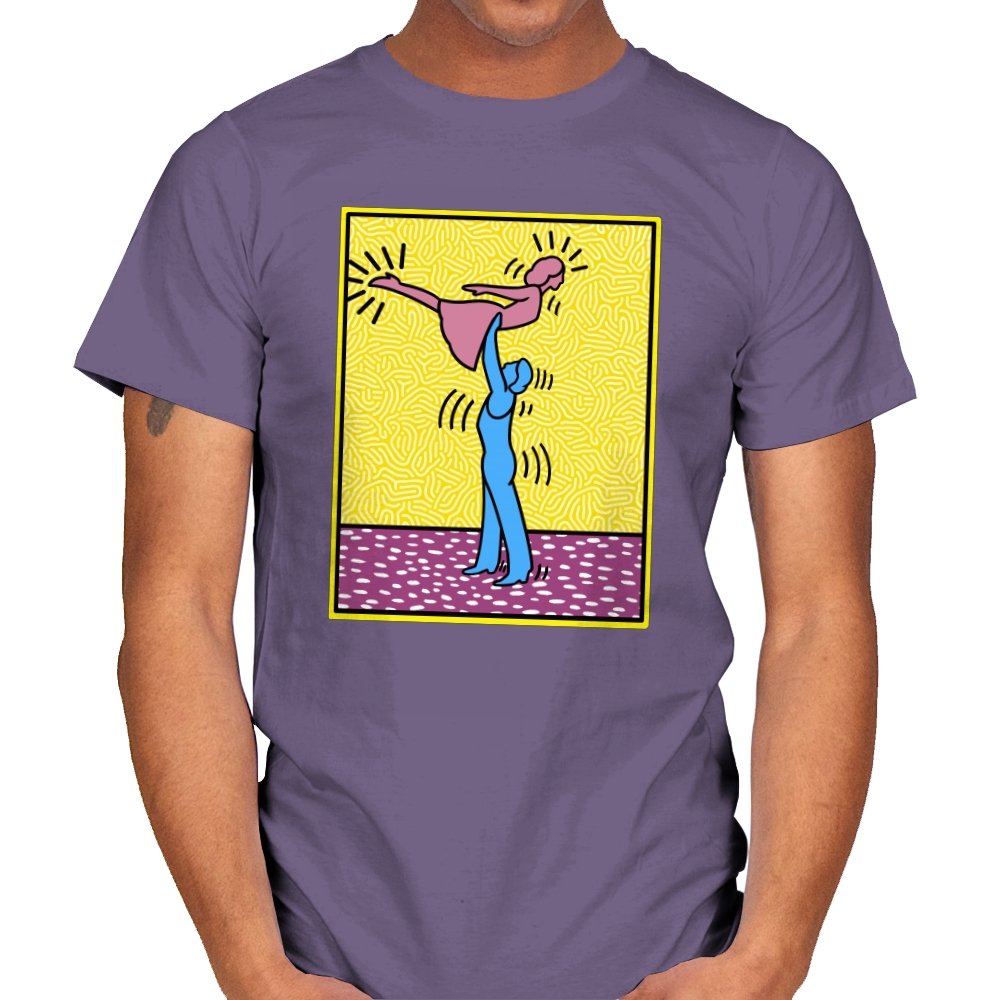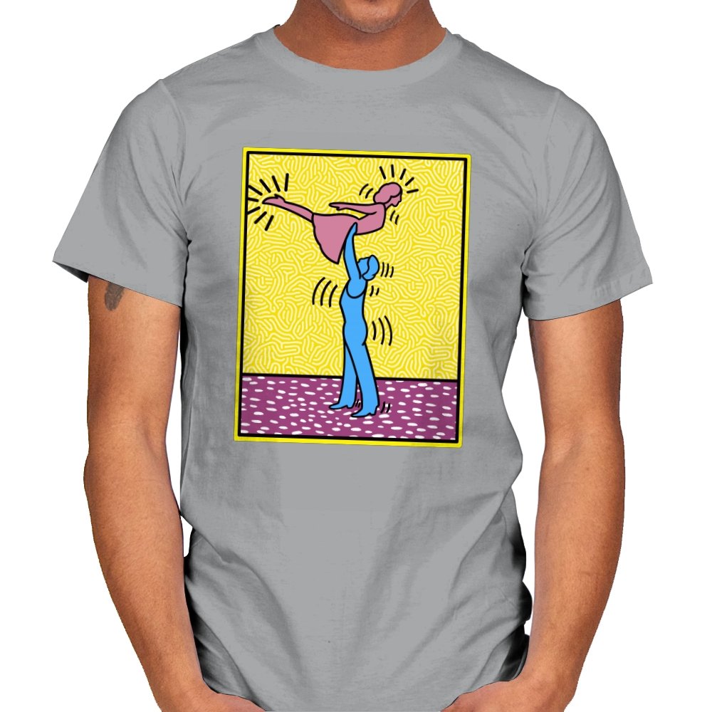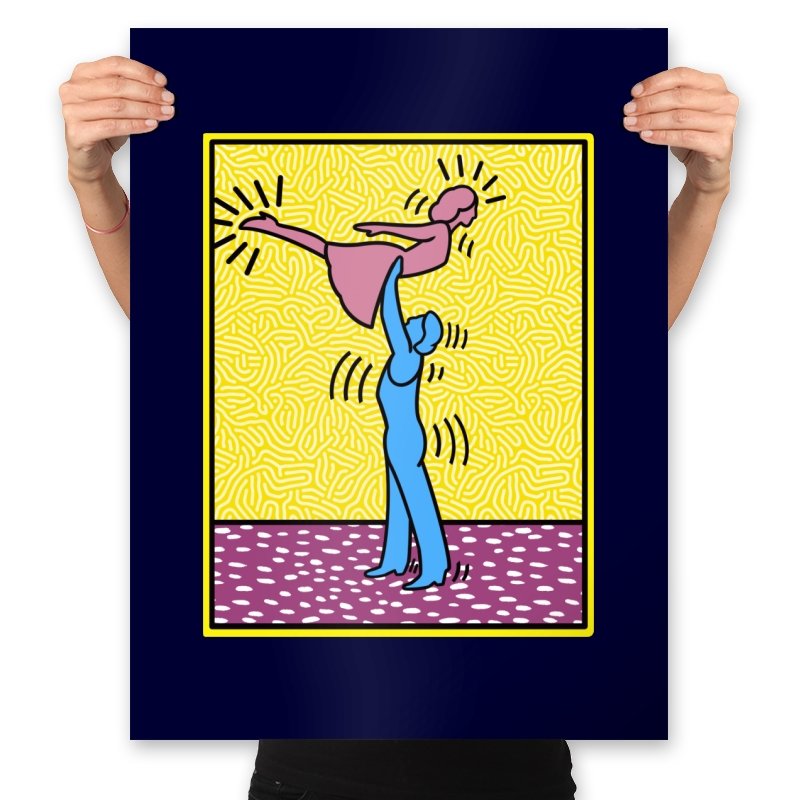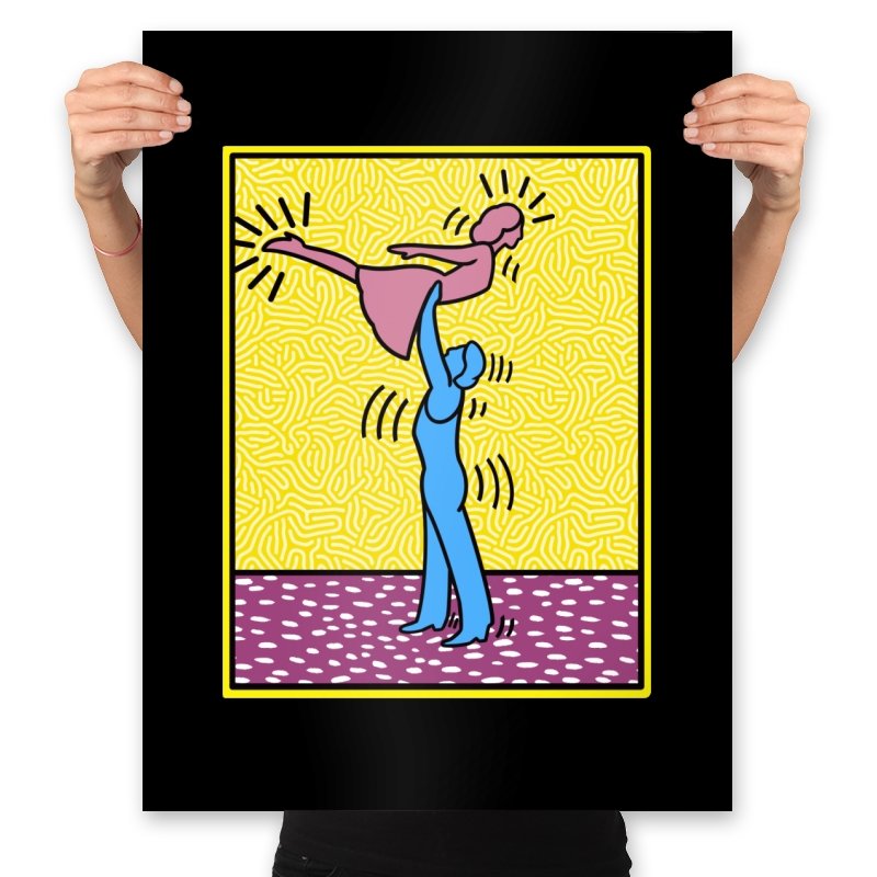 This design freezes a familiar pop-art moment mid-lift, where movement feels both playful and oddly formal. Two simplified figures balance color and motion, like a choreographed joke told with perfect timing. The bright background and thick outlines lean into that knowingly flat, gallery-wall energy. If you recognize the reference, you already understand why the pose matters.