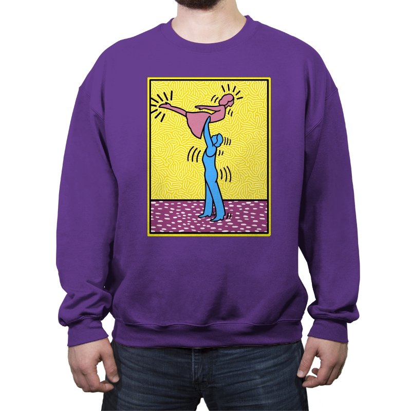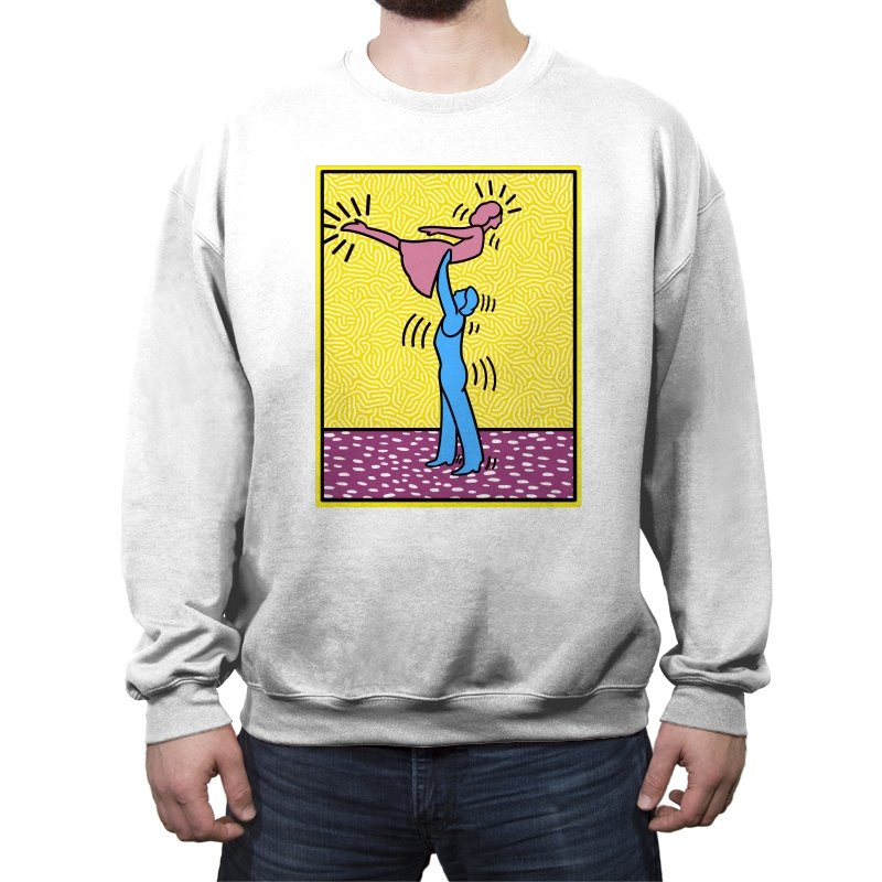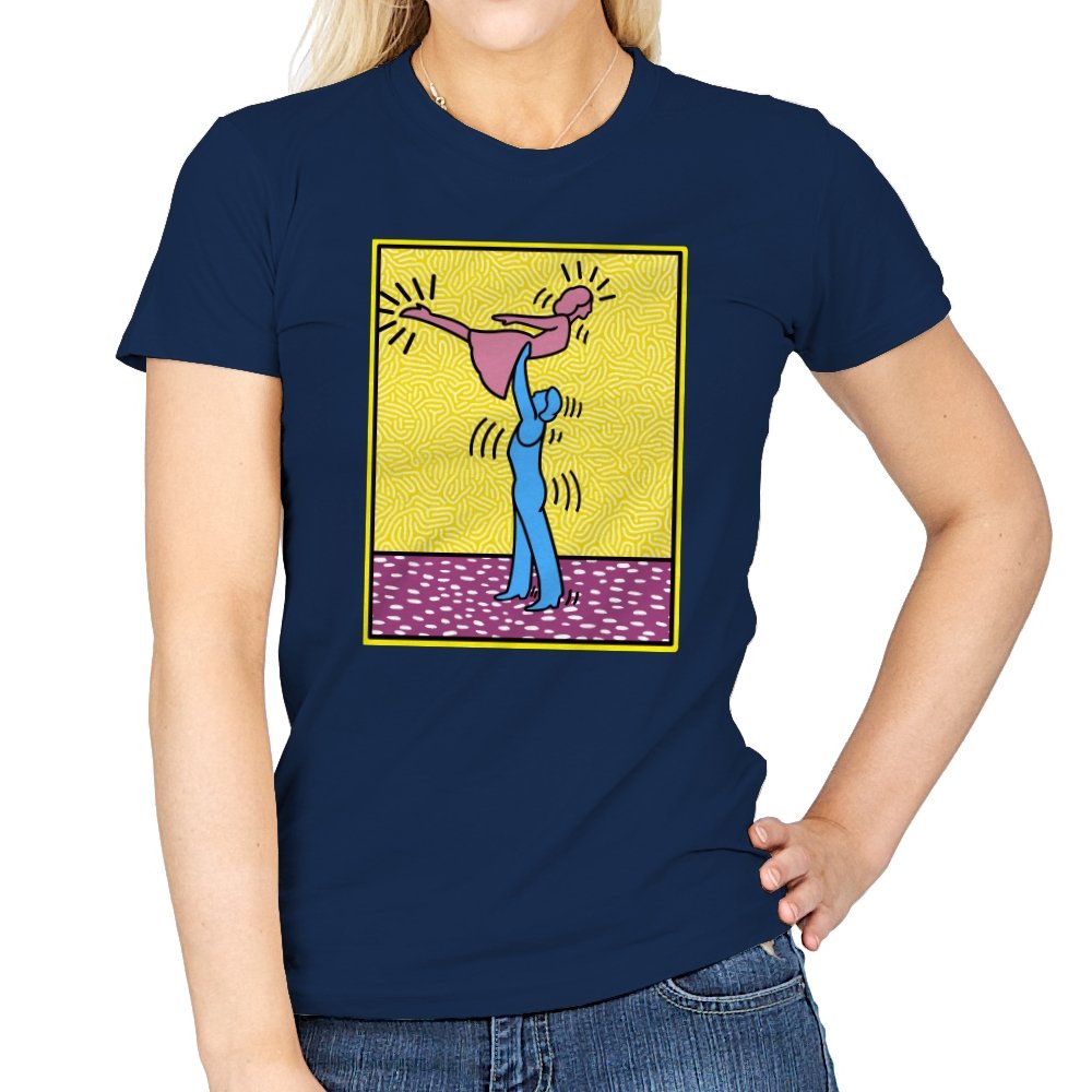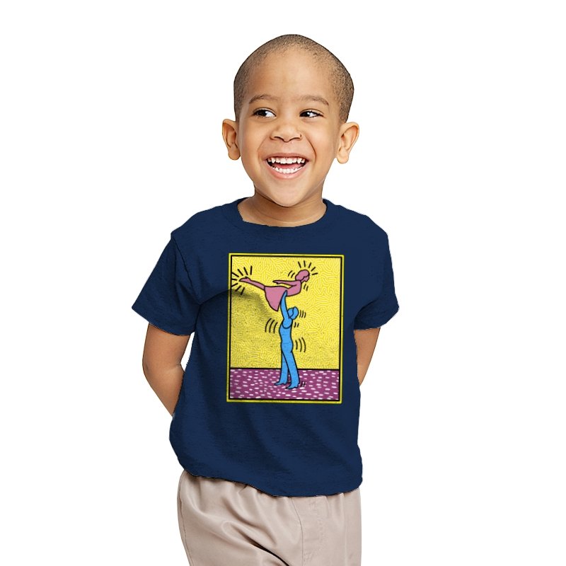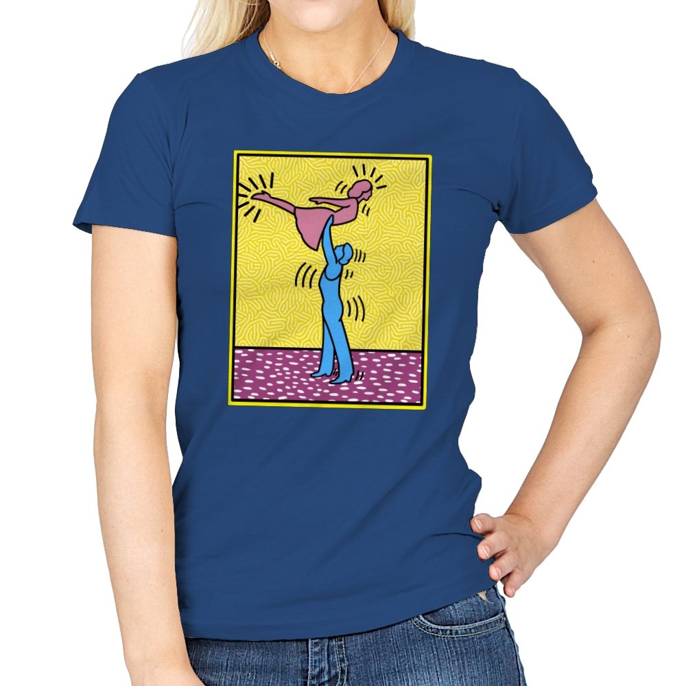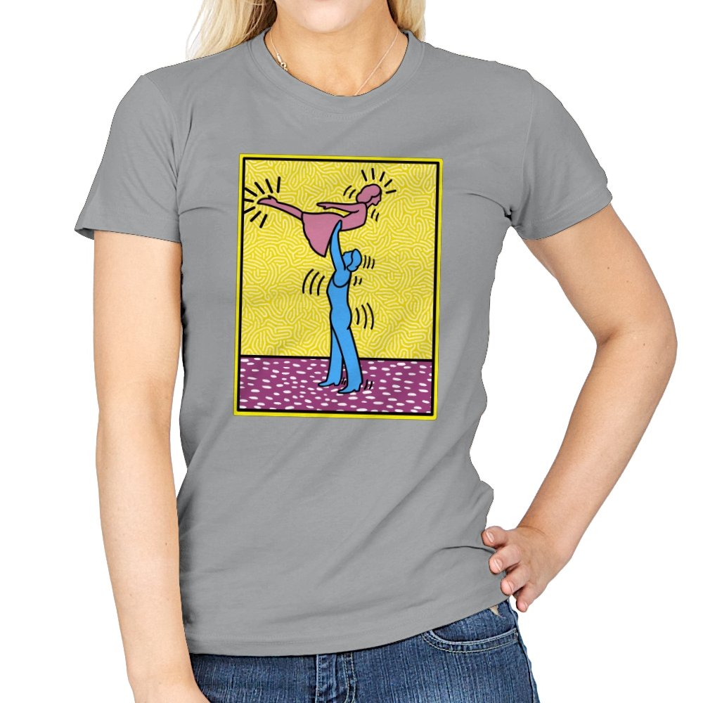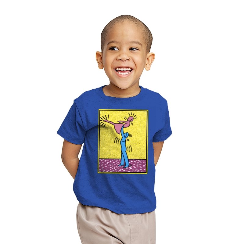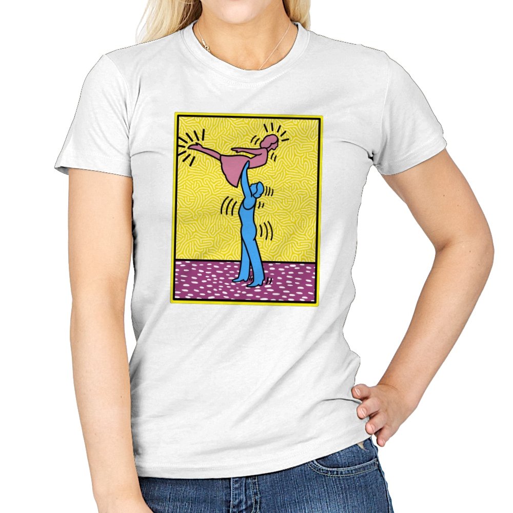 This design freezes a familiar pop-art moment mid-lift, where movement feels both playful and oddly formal. Two simplified figures balance color and motion, like a choreographed joke told with perfect timing. The bright background and thick outlines lean into that knowingly flat, gallery-wall energy. If you recognize the reference, you already understand why the pose matters.