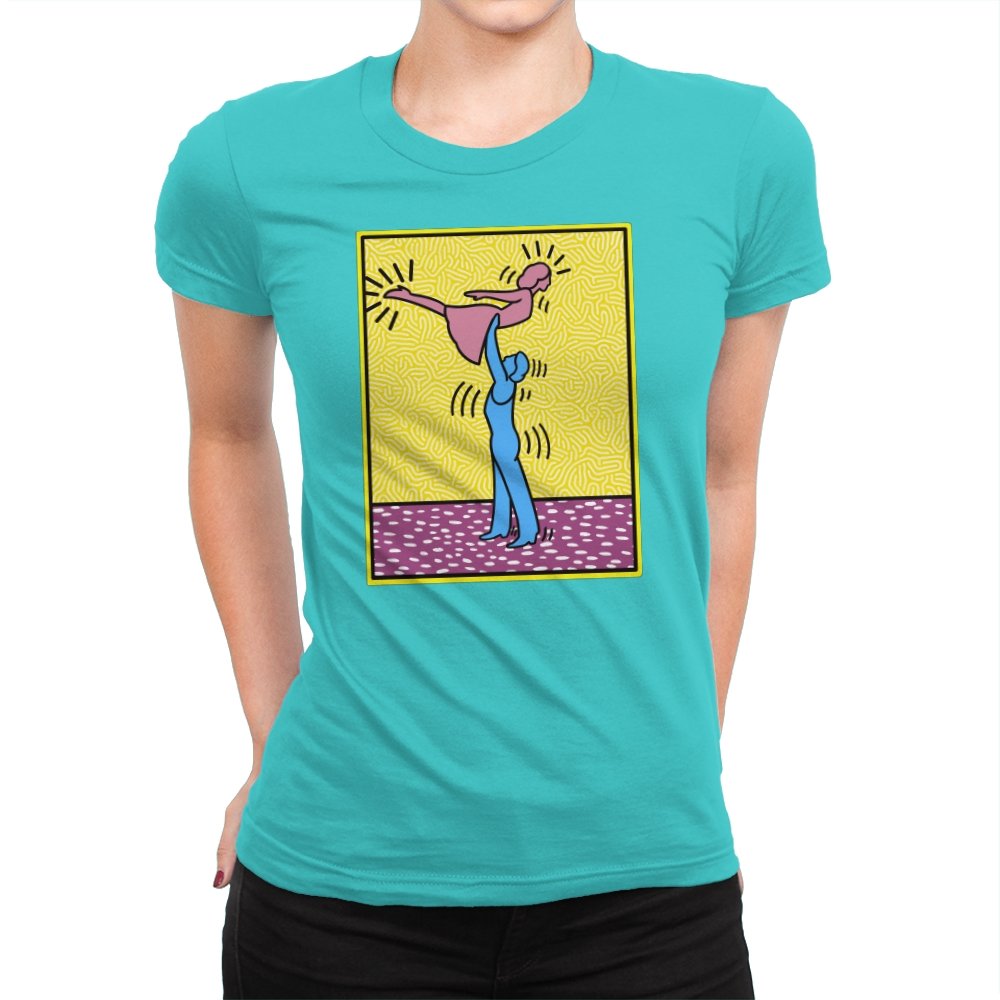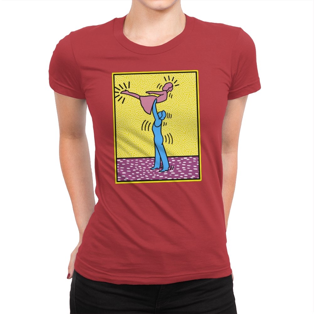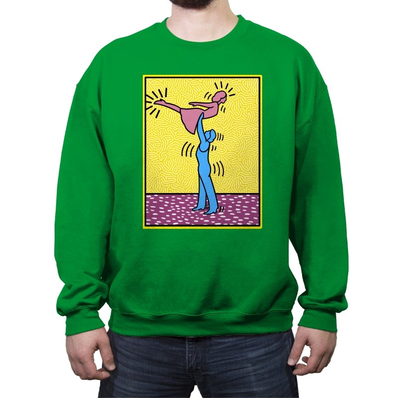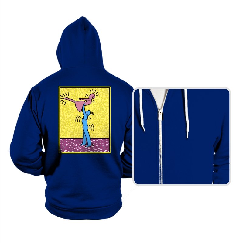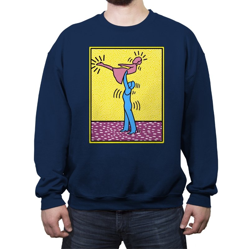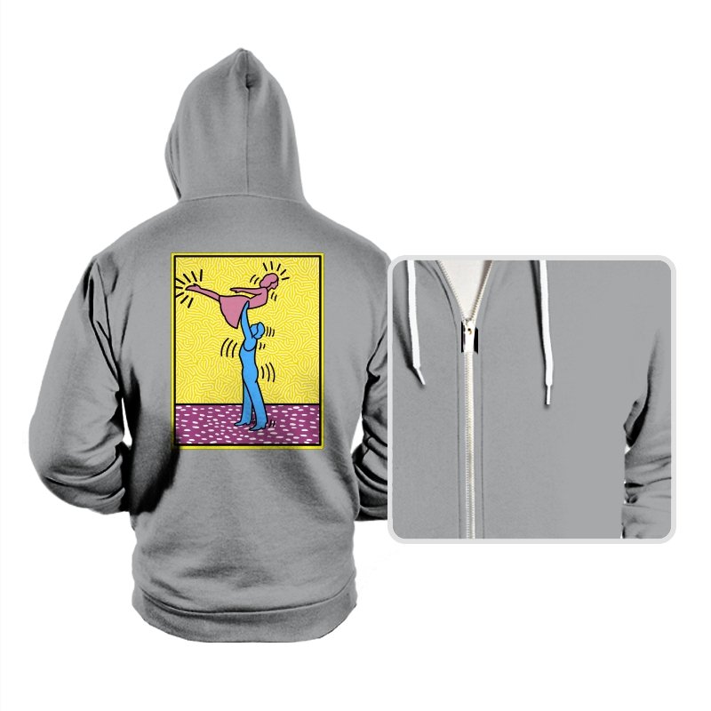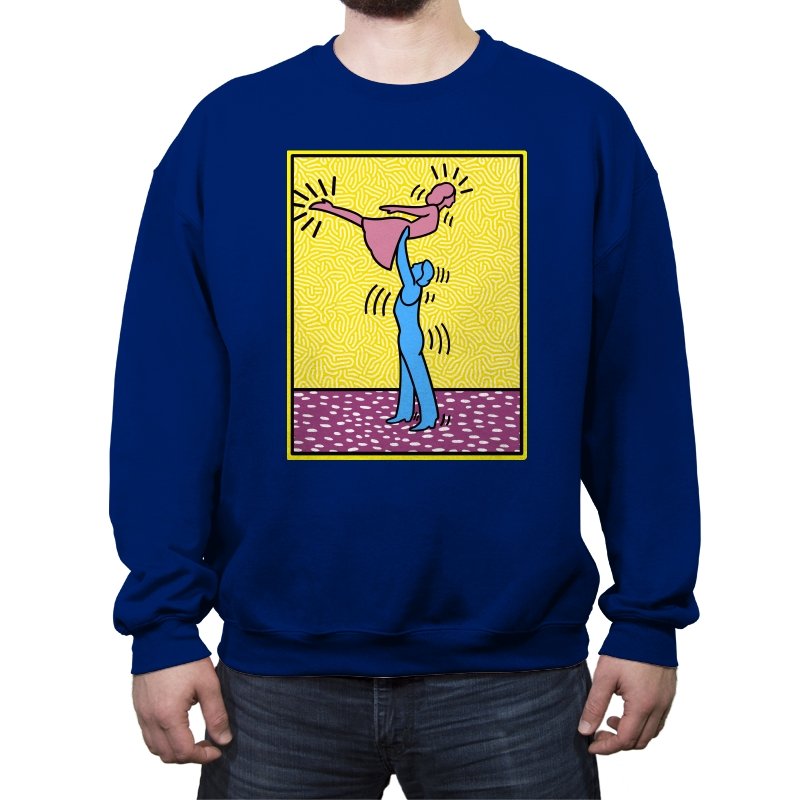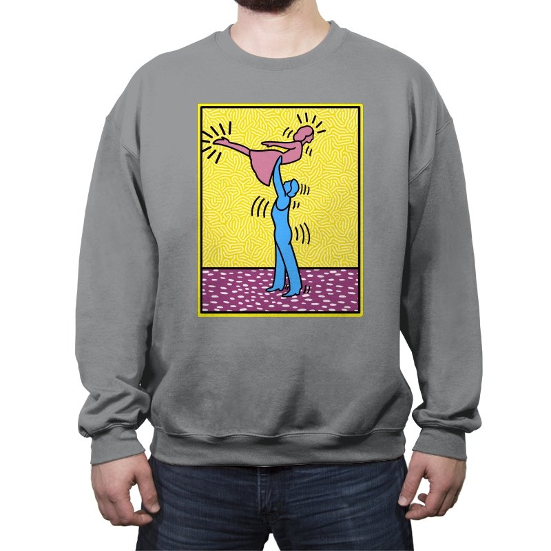 This design freezes a familiar pop-art moment mid-lift, where movement feels both playful and oddly formal. Two simplified figures balance color and motion, like a choreographed joke told with perfect timing. The bright background and thick outlines lean into that knowingly flat, gallery-wall energy. If you recognize the reference, you already understand why the pose matters.