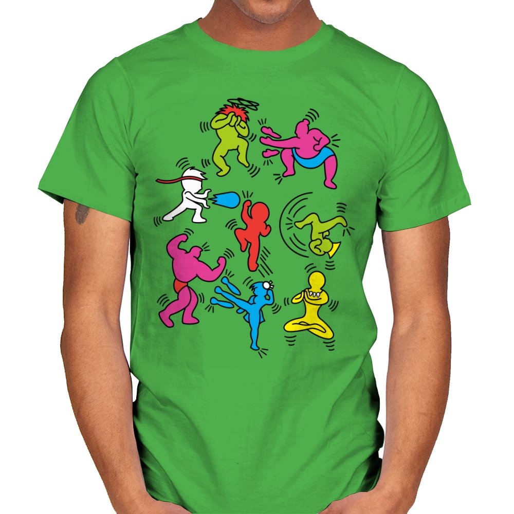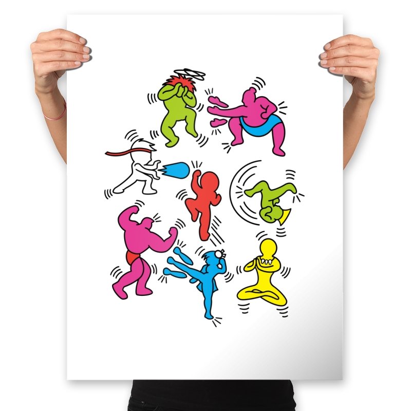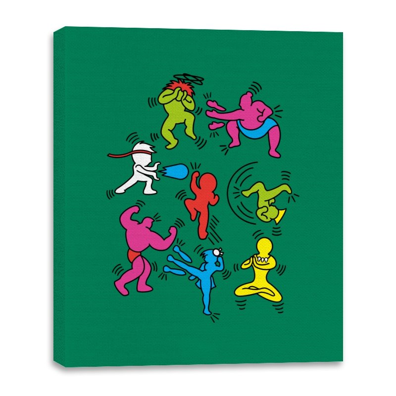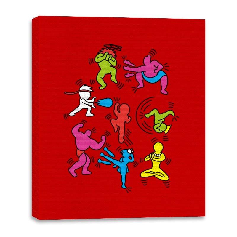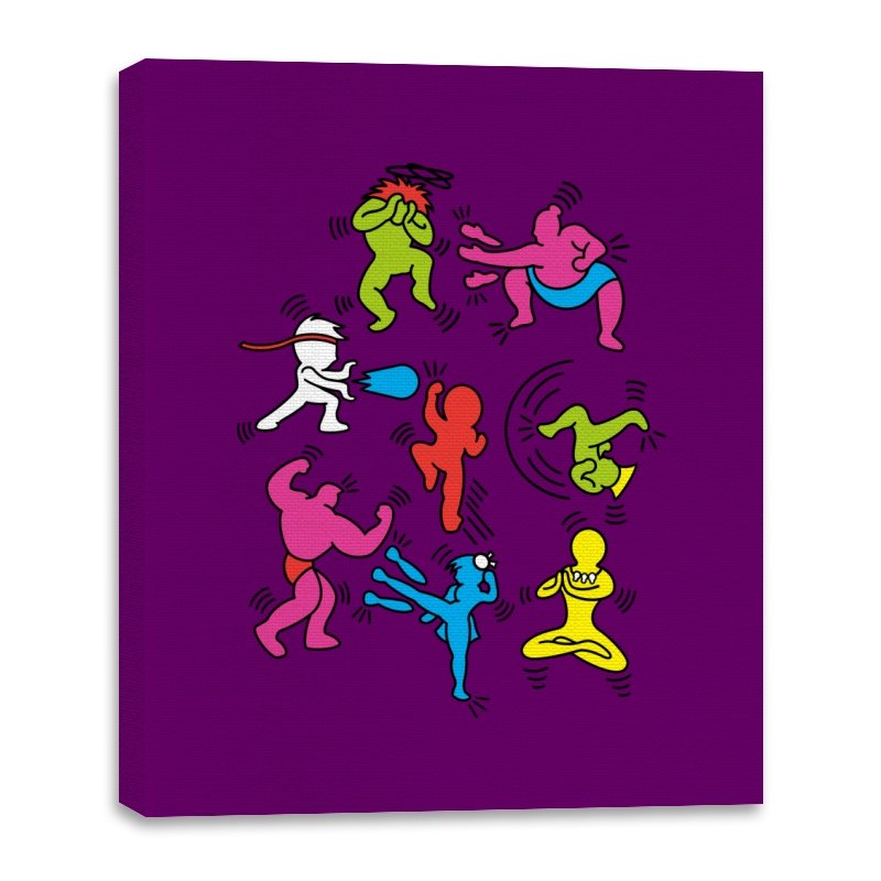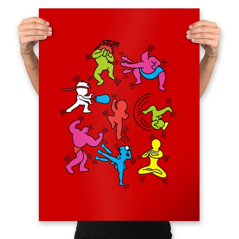 A vibrant mashup of quirky, colorful characters ready to battle it out in their own unique, exaggerated ways. Each fighter bursts with personality, referencing the iconic brawler games of old while infusing a fun, modern twist. The design showcases a playful energy that fans of retro gaming and pop culture will instantly recognize, with each character presented in a style that keeps the nostalgia alive without relying on over-the-top references.