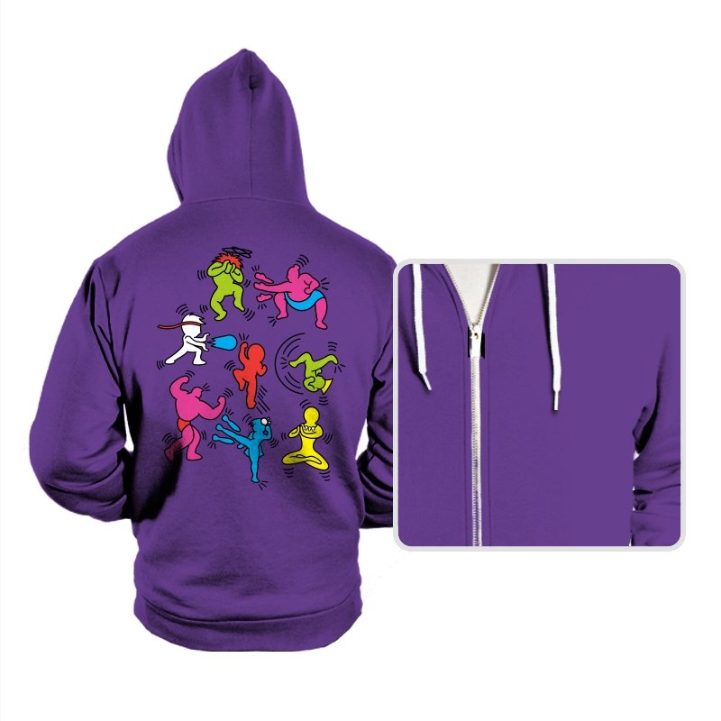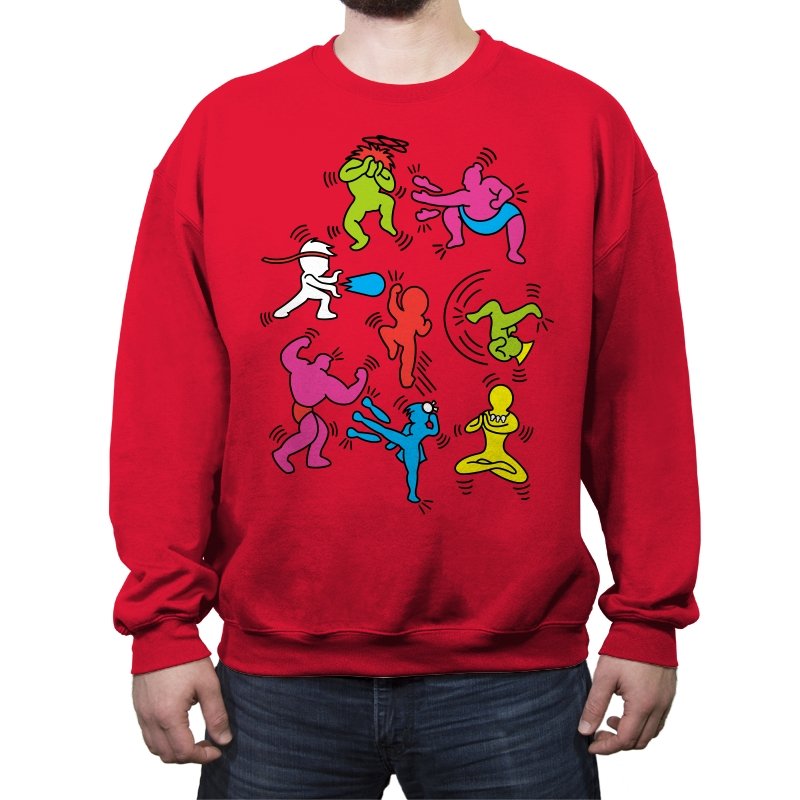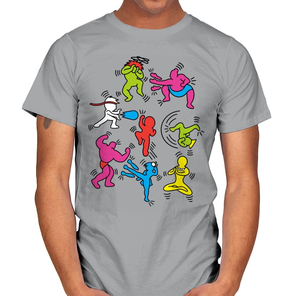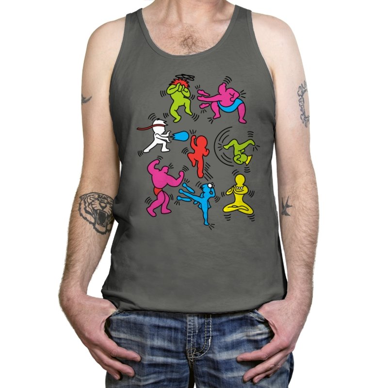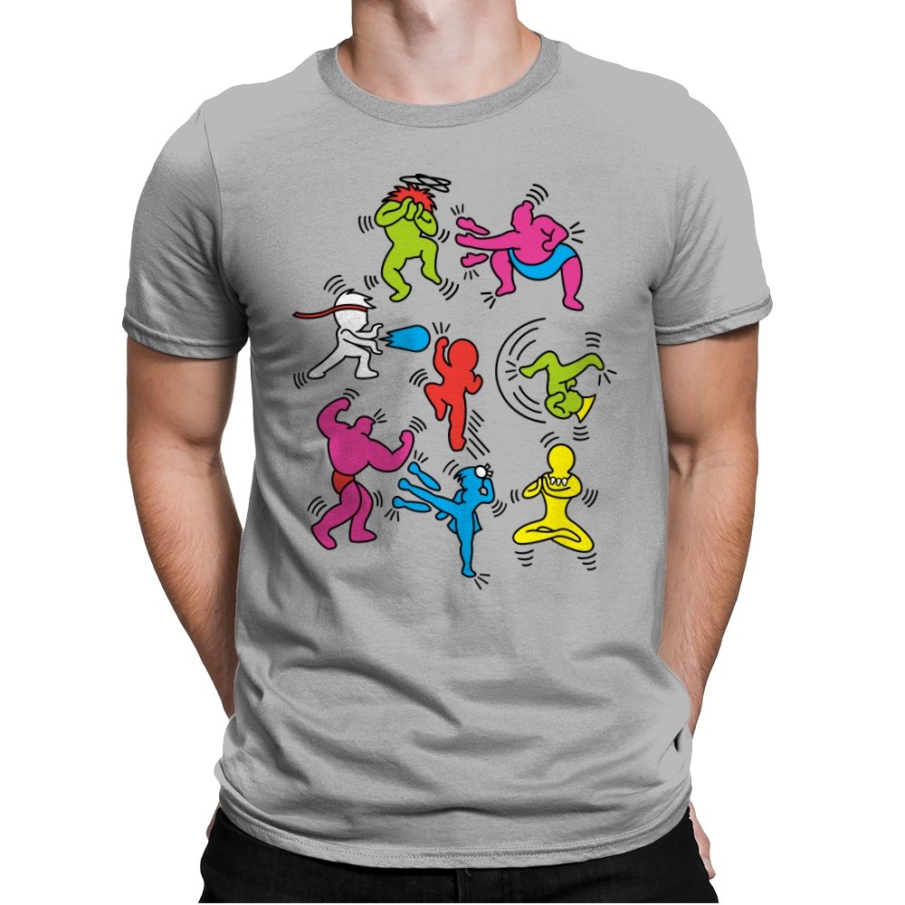 A vibrant mashup of quirky, colorful characters ready to battle it out in their own unique, exaggerated ways. Each fighter bursts with personality, referencing the iconic brawler games of old while infusing a fun, modern twist. The design showcases a playful energy that fans of retro gaming and pop culture will instantly recognize, with each character presented in a style that keeps the nostalgia alive without relying on over-the-top references.