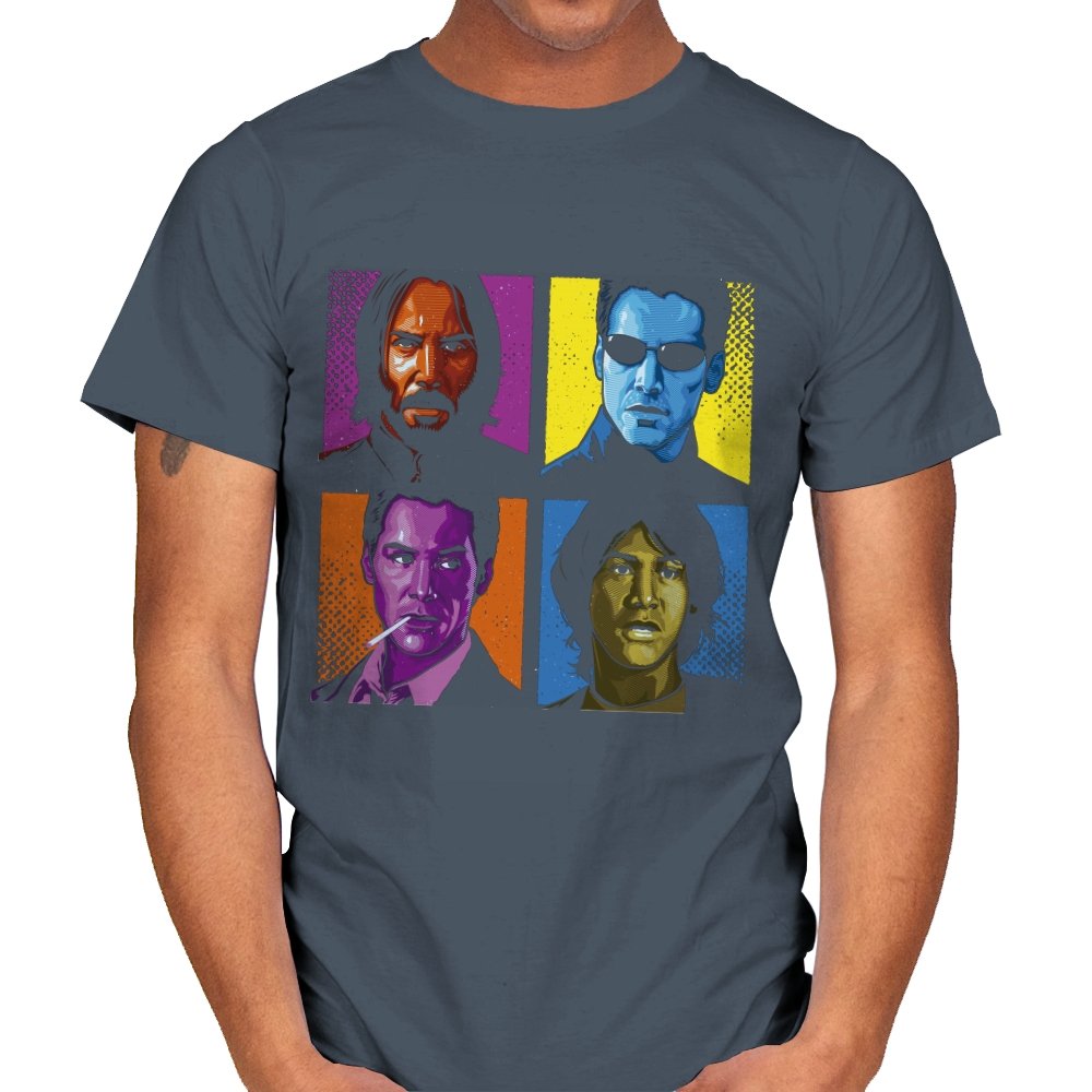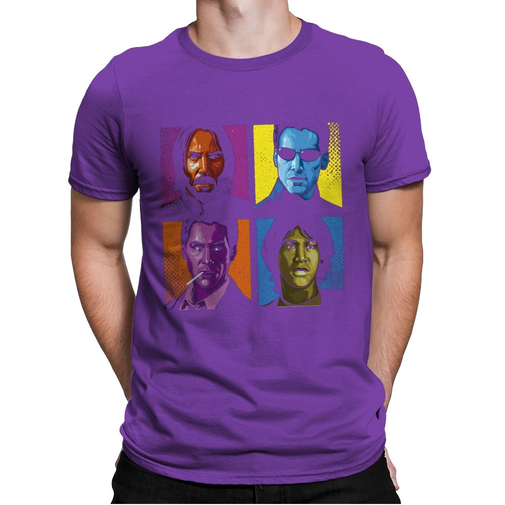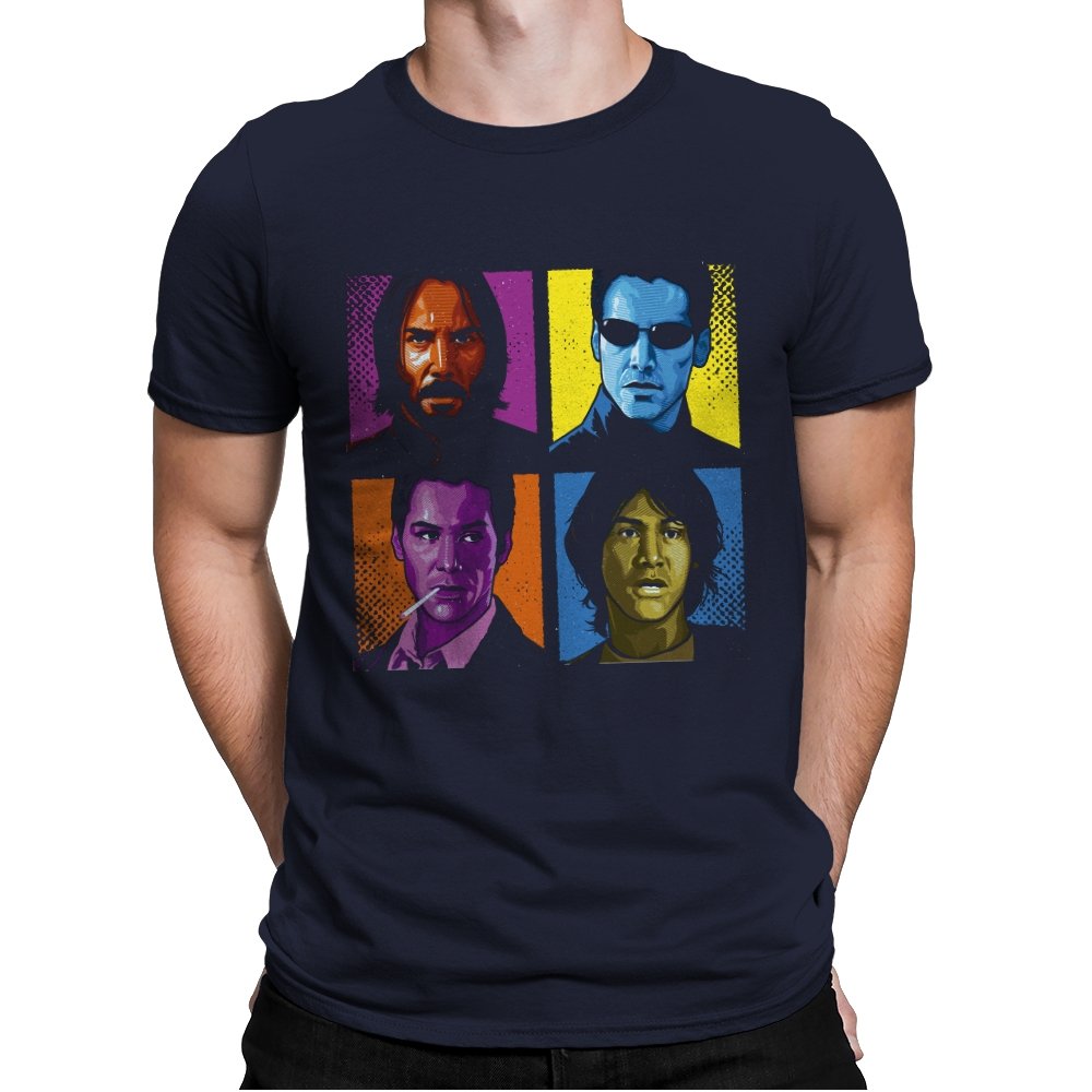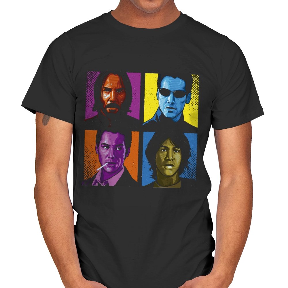 This design treats a familiar face like pop art mythology. Four distinct portraits sit in bold color blocks, each capturing a different era and attitude, from quiet intensity to detached cool. The halftone texture and saturated palette pull from classic pop art while keeping a modern edge. Fans who get it will recognize the timeline instantly without needing labels.