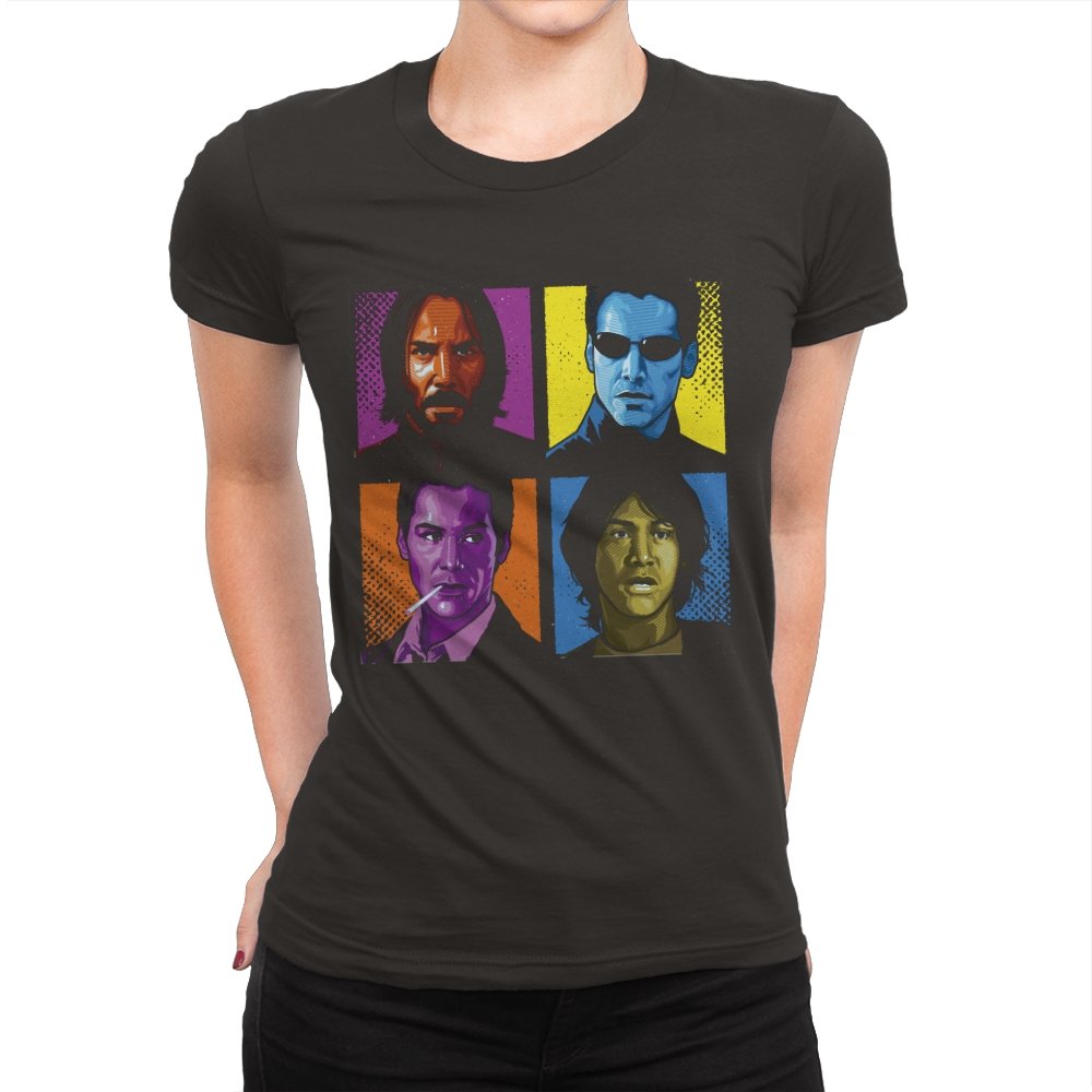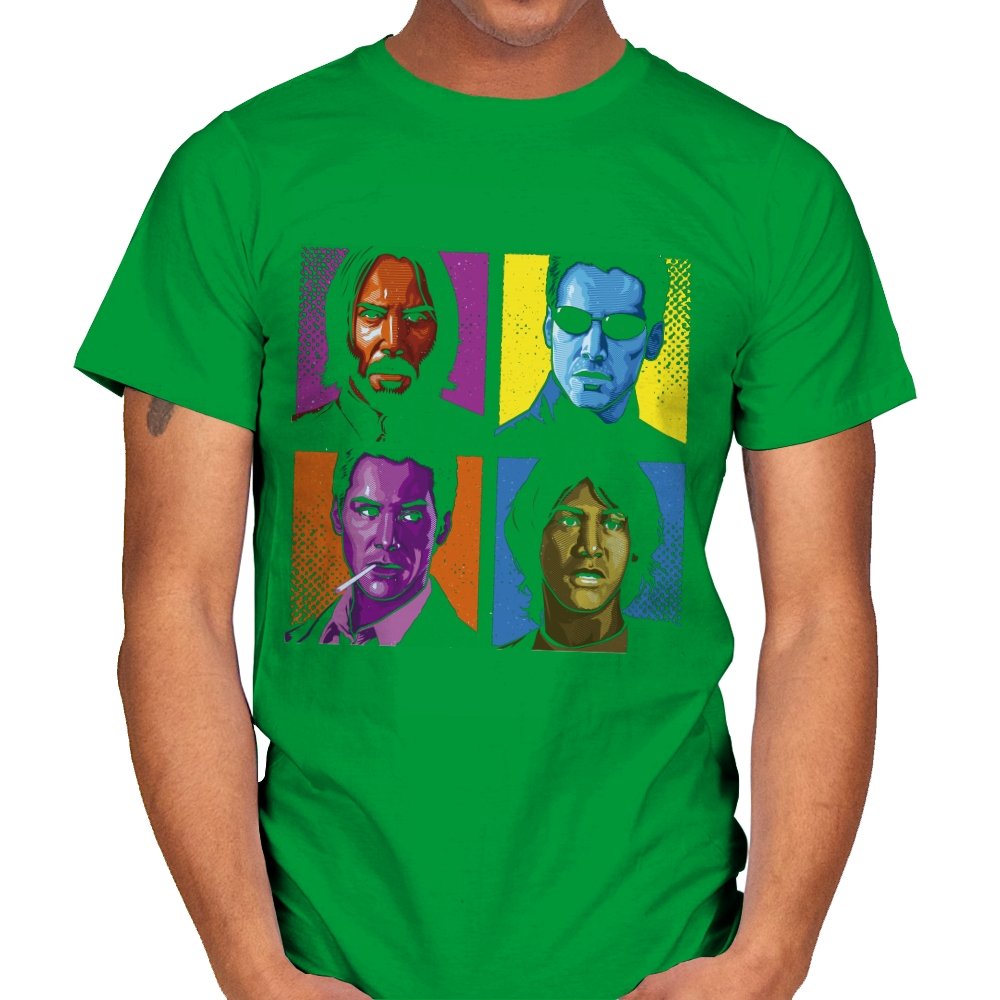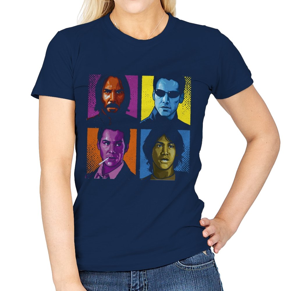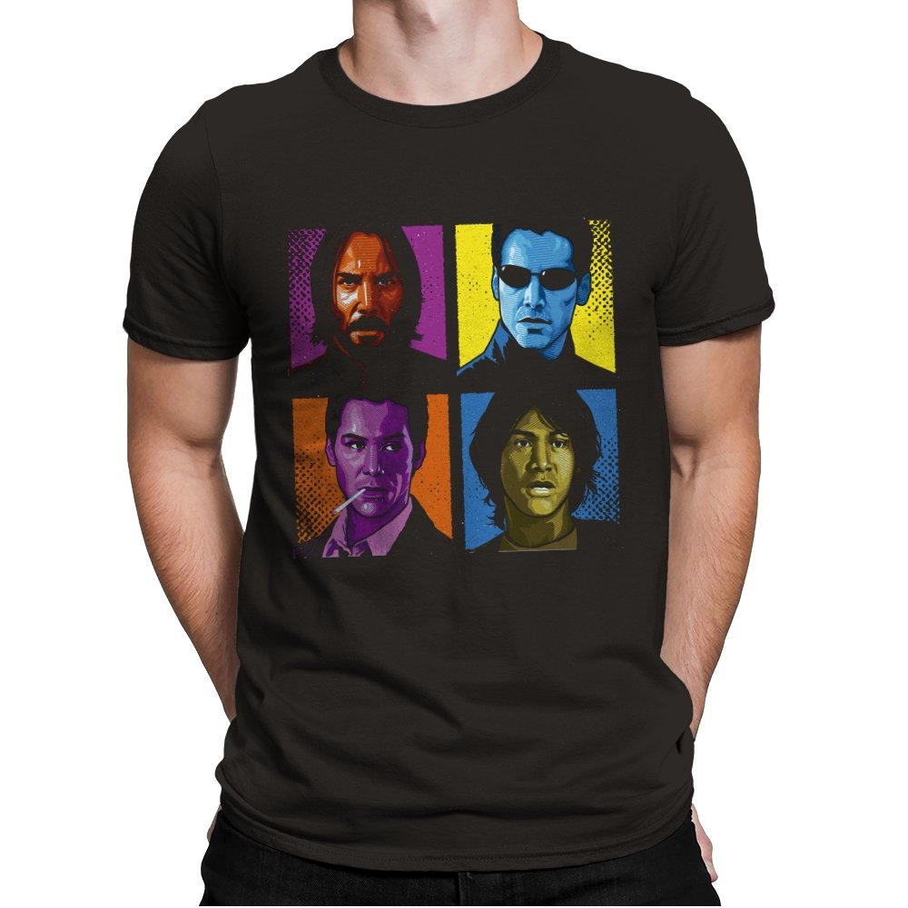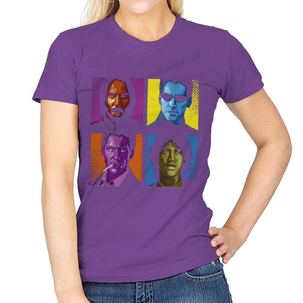 This design treats a familiar face like pop art mythology. Four distinct portraits sit in bold color blocks, each capturing a different era and attitude, from quiet intensity to detached cool. The halftone texture and saturated palette pull from classic pop art while keeping a modern edge. Fans who get it will recognize the timeline instantly without needing labels.