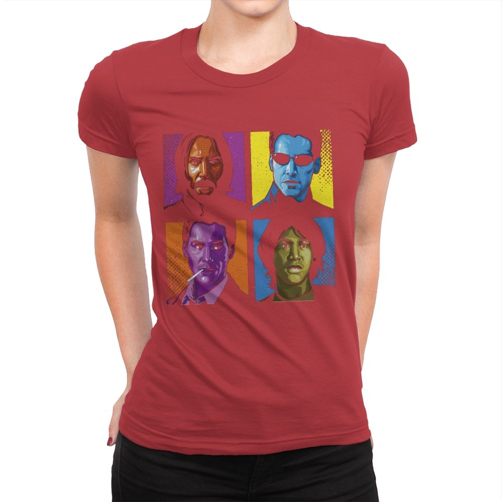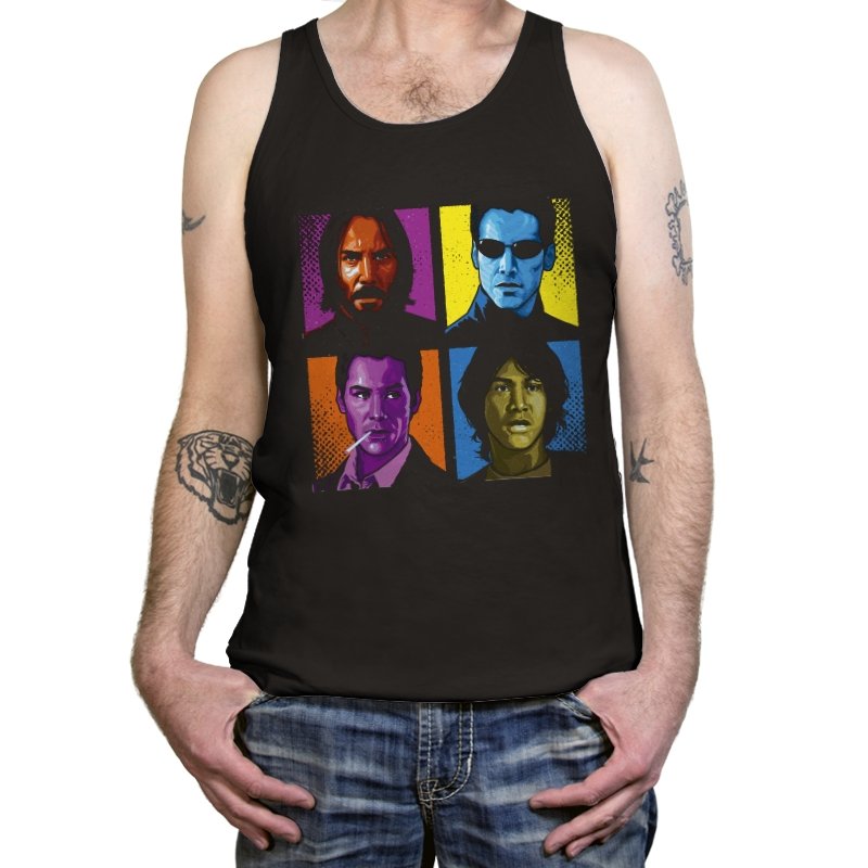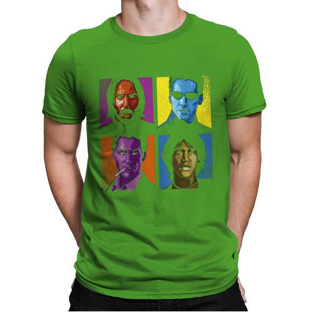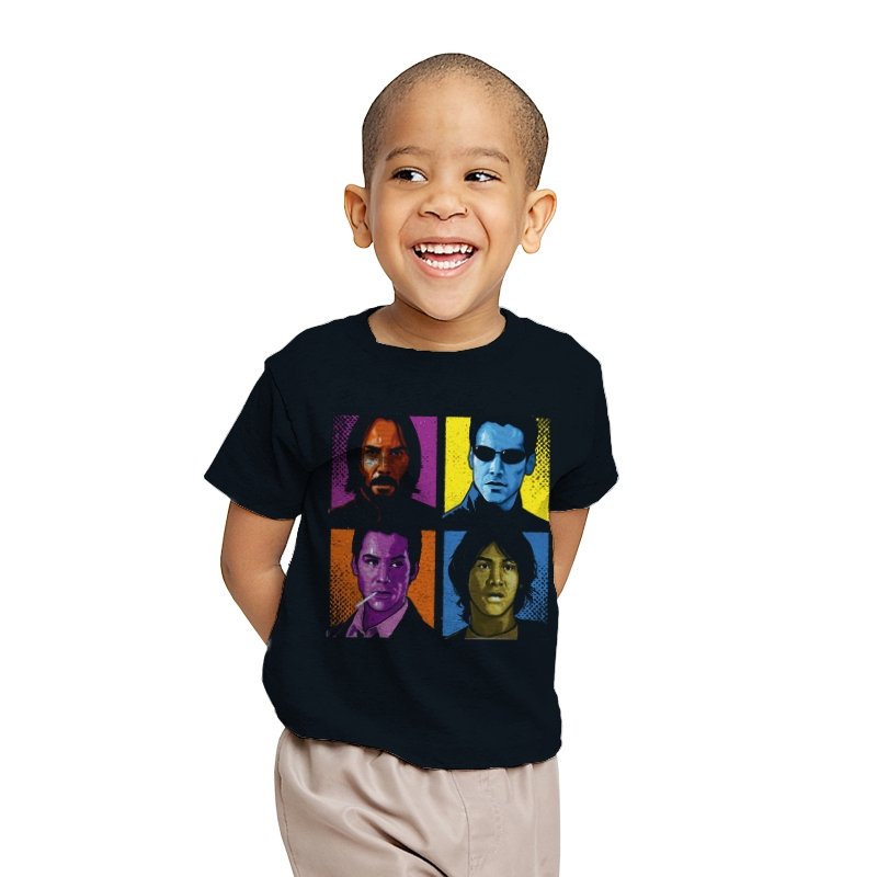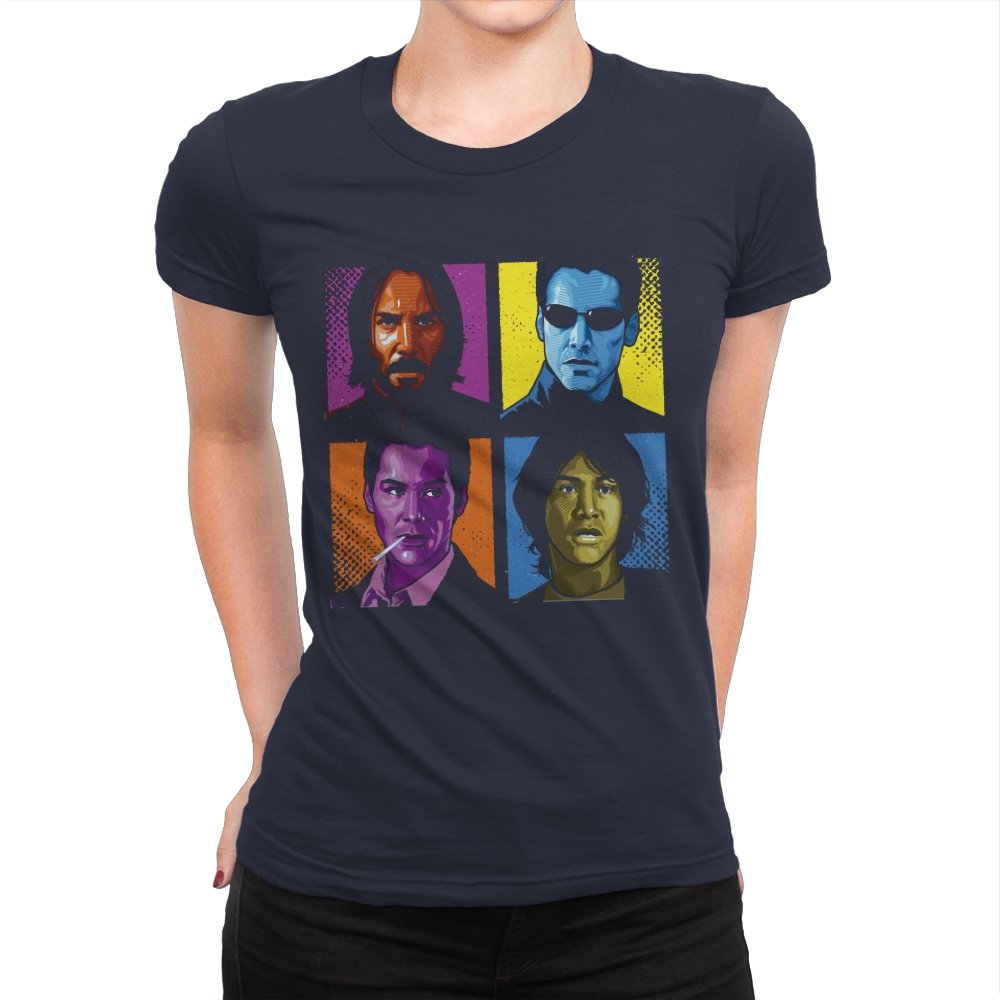 This design treats a familiar face like pop art mythology. Four distinct portraits sit in bold color blocks, each capturing a different era and attitude, from quiet intensity to detached cool. The halftone texture and saturated palette pull from classic pop art while keeping a modern edge. Fans who get it will recognize the timeline instantly without needing labels.