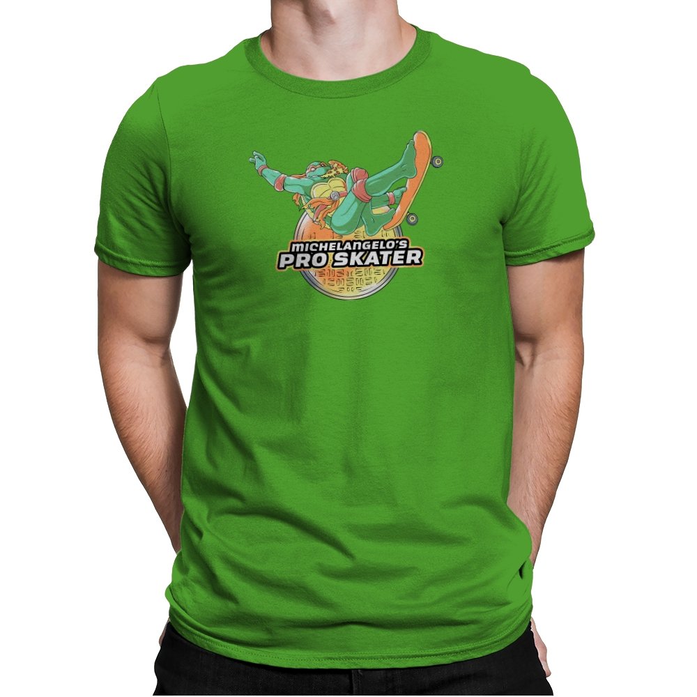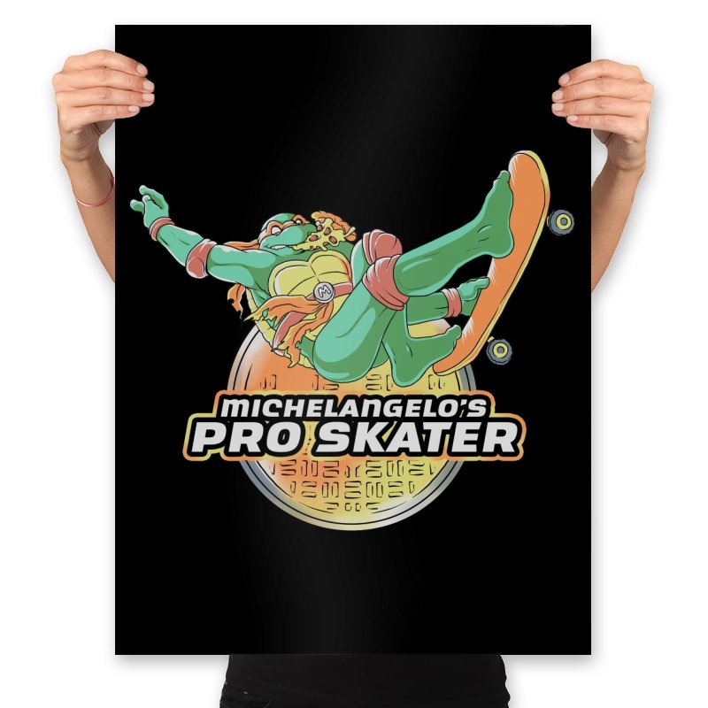 Mikey, the skateboarding turtle, brings together the best of classic gaming nostalgia and extreme sports. The bold pose of Mikey carving through the air on his skateboard is paired with retro-style graphics that evoke memories of the iconic video games from the past. Vibrant colors and action-packed energy capture Mikey’s carefree, adventurous spirit, making this design a perfect tribute for fans who love both skateboarding and the “Teenage Mutant Ninja Turtles” vibe.