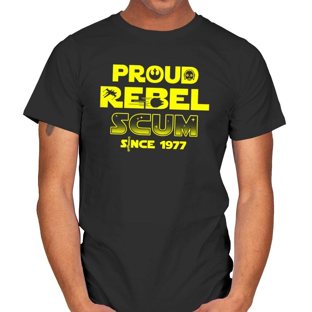Proud Rebel Scum celebrates the rebellious spirit of those who stand against oppression with a bold, fun design. Featuring iconic elements of the rebel alliance, this design includes references to space battles, with the phrase “PROUD REBEL SCUM” front and center in bright yellow lettering. The addition of “SINCE 1977” speaks to the long-lasting legacy of the rebellion and its cultural impact since the release of the original movie. The design combines humor and pride, capturing the essence of the rebellion’s fight for freedom in a galaxy far, far away.