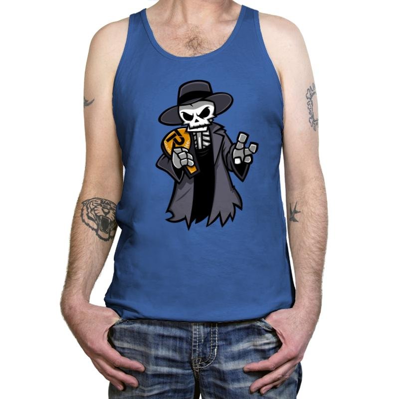The “Reaper 6” design features a bold, cartoonish reaper character draped in a flowing cloak, holding a scythe marked with the distinctive hammer and sickle. The design combines elements of classic death imagery with a nod to historical symbolism, creating an eye-catching, unique aesthetic. With its simple yet striking color palette and graphic style, this design presents a playful yet edgy take on the iconic figure of the Grim Reaper. It’s a piece that blends dark humor with a bit of political flair, perfect for fans who appreciate both the macabre and the thought-provoking.