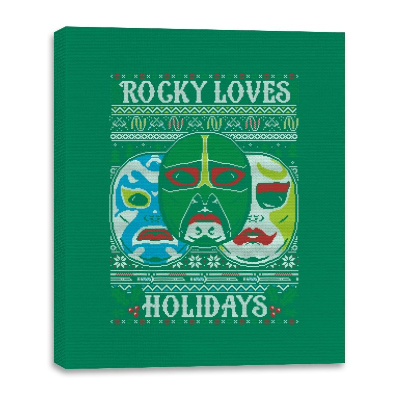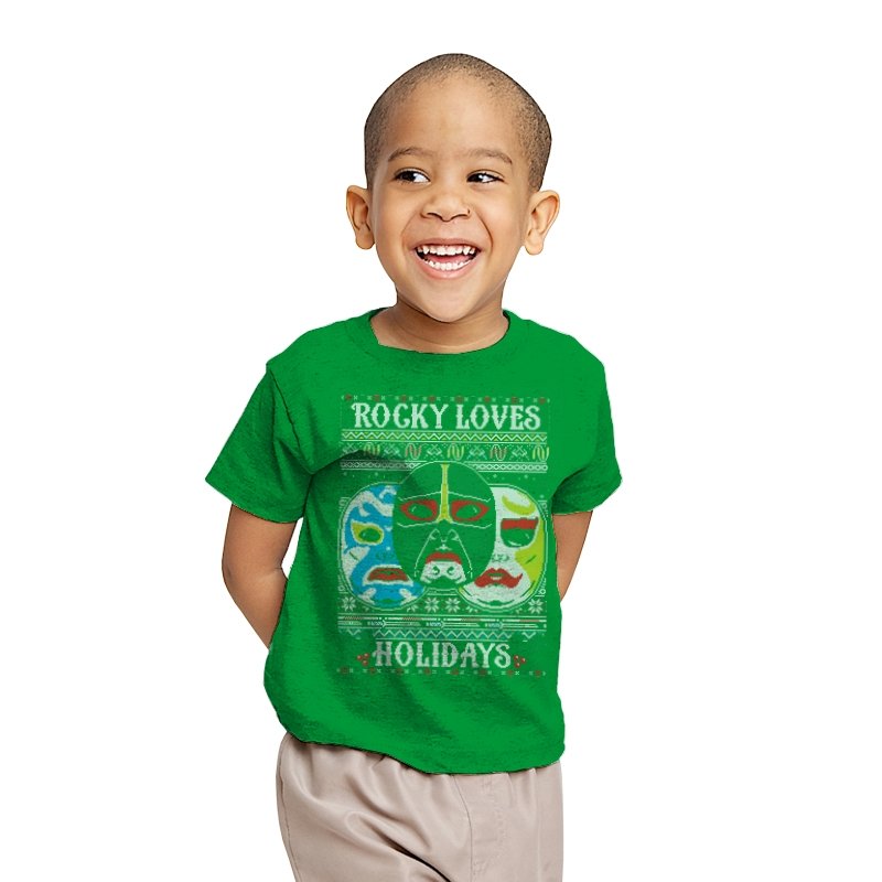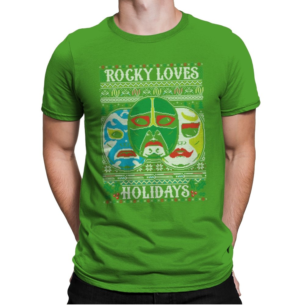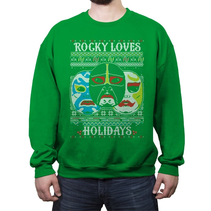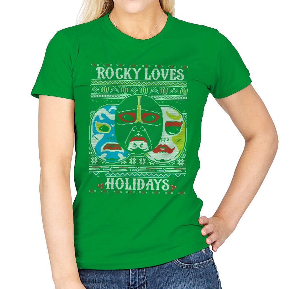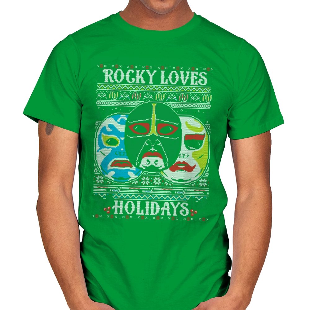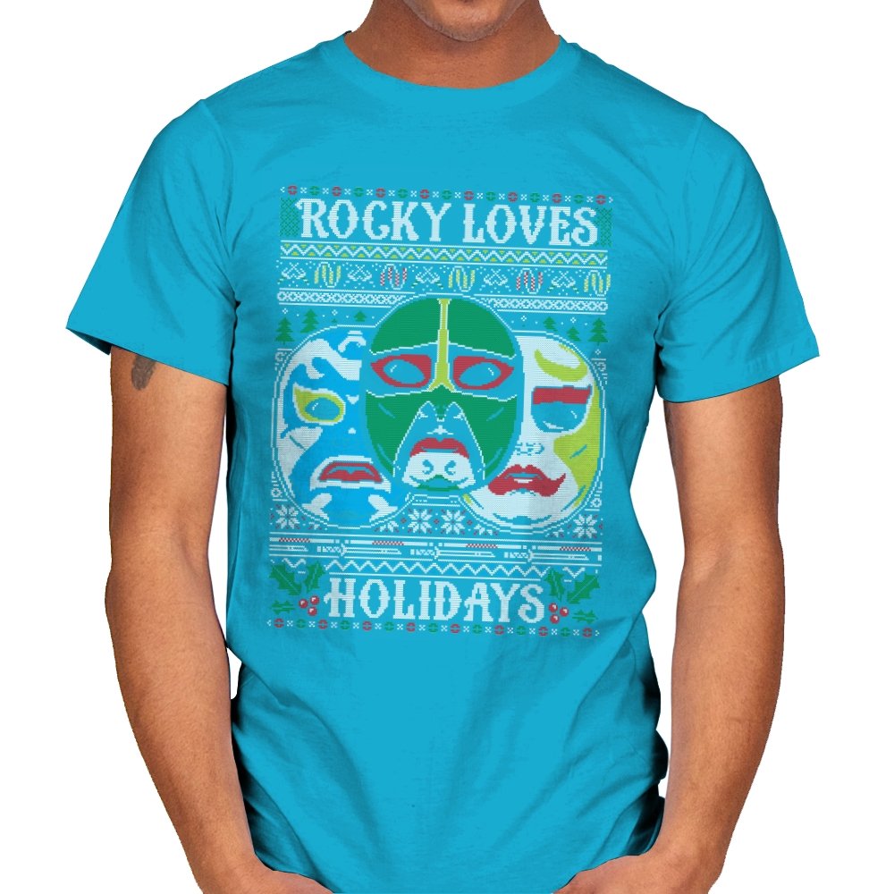 This design wraps classic lucha iconography in full ugly holiday sweater form. Three masked faces sit front and center, framed by dense knit patterns, snowflake motifs, and bold green that leans hard into festive excess. The central mask anchors the composition, flanked by contrasting expressions that feel pulled straight from vintage wrestling posters and late-night TV memories. If you grew up flipping channels or collecting figures, the reference hits instantly.