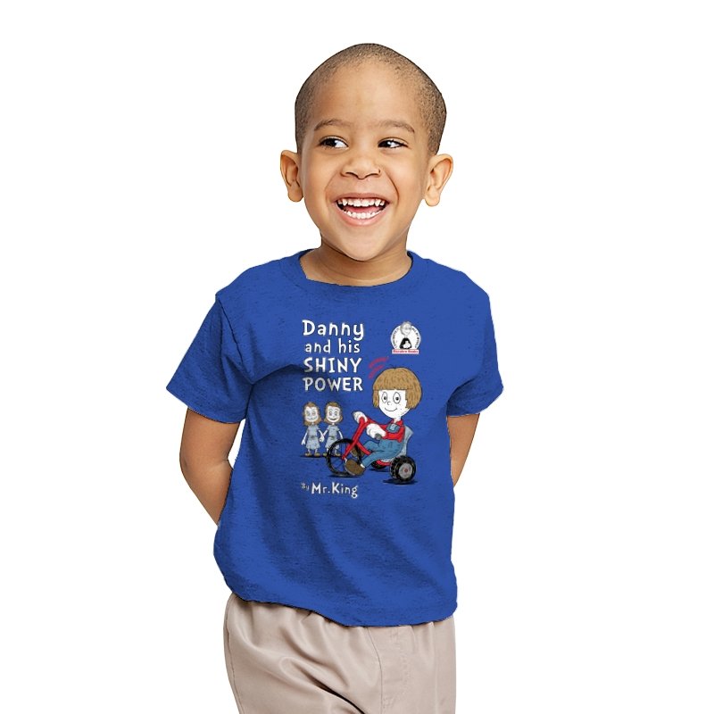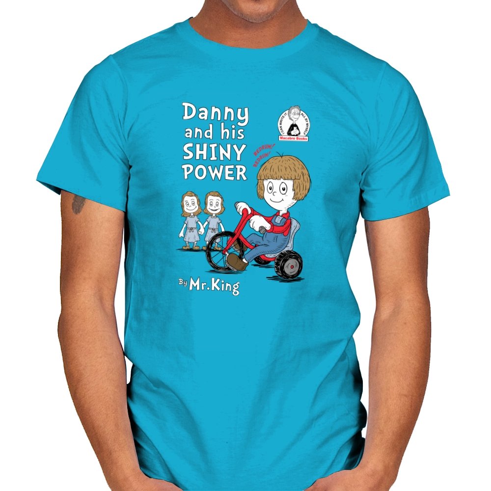 This design plays like a children’s book cover that took a very wrong turn, featuring a wide eyed kid pedaling a tricycle with unsettling cheer. The soft colors, hand drawn style, and friendly typography clash intentionally with the darker meaning fans instantly recognize. Background figures and playful layout sell the innocence while quietly hinting at something much colder underneath. It feels like a shelf item you would find in a haunted library that knows exactly what it is doing.