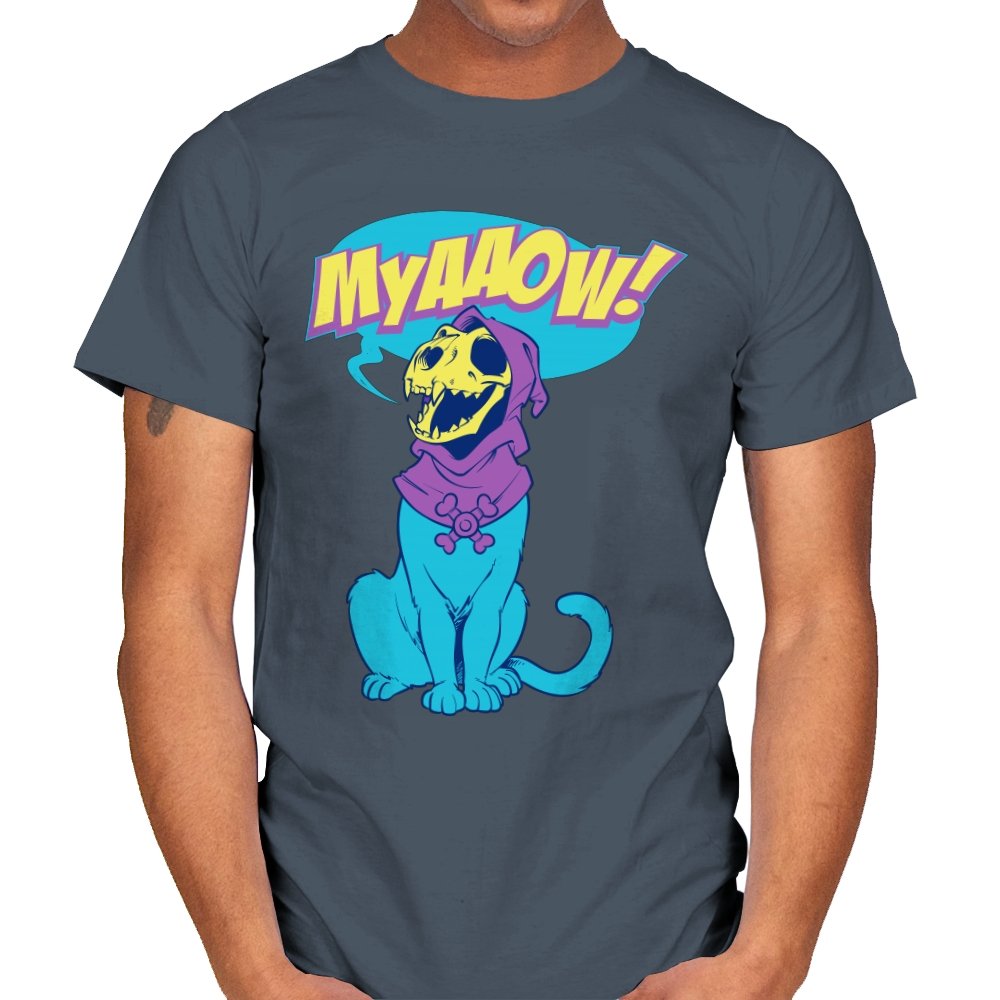 This design turns a familiar skeletal grin into something unexpectedly adorable. A bright blue cat sits calmly while wearing a skull-faced hood, mouth open in a dramatic shout that reads more playful than threatening. The pastel colors and clean outlines give it a cartoon softness, while the skull mask keeps the reference sharp. If you recognize the laugh behind the look, you already know why the cat makes it better.