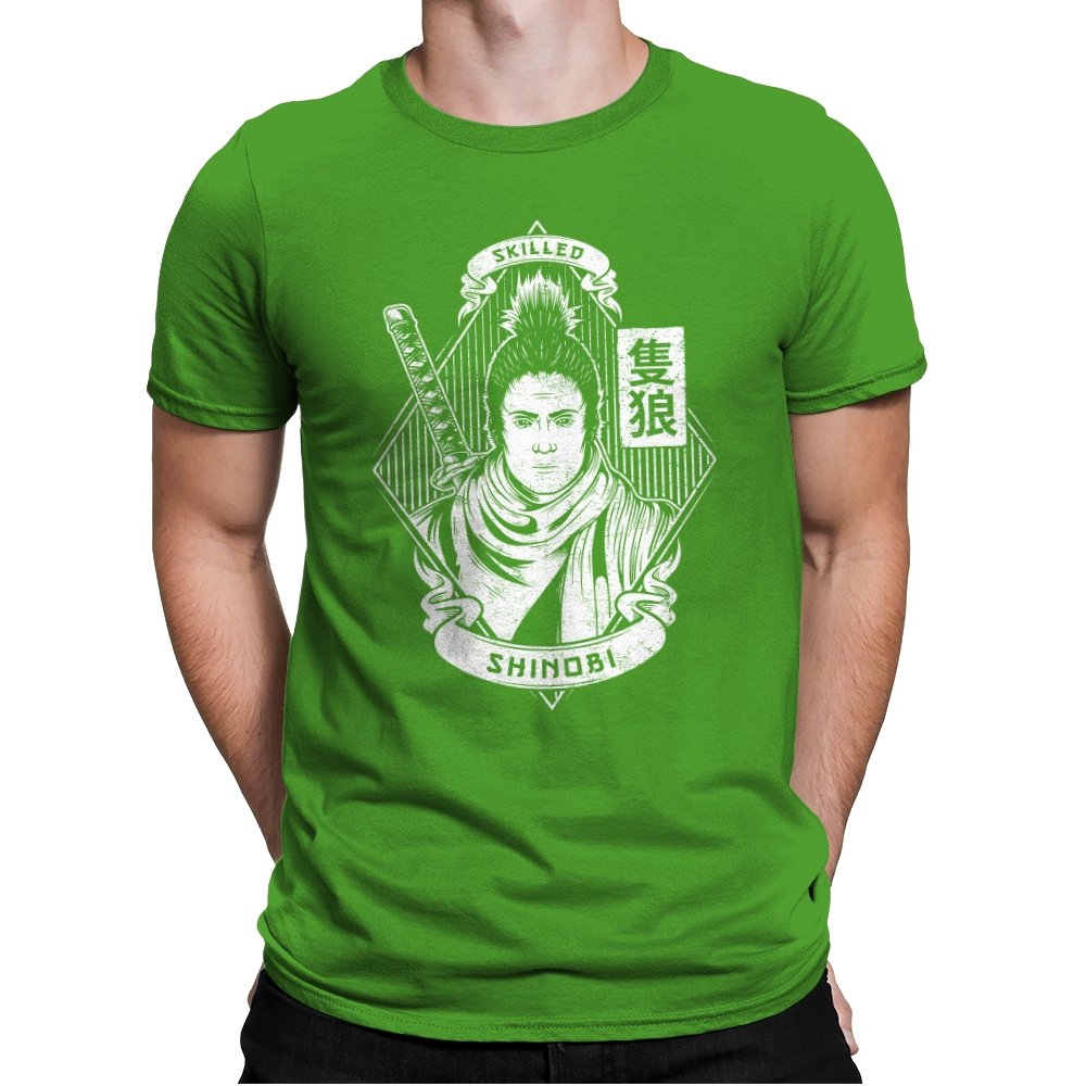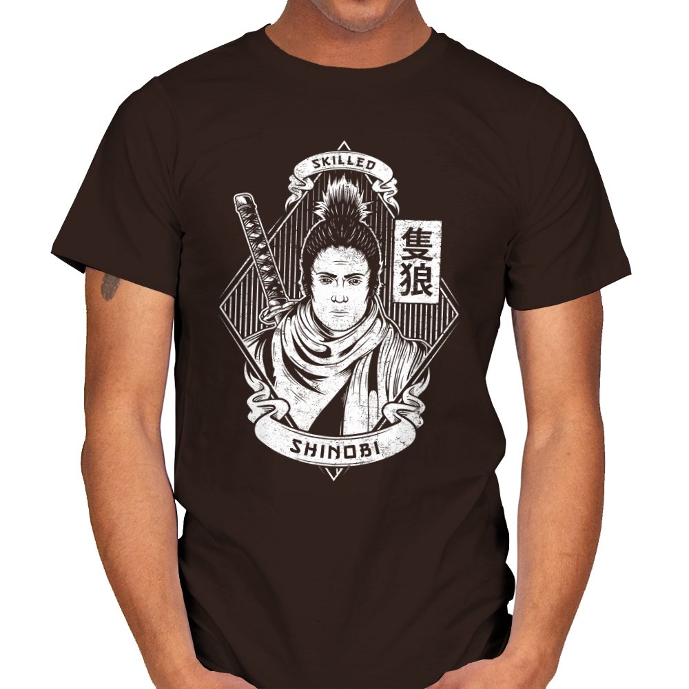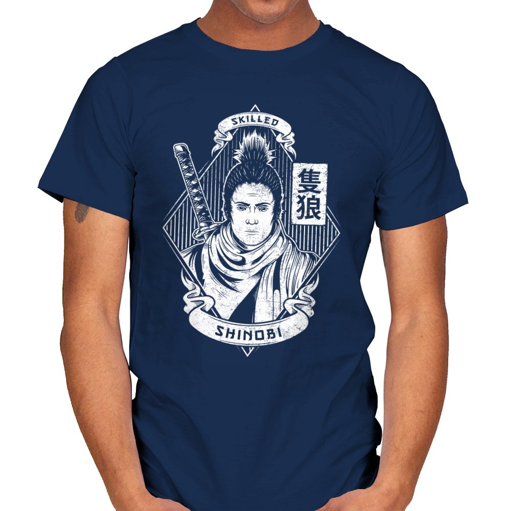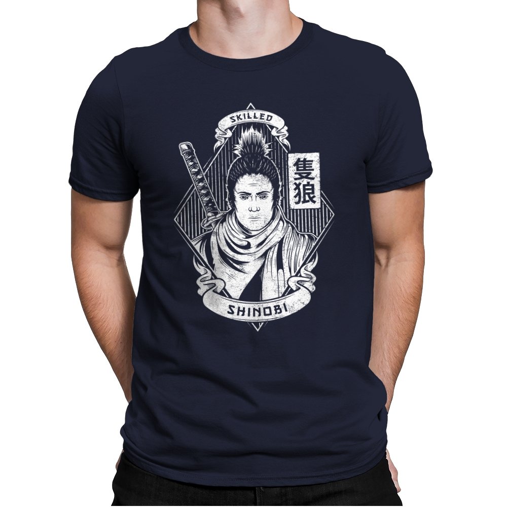 This design feels like a wanted poster pulled from a forgotten era of steel and discipline. A lone shinobi stands front facing, expression calm and unreadable, framed by banners, calligraphy, and the quiet weight of experience. The sword rests close, not raised, suggesting confidence earned through repetition rather than spectacle. The monochrome linework gives it a carved, almost ceremonial presence.