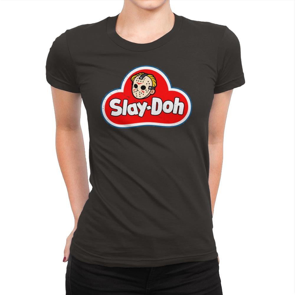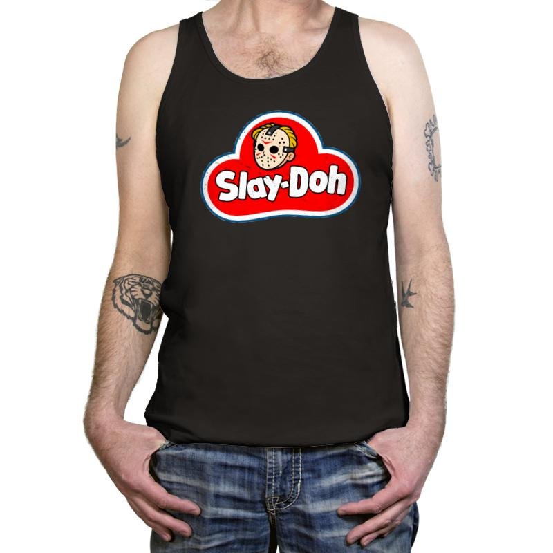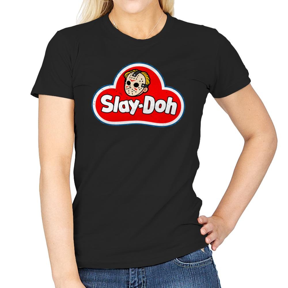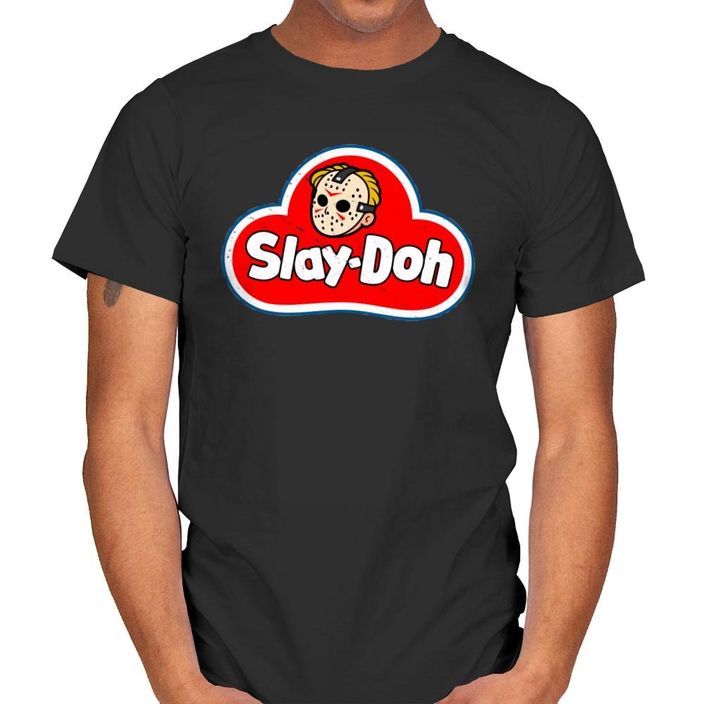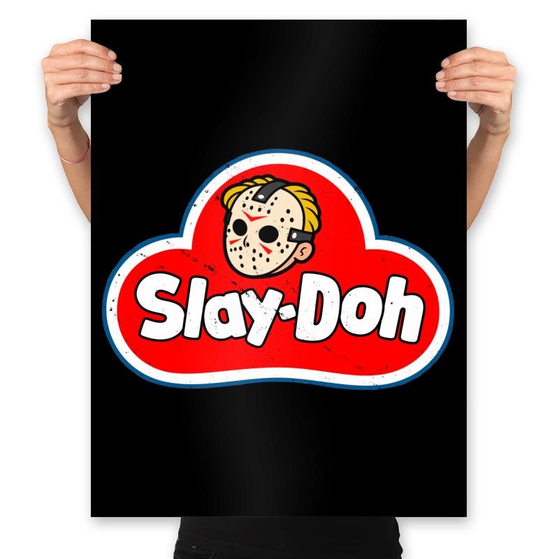 Slay-doh takes a childhood staple and twists it just enough to feel wrong in the right way. The familiar red cloud logo stays bold and friendly, but the smiling face is replaced with a masked slasher icon rendered in clean, cartoon lines. Bright colors and rounded shapes clash with the implied menace, turning nostalgia into something knowingly unhinged. It works because it looks harmless at first glance and unsettling the longer you stare.