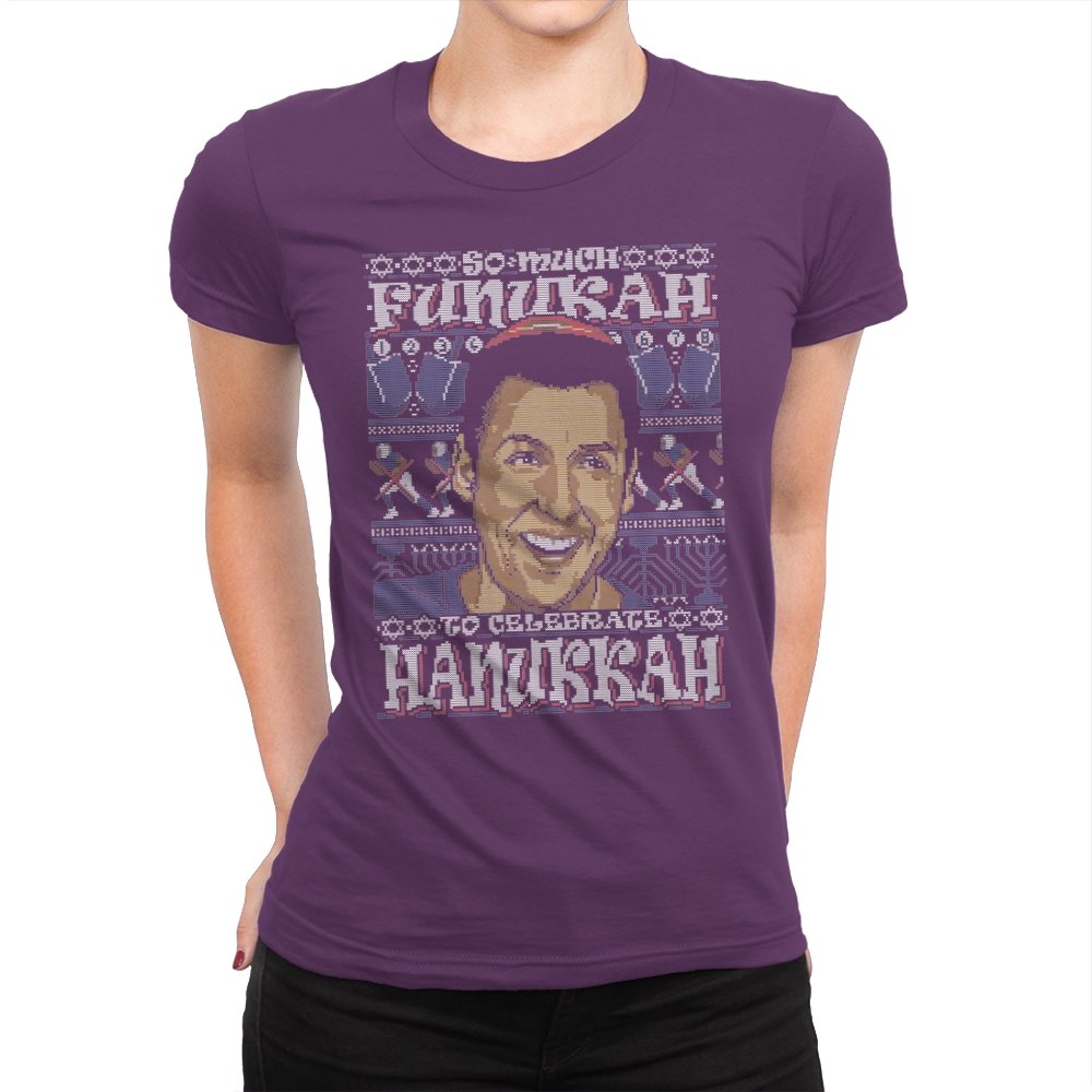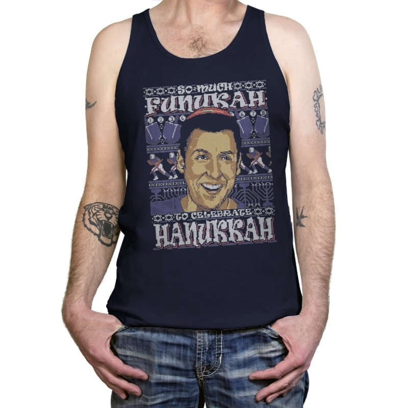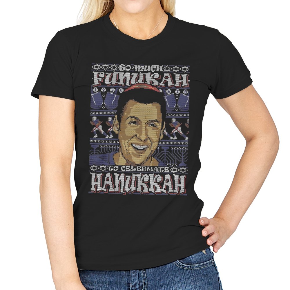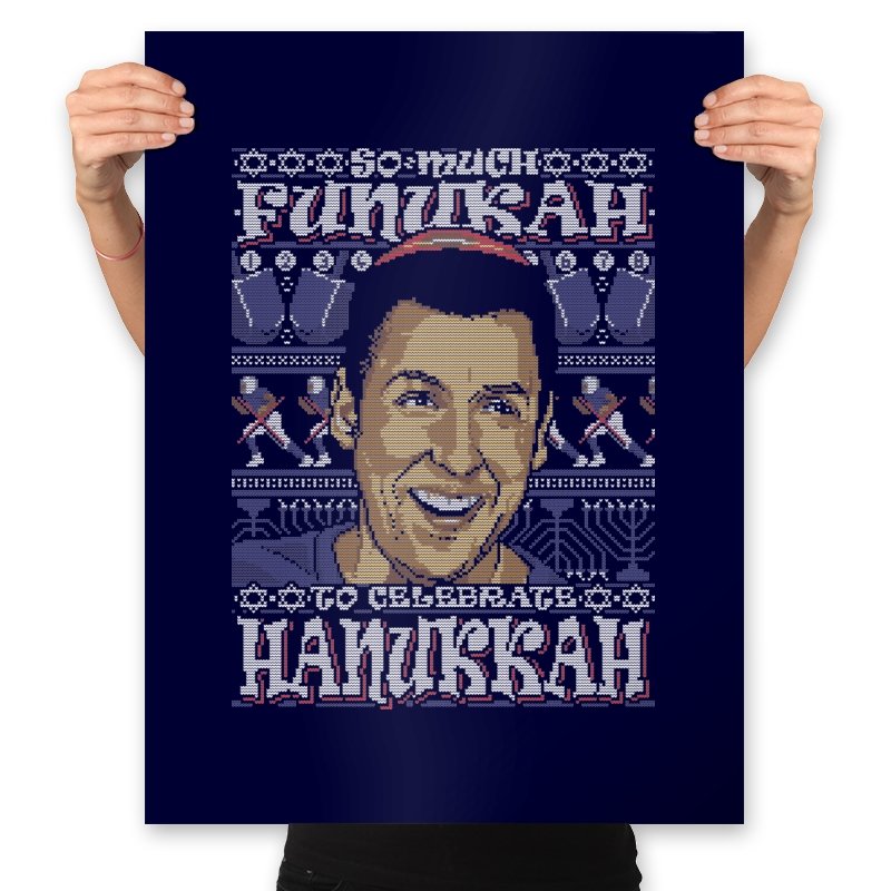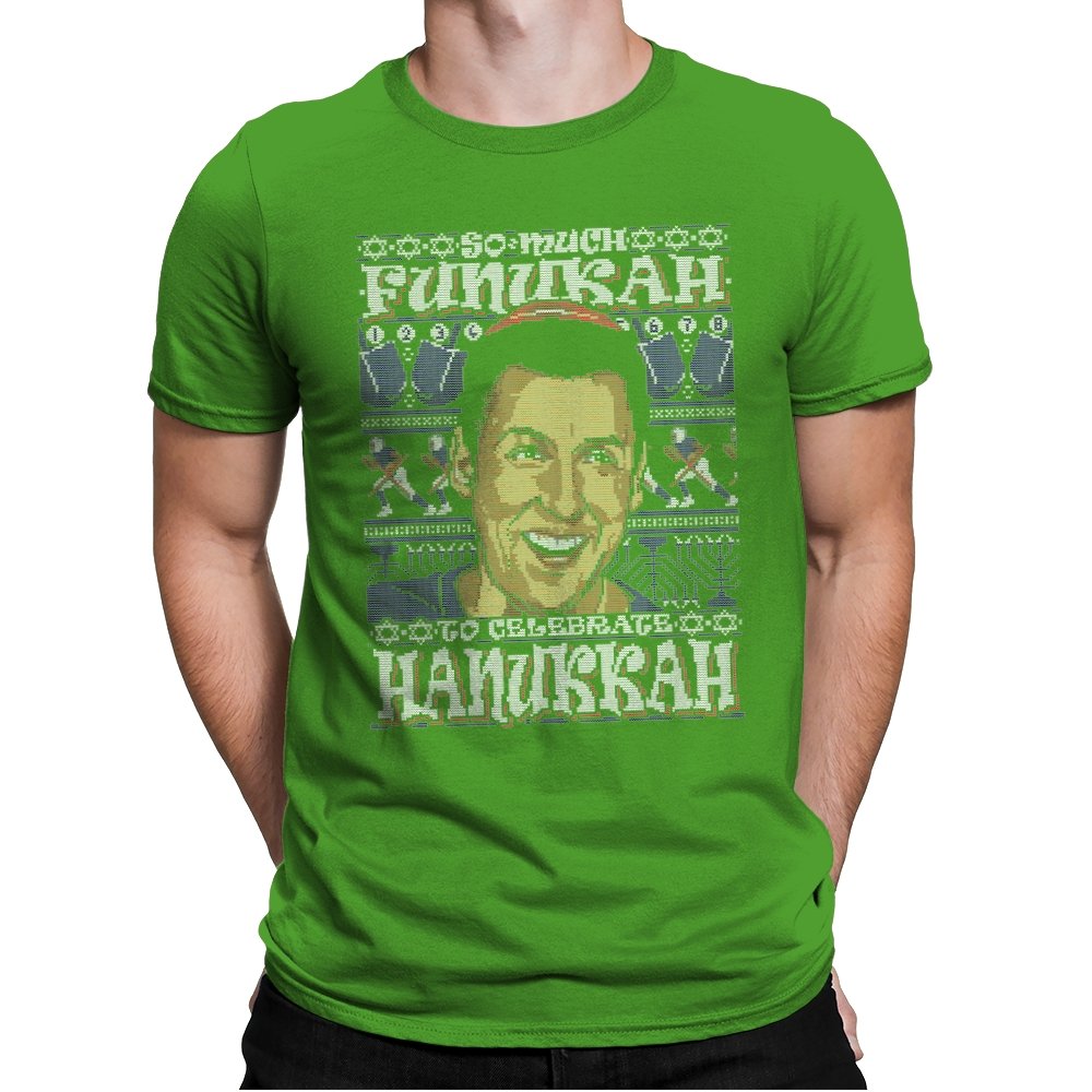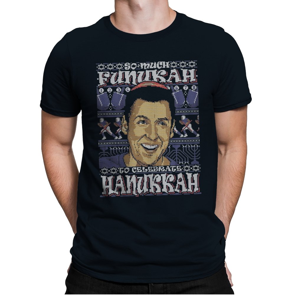 This design leans hard into the ugly holiday sweater tradition, rendered in pixel-knit style with a very recognizable grin at the center. The menorahs, dreidels, and crossed sticks frame the portrait like a looping chorus you already know by heart. It reads like a frozen TV moment from the era when holiday songs felt slightly unhinged and absolutely sincere. If you get it, you get it instantly.