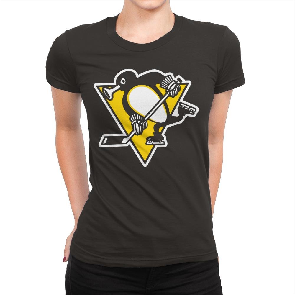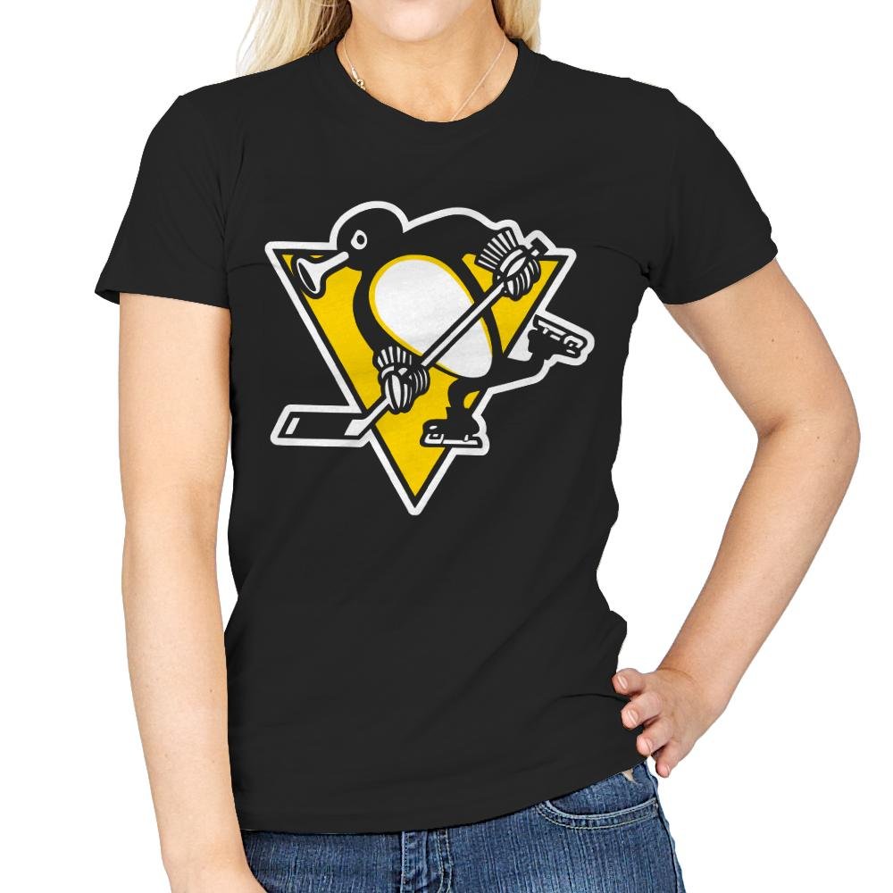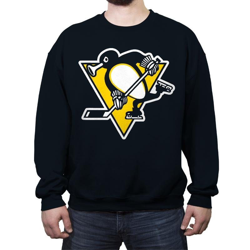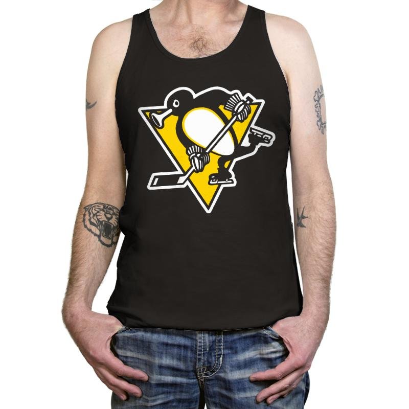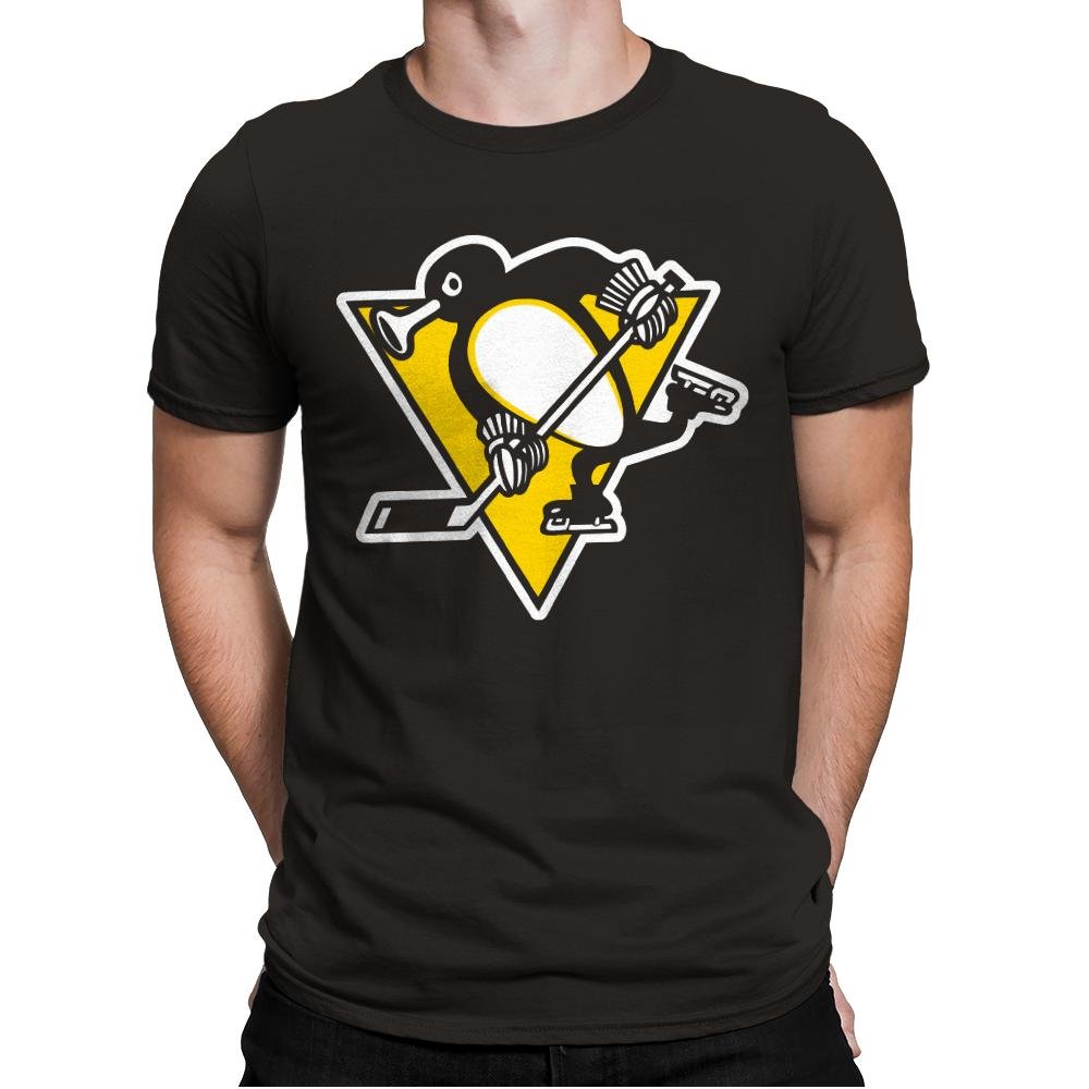 This design reworks a classic hockey crest through a colder, stranger lens. A wide-eyed penguin grips a stick mid-stride, framed by sharp geometry and bold contrast that feels instantly familiar without spelling anything out. The simplified shapes and heavy outlines give it a vintage sports logo energy with a playful twist. It reads like an alternate-universe team mark that never existed but somehow always should have.