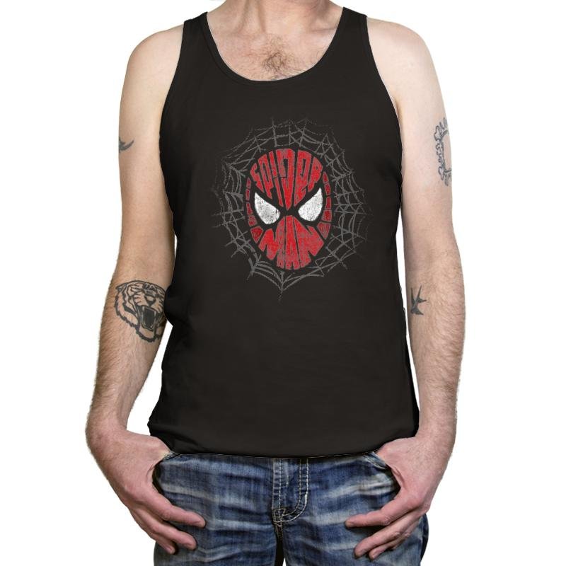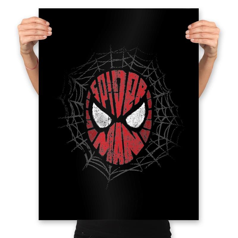 This design strips a familiar masked face down to its most iconic elements. The cracked red texture, sharp white eyes, and surrounding web feel raw and worn, like a symbol that has been through too many fights to care about polish. The web framing pulls everything inward, making the mask feel trapped and focused at the same time. It reads like street art or a weathered stencil sprayed onto a dark wall.