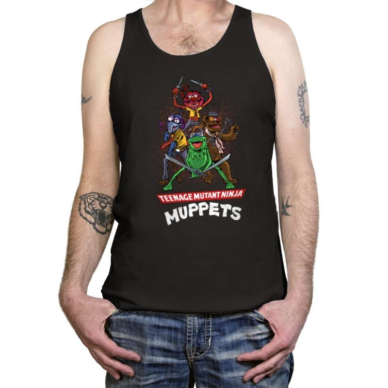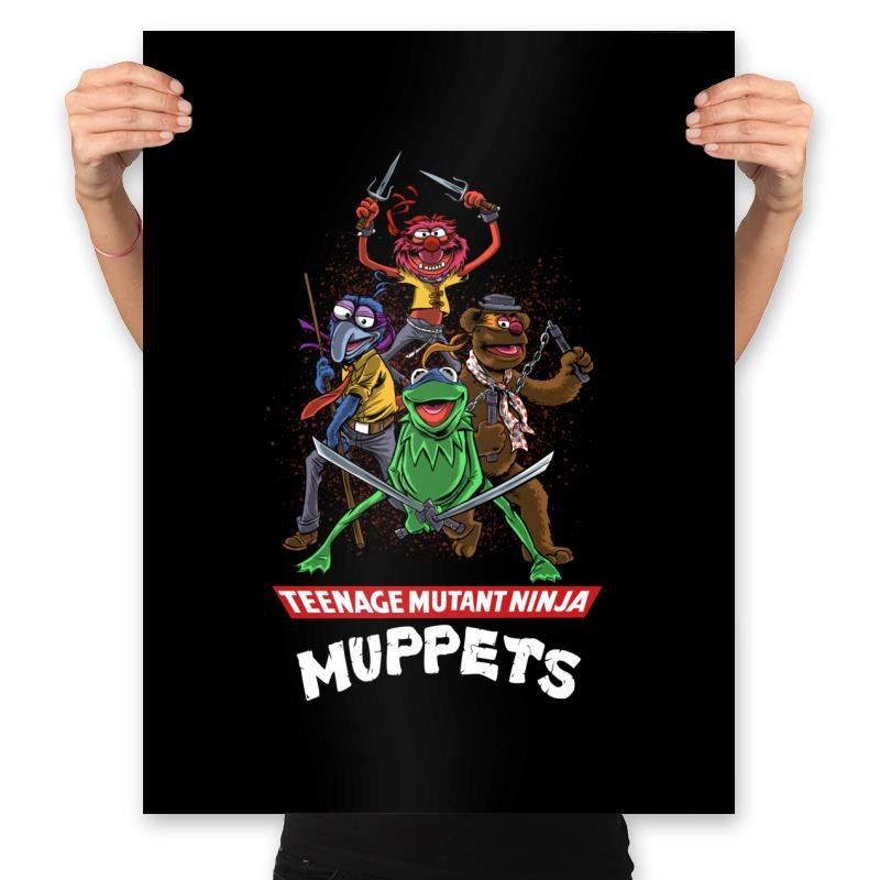 Four familiar felt performers reappear as gritty sewer dwelling heroes armed with blades, sticks, and wild energy. The illustration swaps shells for fur and foam while keeping the color coded bandanas and combat posing intact. It feels like a VHS crossover that nobody asked for yet everyone somehow needed, and fans of both universes will catch the joke before they finish reading the title. The grime, denim, and attitude push the usually wholesome cast into full action movie parody mode.