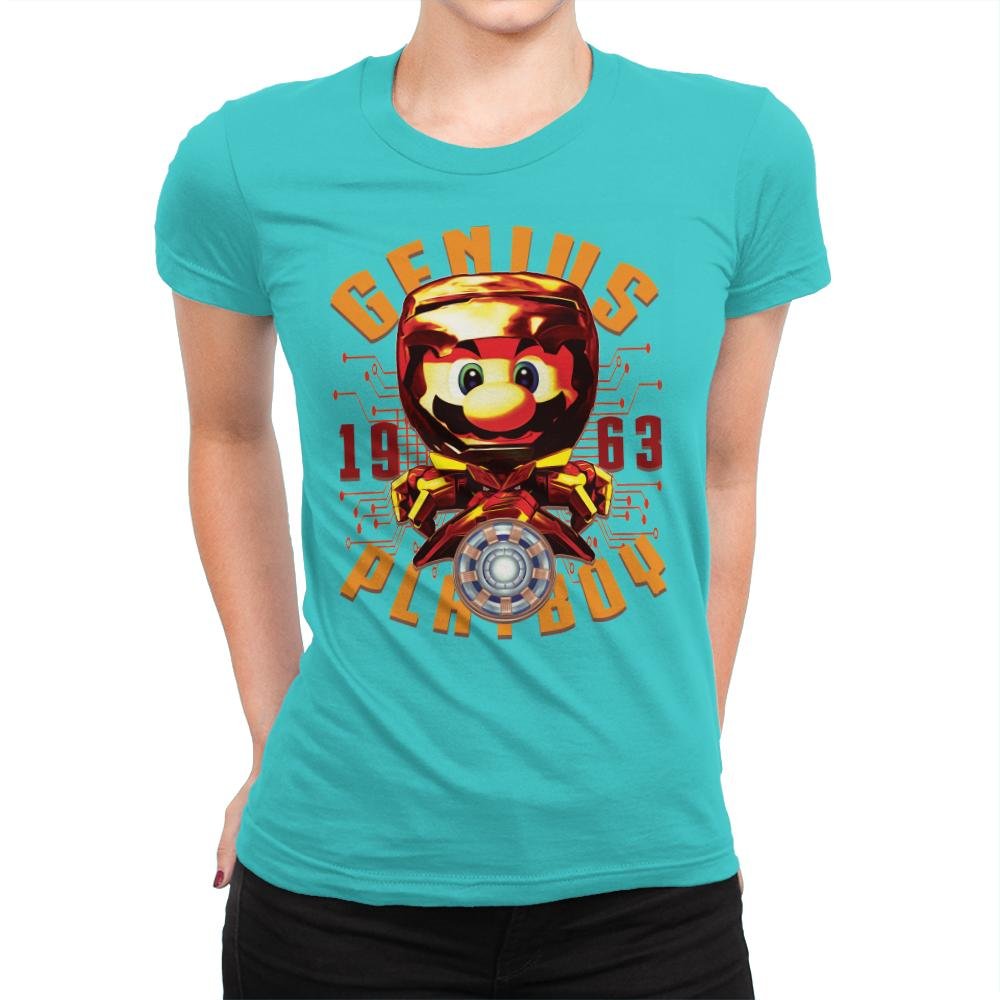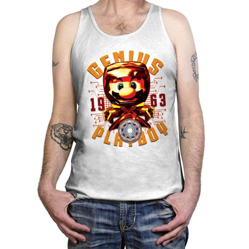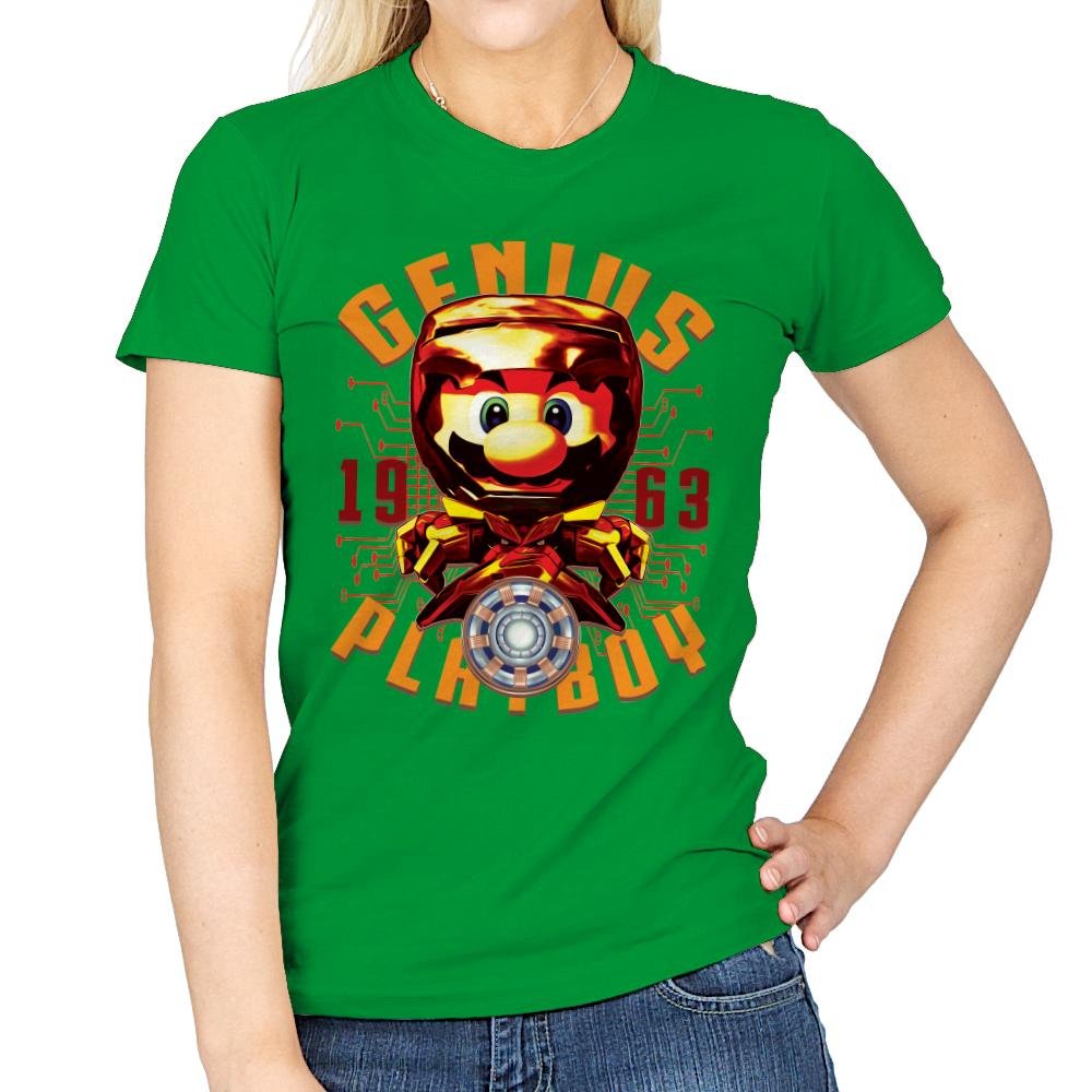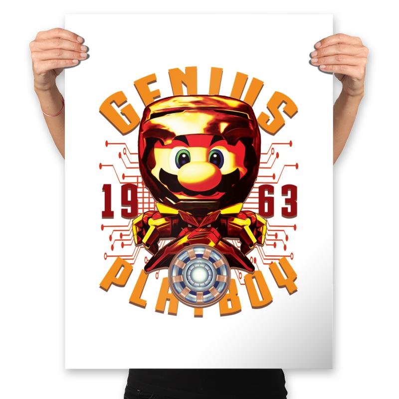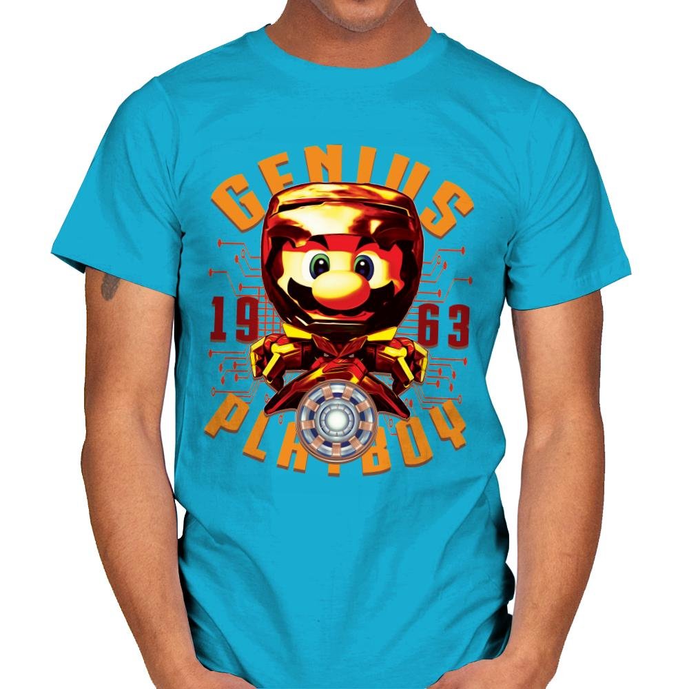 “The Armored Plumber” presents a bold, creative twist on a beloved video game icon, combining elements of superhero and retro gaming aesthetics. This design features a highly stylized, armored version of the famous plumber, with futuristic technology and a sleek, dynamic look. The inclusion of the “GENIUS” and “PLAYBOY” text, along with the year “1963,” adds an extra layer of fun and mystery, nodding to both pop culture and comic-book influences.