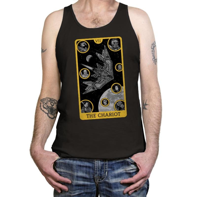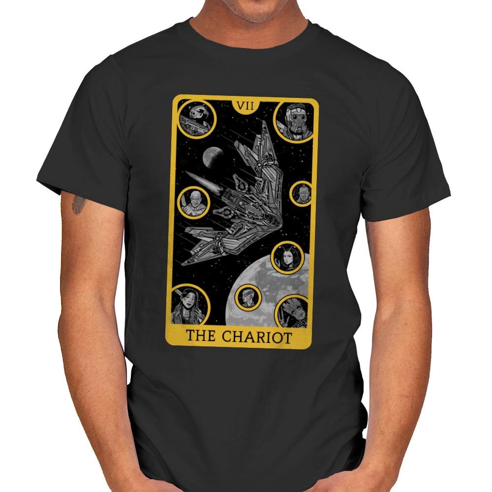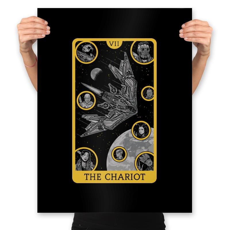The Chariot reimagines a tarot major arcana through the lens of a shield wielding super soldier in full command of motion and momentum. The artwork frames him in a classic card border, complete with Roman numerals and celestial detailing that hint at destiny and discipline. Instead of horses, the propulsion comes from raw force and iconic gear that fans immediately recognize without the design ever spelling it out. The color palette mixes deep reds, bold blacks, and metallic accents that make the composition feel mythic.