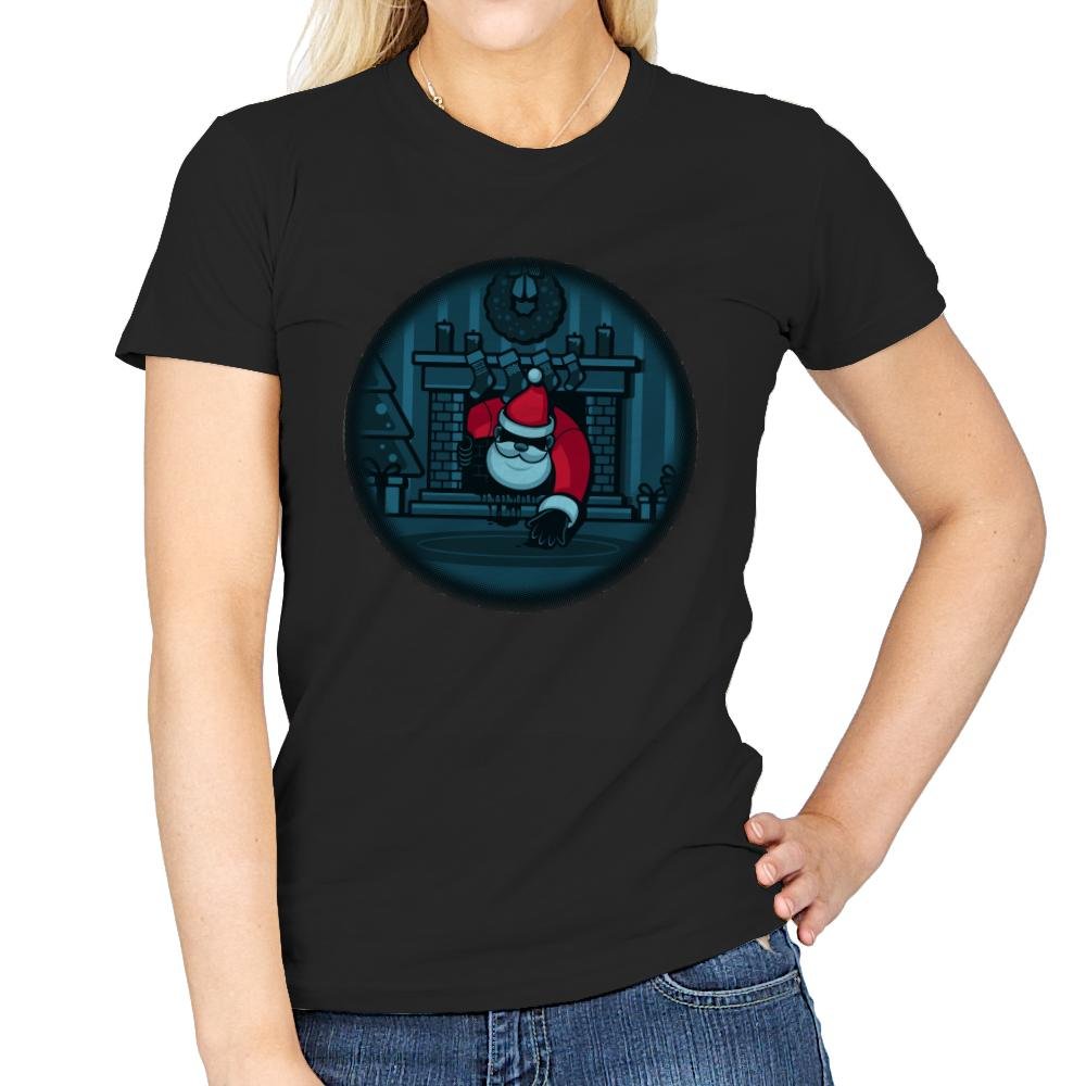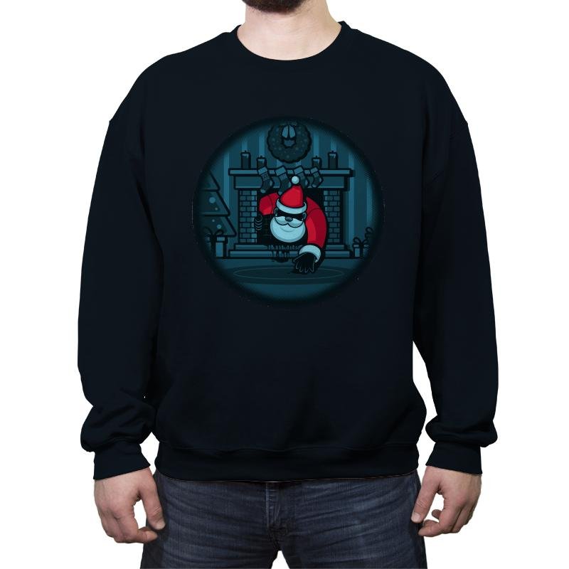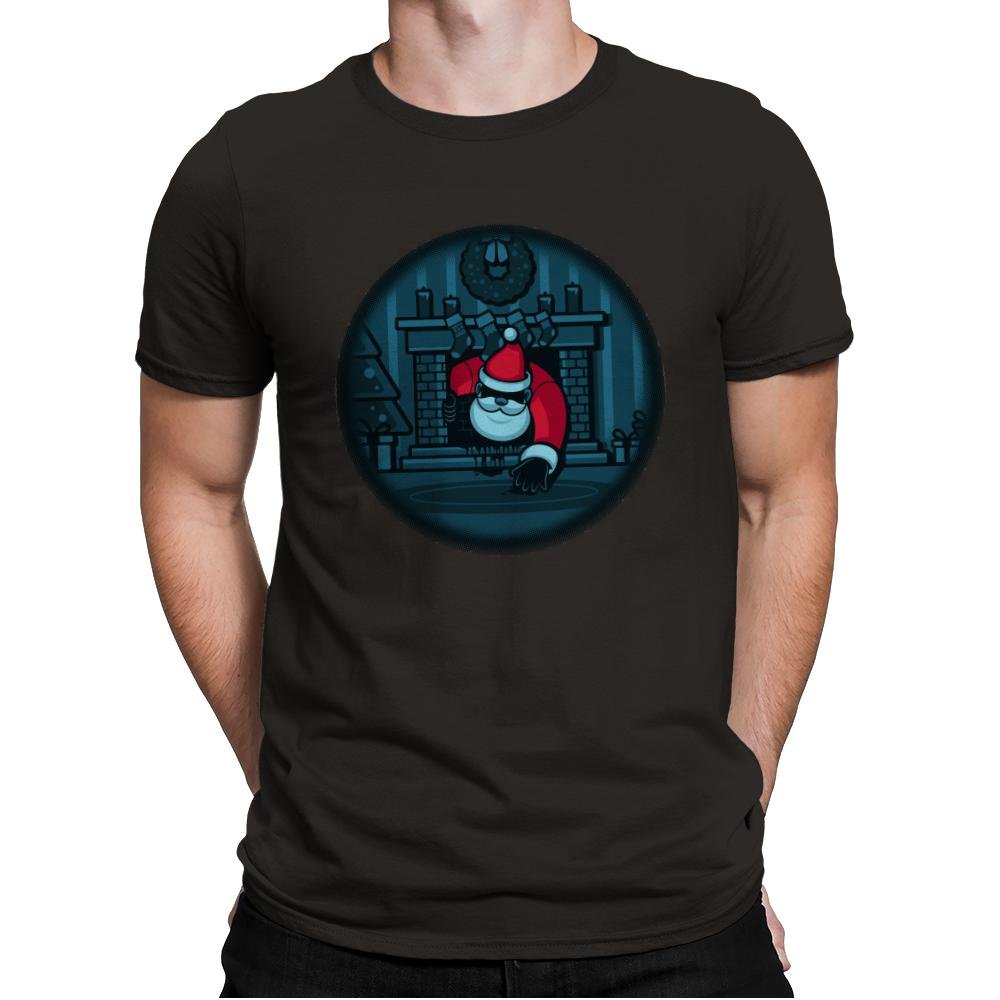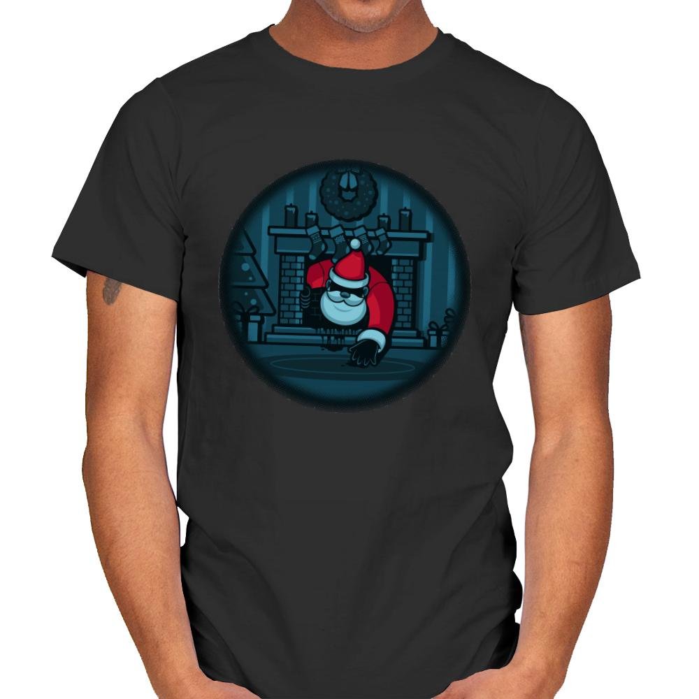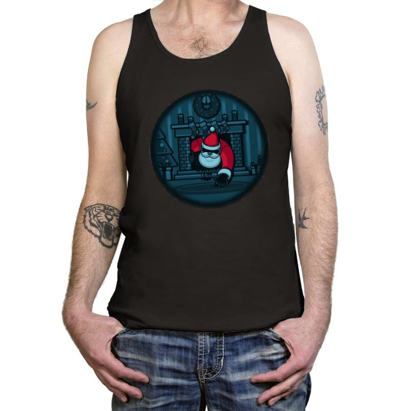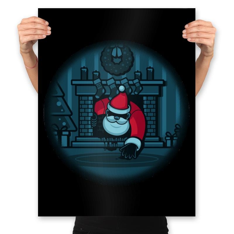 The “The Chimney” design offers a darkly humorous take on the holiday season. It depicts Santa Claus sneaking down the chimney, but with a creepy twist—the usual festive joy is replaced by an eerie vibe as Santa is shown with a mischievous grin and an ominous presence. The design captures the moment in a minimal, cartoonish style, combining the holiday spirit with a hint of suspense, perfect for those who enjoy a bit of spooky fun with their seasonal decor.