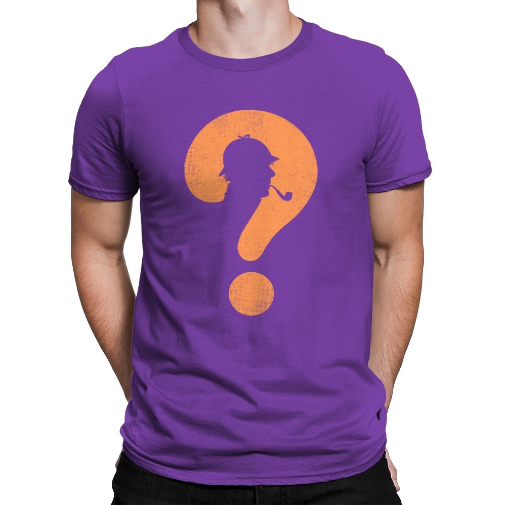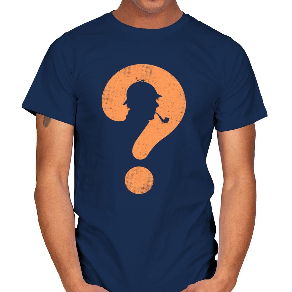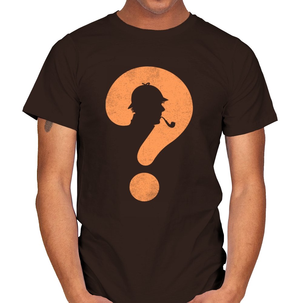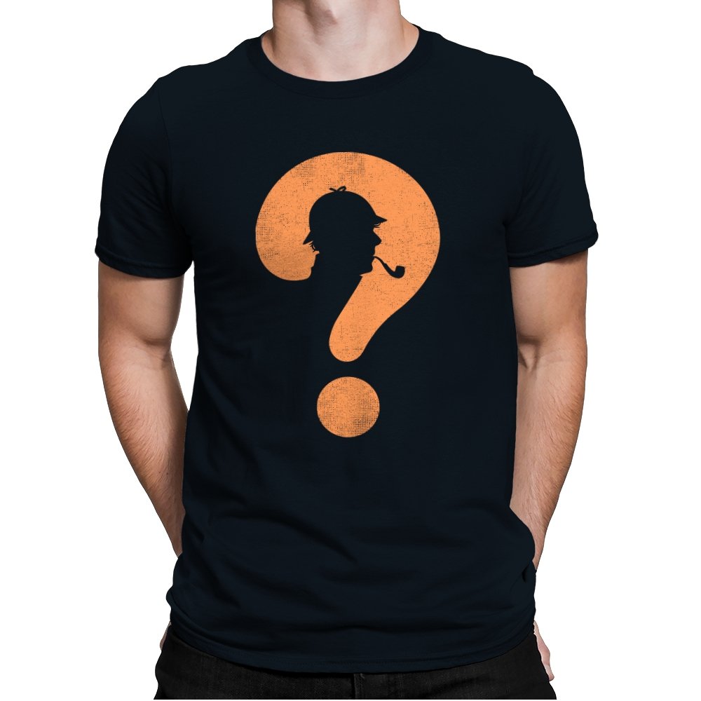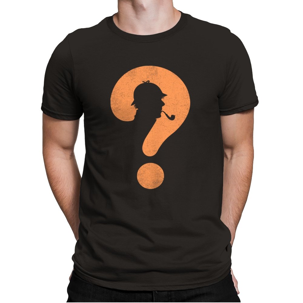 This design distills a classic detective silhouette into a single, clever symbol. A pipe smoking profile hides inside a large question mark, rendered in textured orange against deep black. It feels minimal but loaded, suggesting curiosity, deduction, and the pleasure of not having everything spelled out. The worn texture gives it a vintage tone, like a case file pulled from an old drawer.