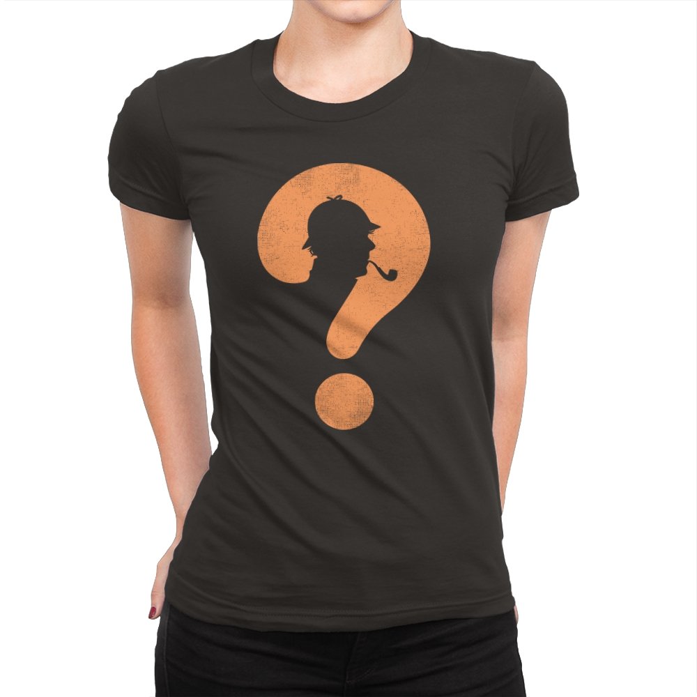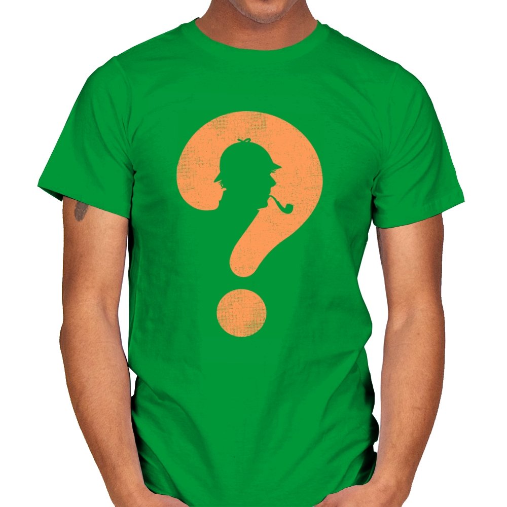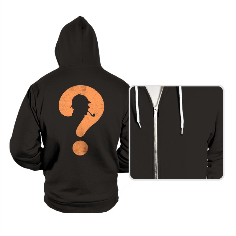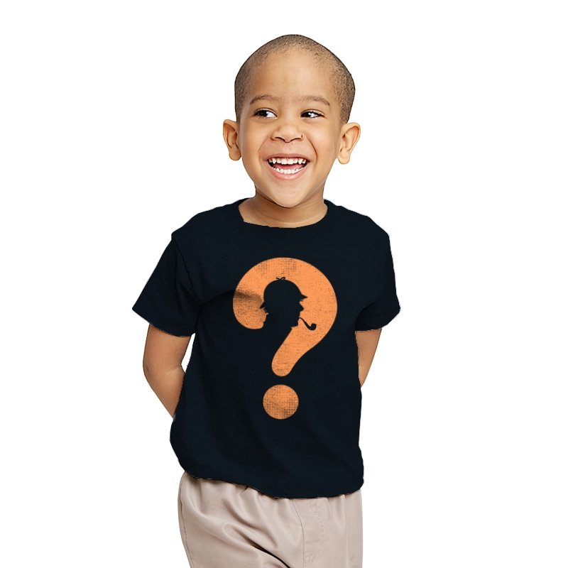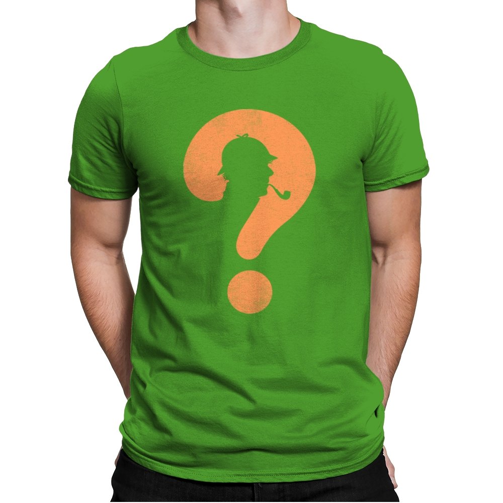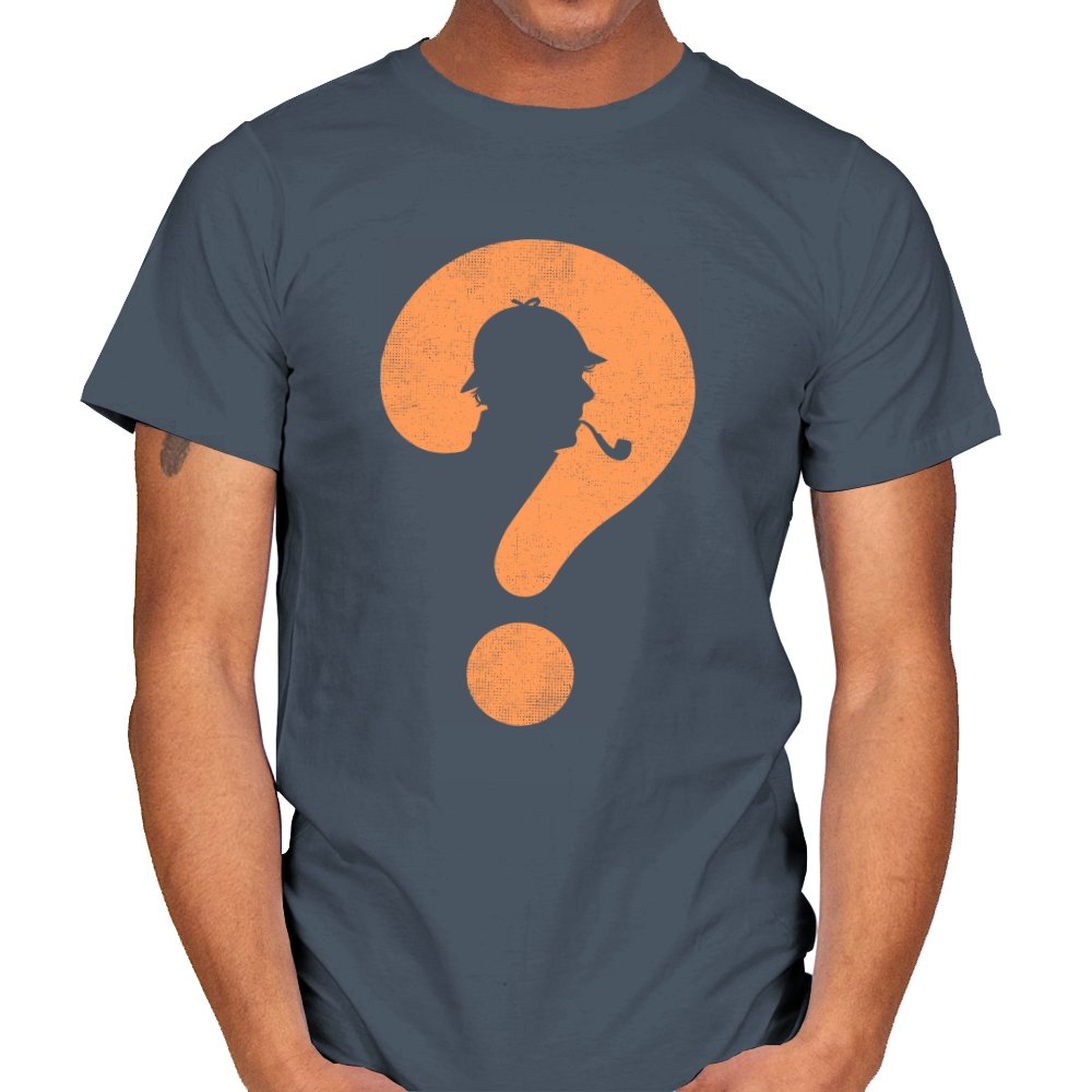 This design distills a classic detective silhouette into a single, clever symbol. A pipe smoking profile hides inside a large question mark, rendered in textured orange against deep black. It feels minimal but loaded, suggesting curiosity, deduction, and the pleasure of not having everything spelled out. The worn texture gives it a vintage tone, like a case file pulled from an old drawer.