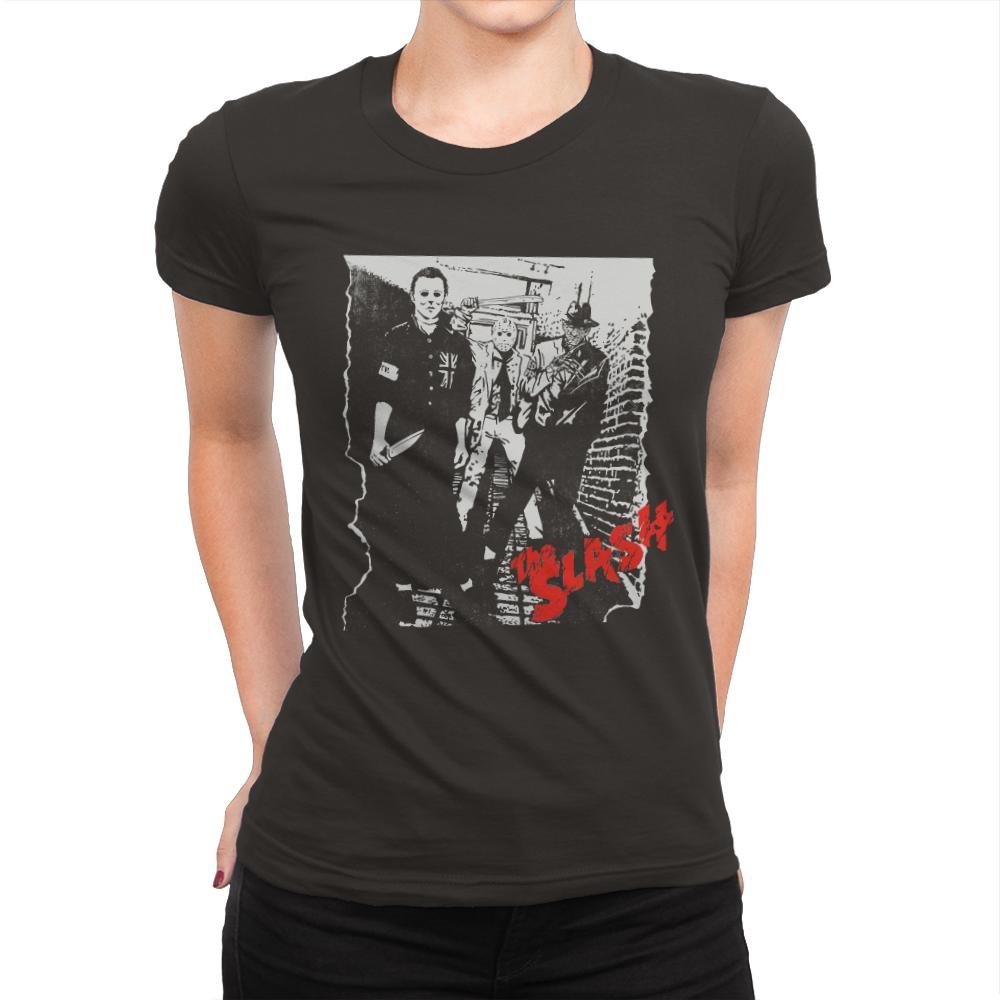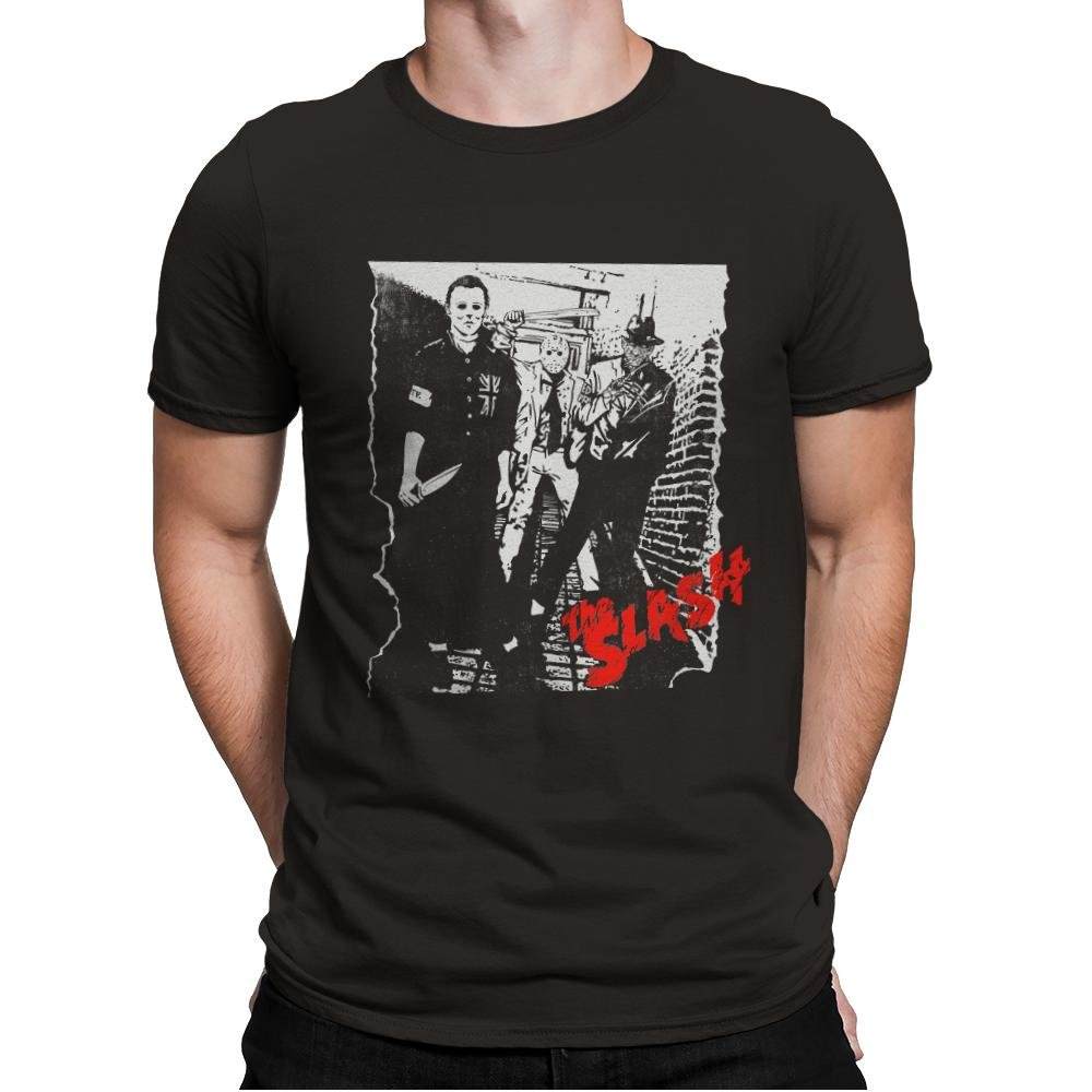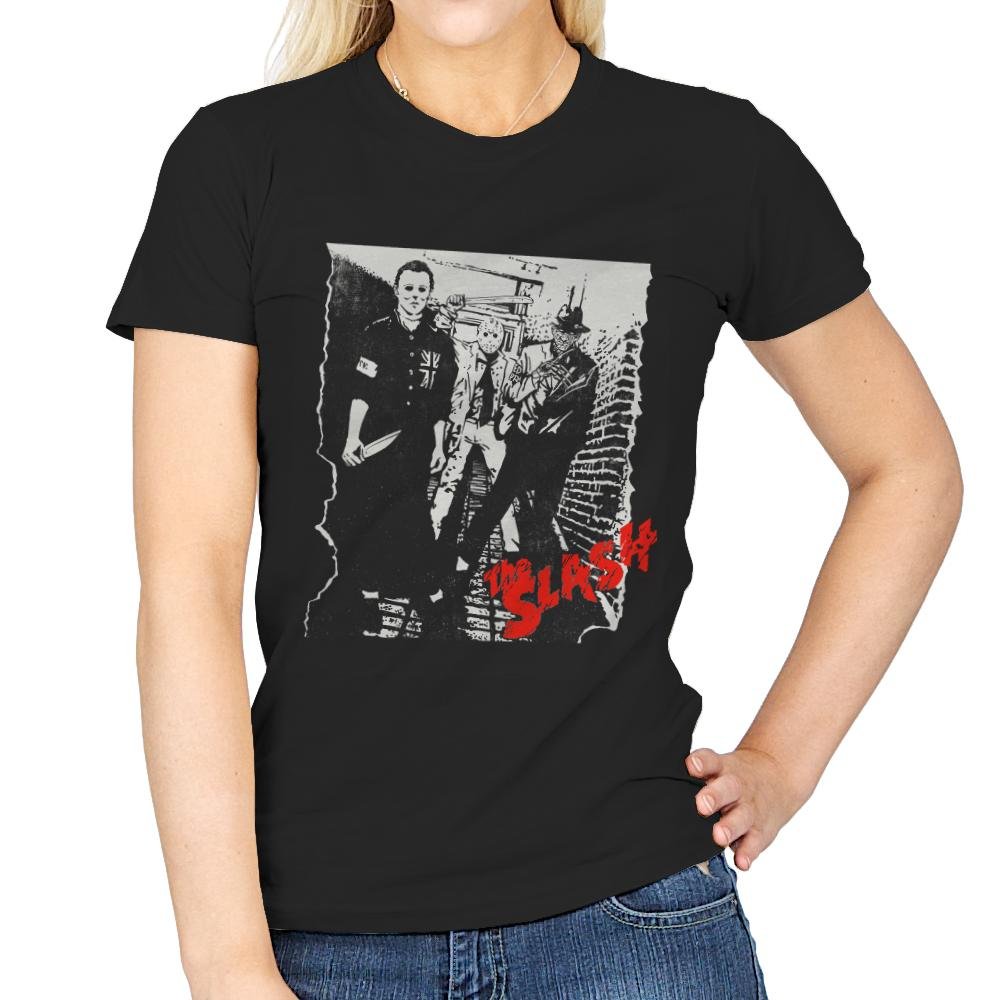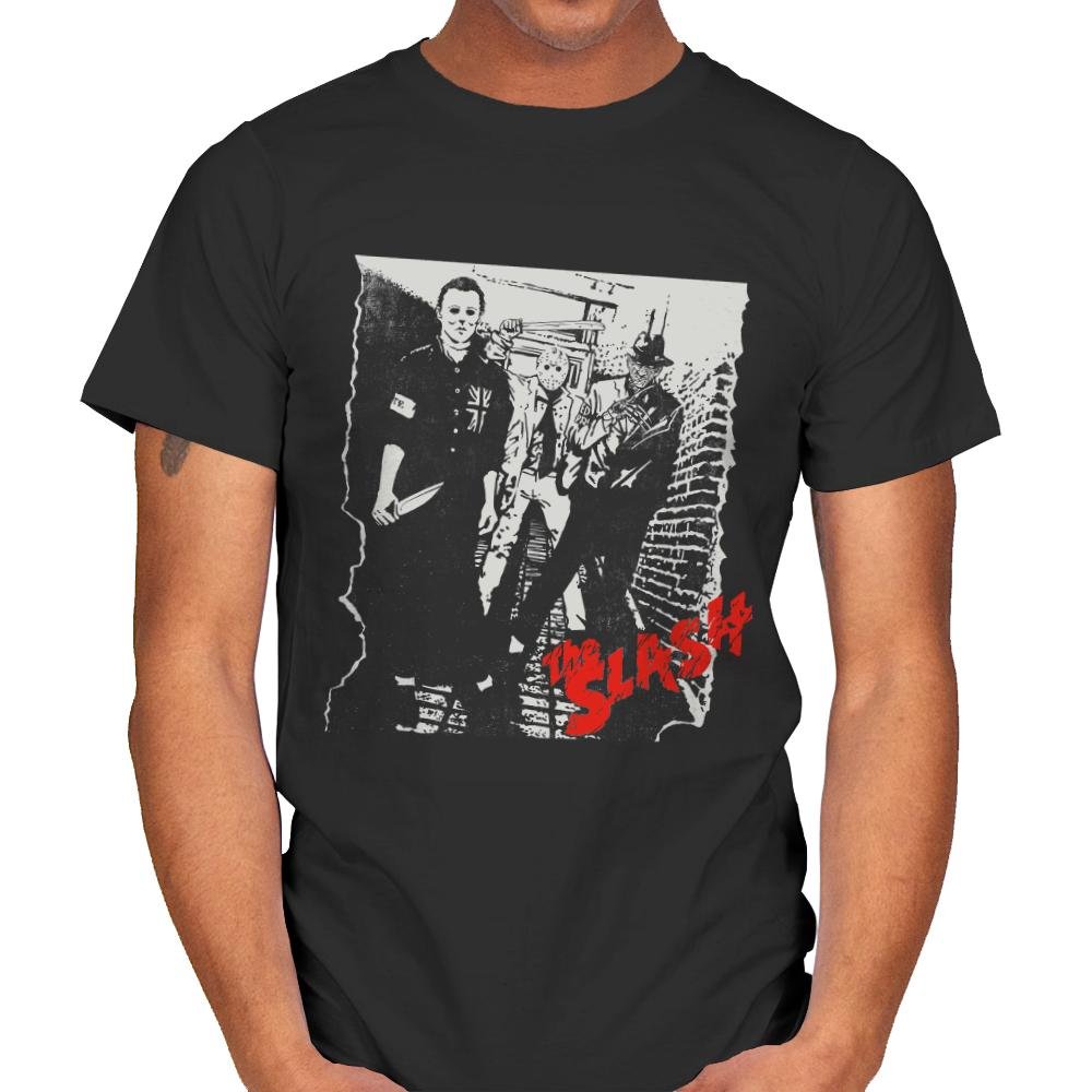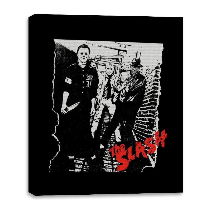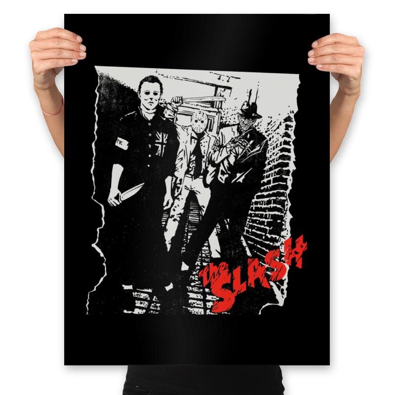 The Slash channels raw punk energy through a torn poster aesthetic that looks ripped straight from a brick wall alley. Three figures stand locked in attitude and defiance, rendered in stark black and white with rough textures that feel photocopied and passed hand to hand. The scuffed edges and aggressive composition capture a moment when music, rebellion, and style all blurred together. Fans who get it recognize the era immediately without needing anything spelled out.