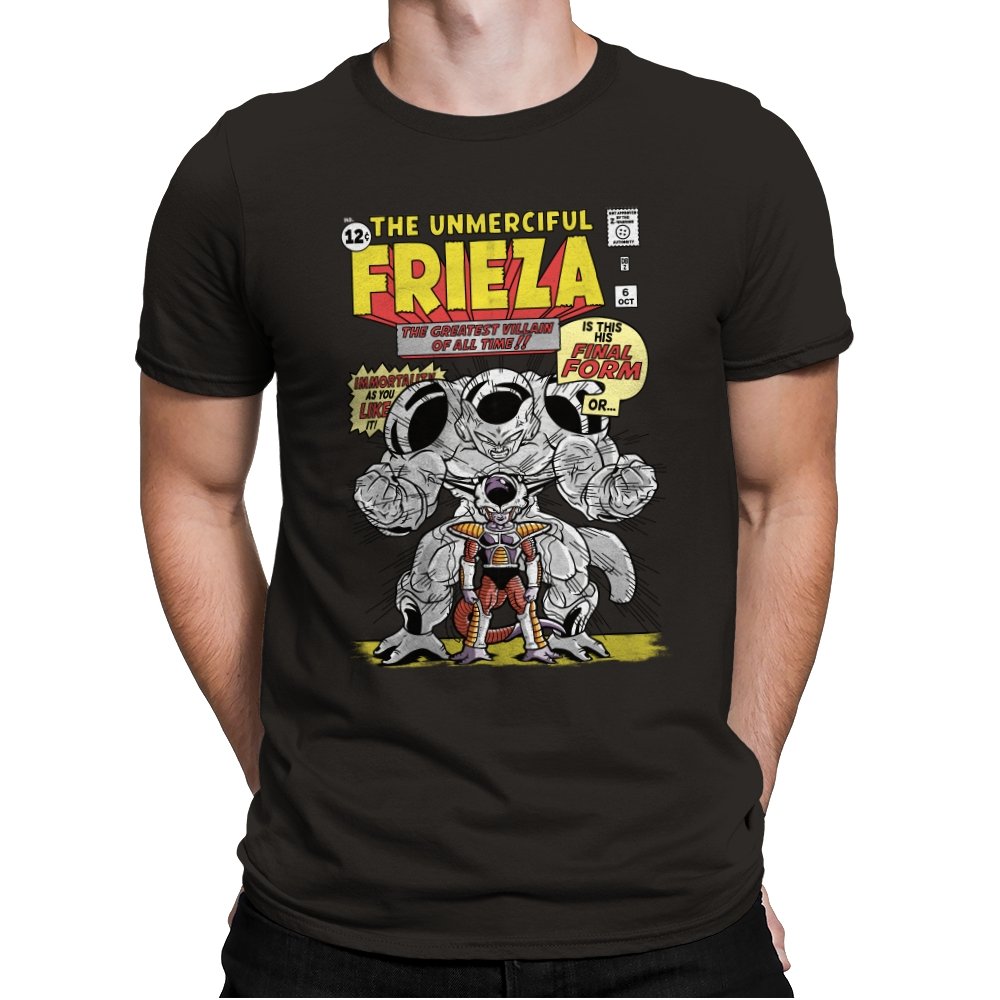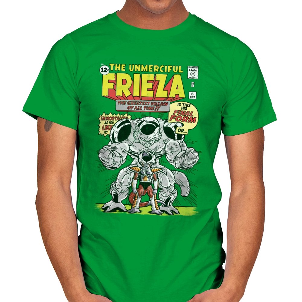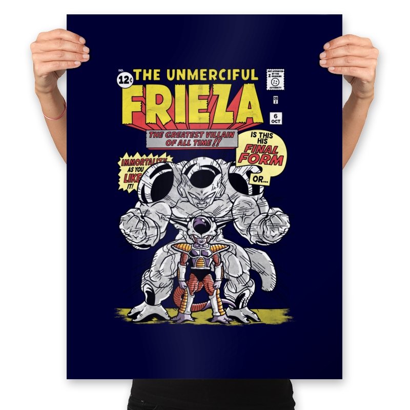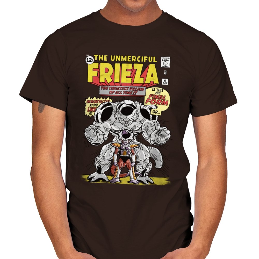 This design presents a comic book style cover moment where raw power overwhelms the frame. A towering, muscle-bound final form looms behind a smaller, defiant opponent, fists clenched, lines heavy with tension and inevitability. The retro lettering, issue markers, and exaggerated anatomy lean into classic manga cover drama, where escalation is the story. Fans who know the arc will recognize the turning point immediately.