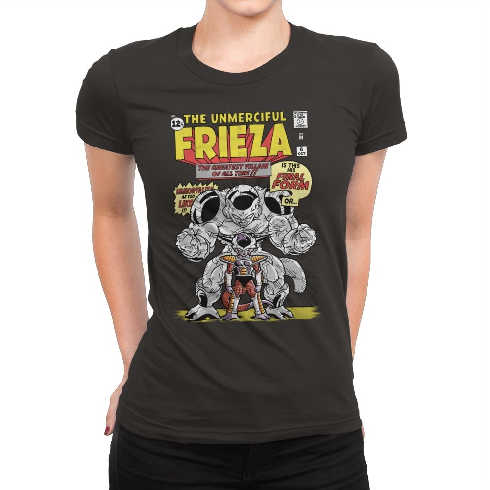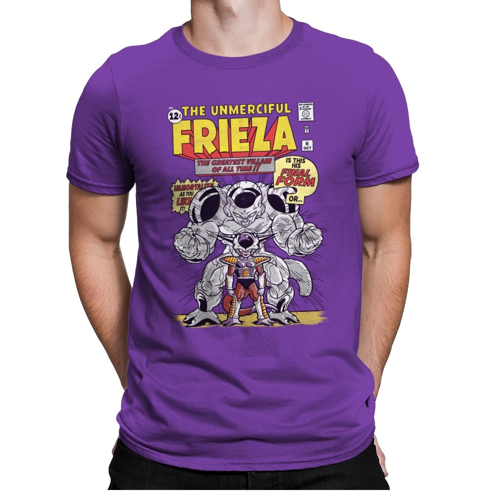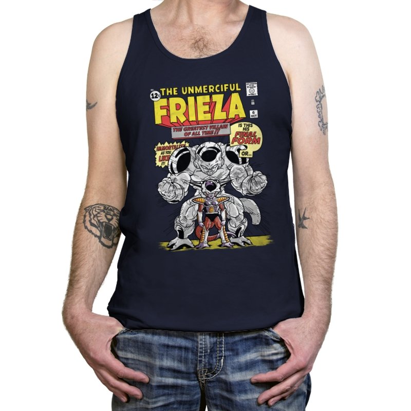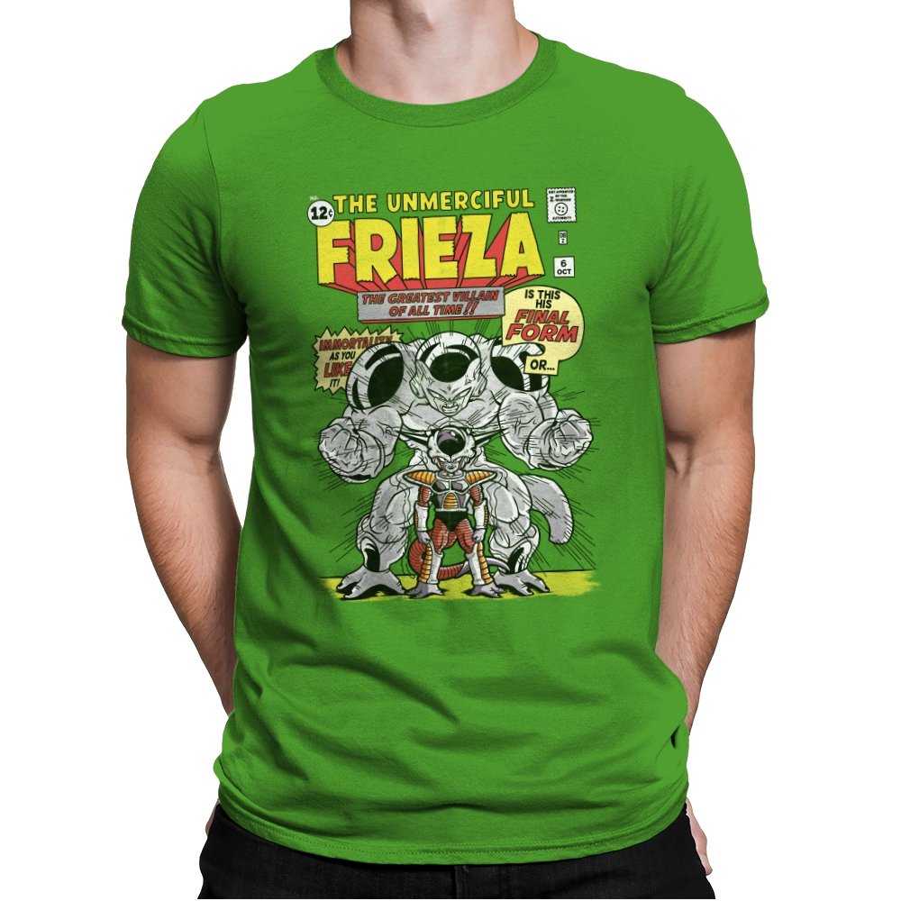 This design presents a comic book style cover moment where raw power overwhelms the frame. A towering, muscle-bound final form looms behind a smaller, defiant opponent, fists clenched, lines heavy with tension and inevitability. The retro lettering, issue markers, and exaggerated anatomy lean into classic manga cover drama, where escalation is the story. Fans who know the arc will recognize the turning point immediately.