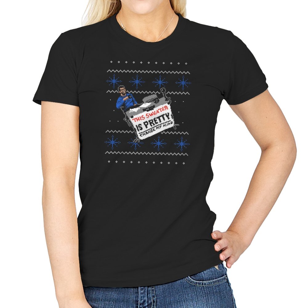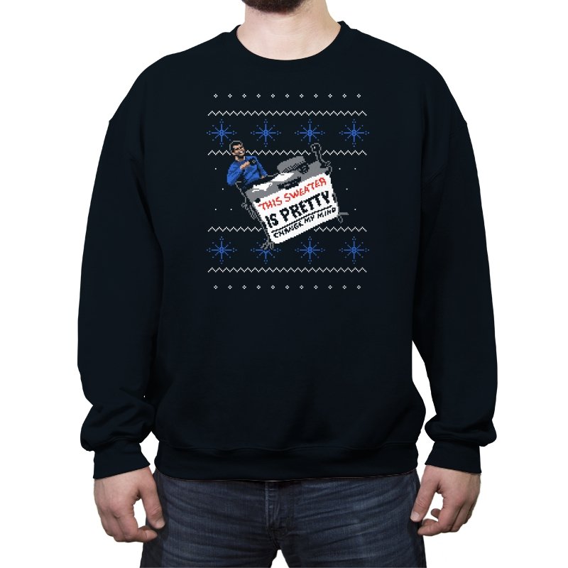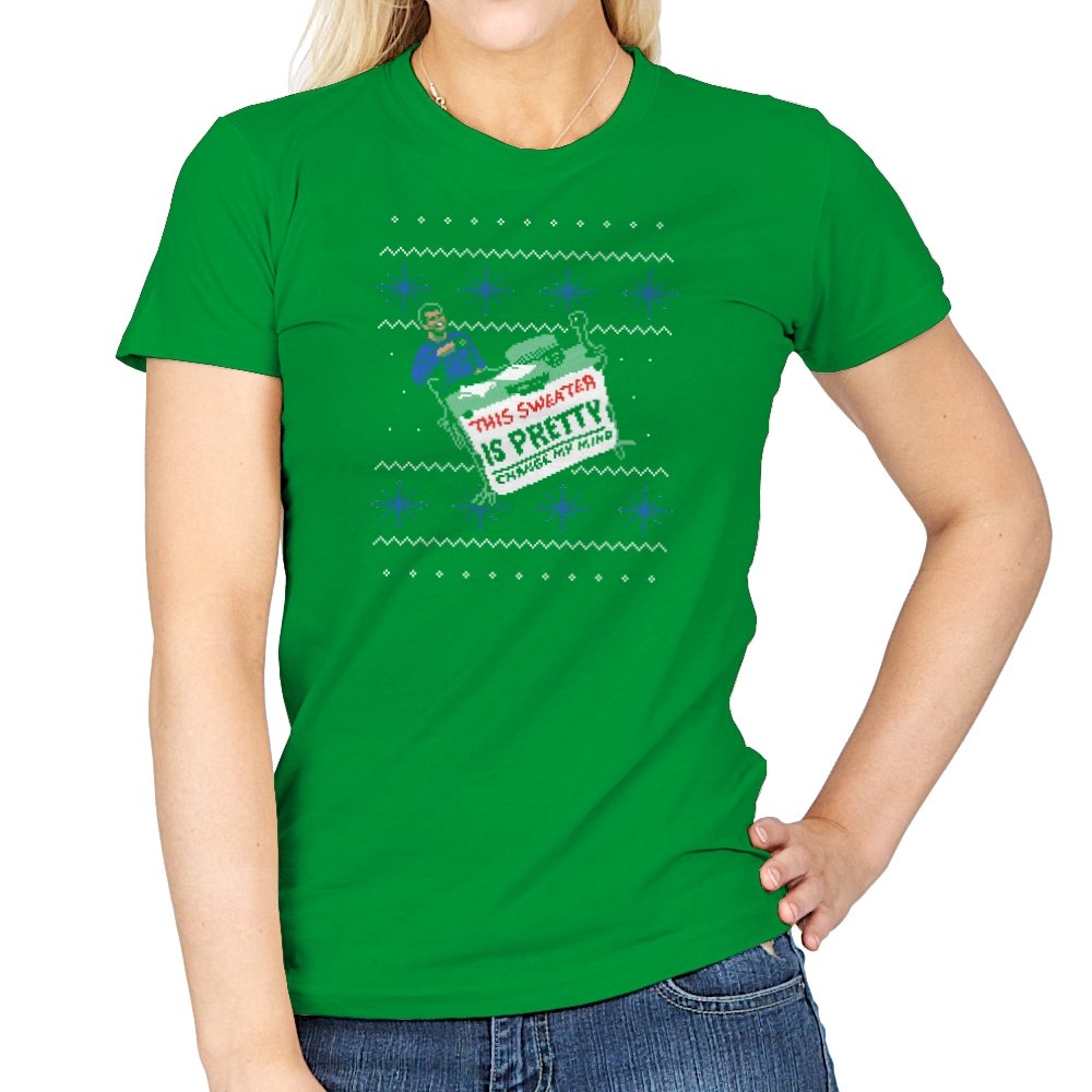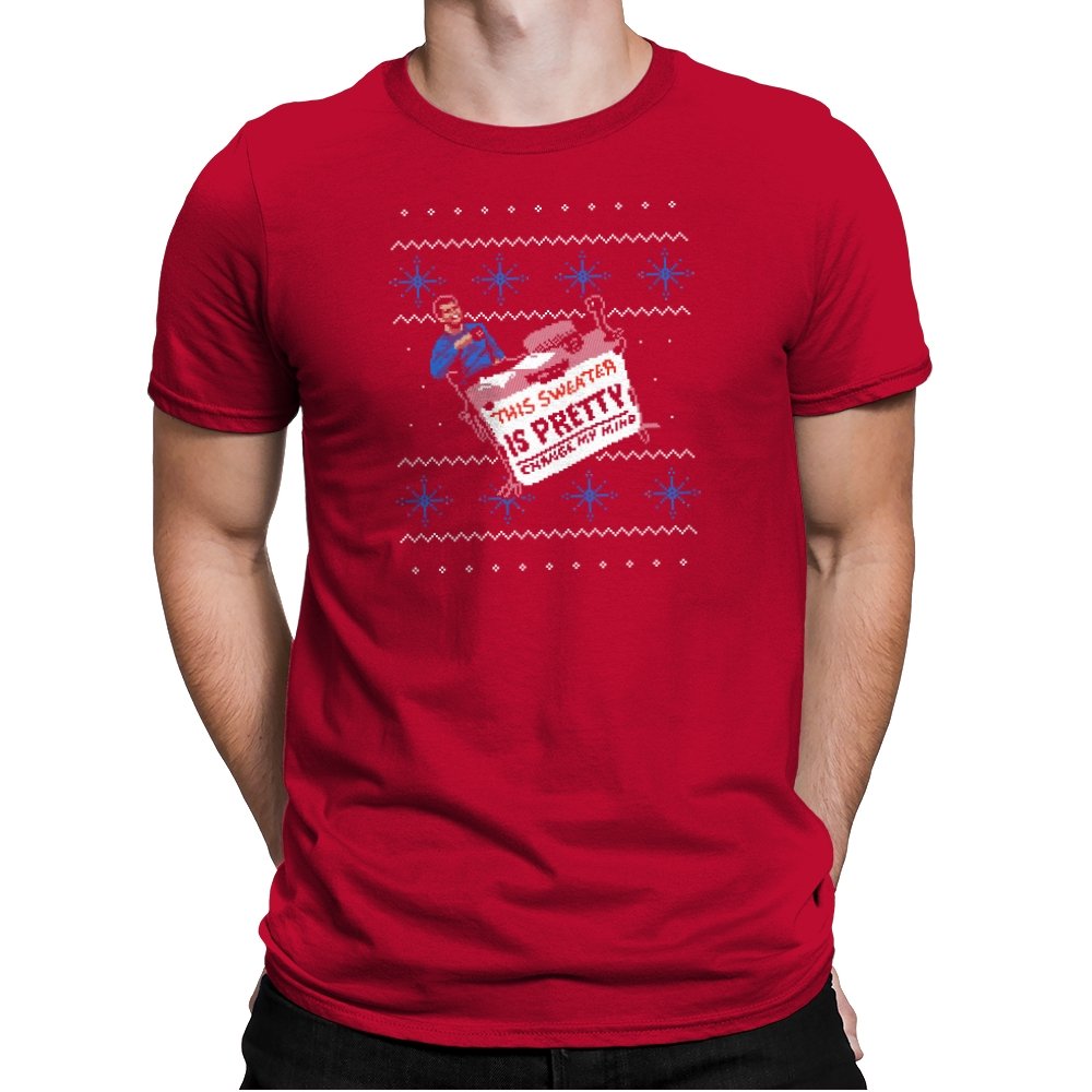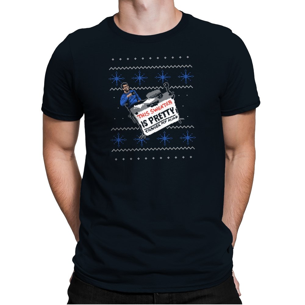 This ugly holiday design channels a viral internet meme into a perfect sweater showdown. A character, dressed in blue, strikes an over-the-top pose, tossing a festive holiday sweater with a phrase that’s bold and unrelenting. The juxtaposition of the kitschy sweater and the serious “change my mind” attitude creates a humorous tension. This design is the perfect blend of meme culture and holiday absurdity, making it a stand-out piece for anyone who embraces ironic, internet-driven humor.