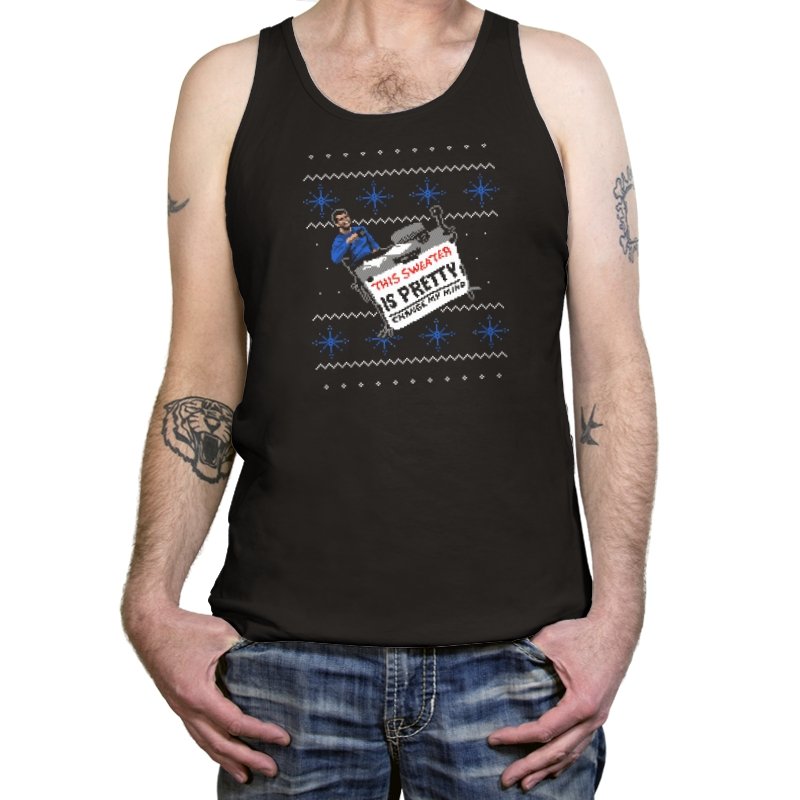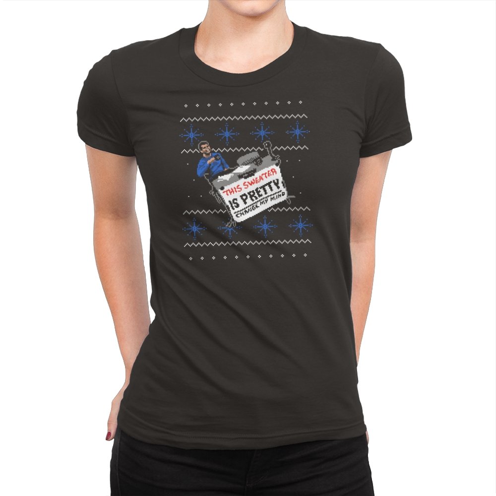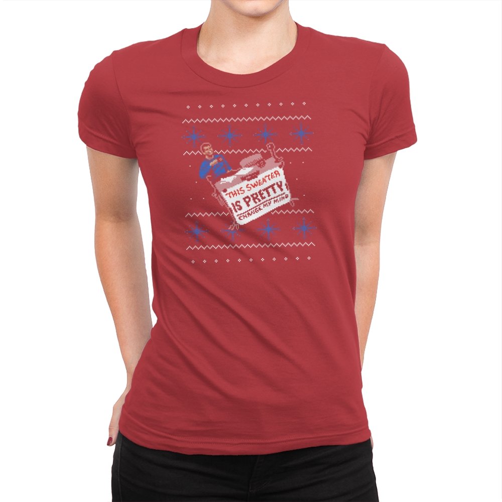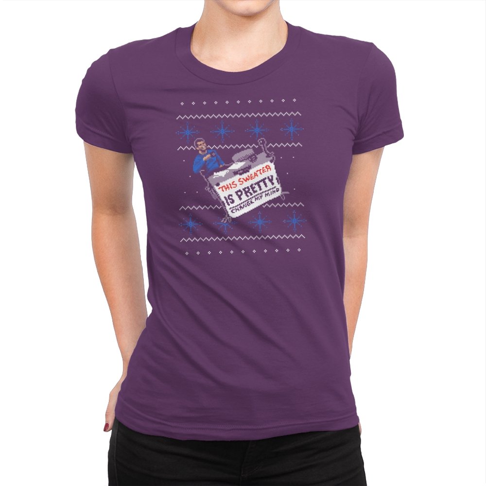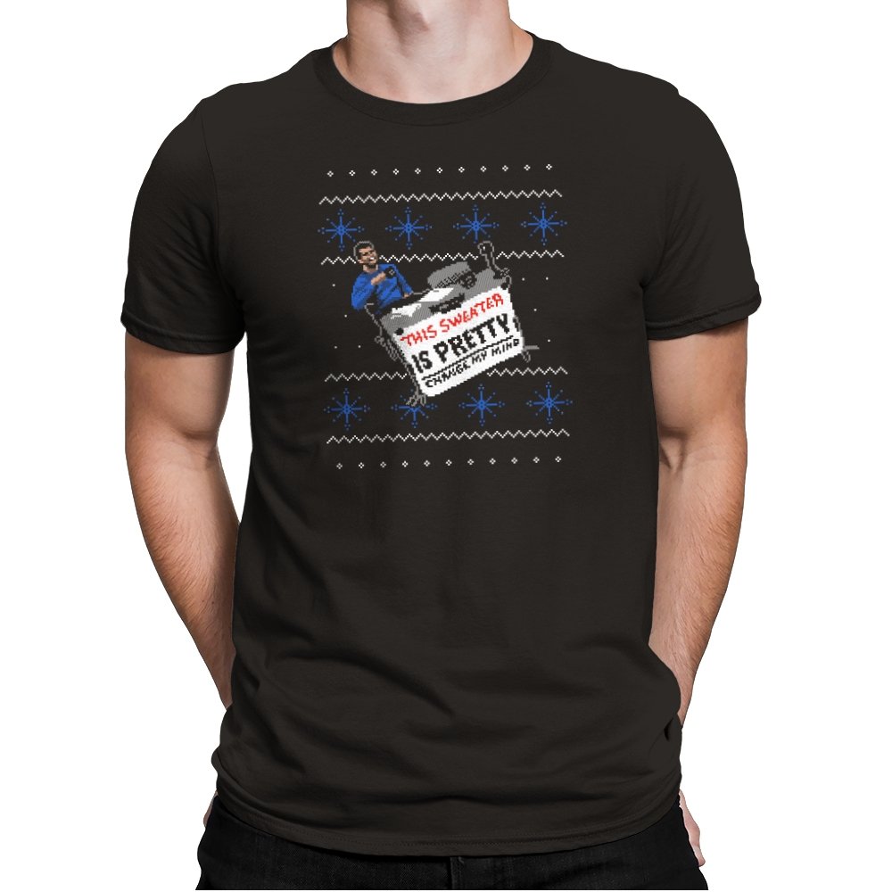 This ugly holiday design channels a viral internet meme into a perfect sweater showdown. A character, dressed in blue, strikes an over-the-top pose, tossing a festive holiday sweater with a phrase that’s bold and unrelenting. The juxtaposition of the kitschy sweater and the serious “change my mind” attitude creates a humorous tension. This design is the perfect blend of meme culture and holiday absurdity, making it a stand-out piece for anyone who embraces ironic, internet-driven humor.