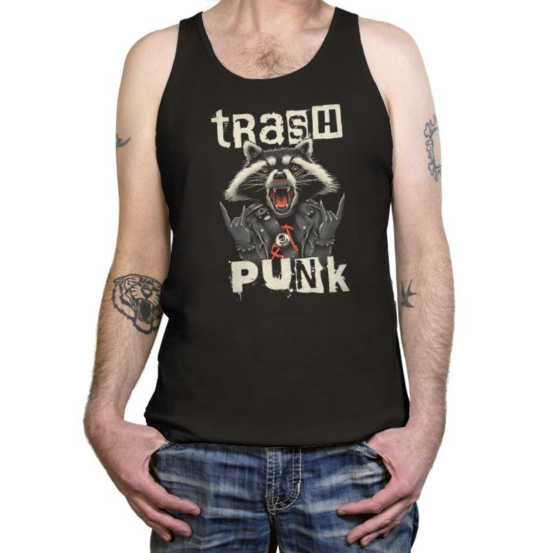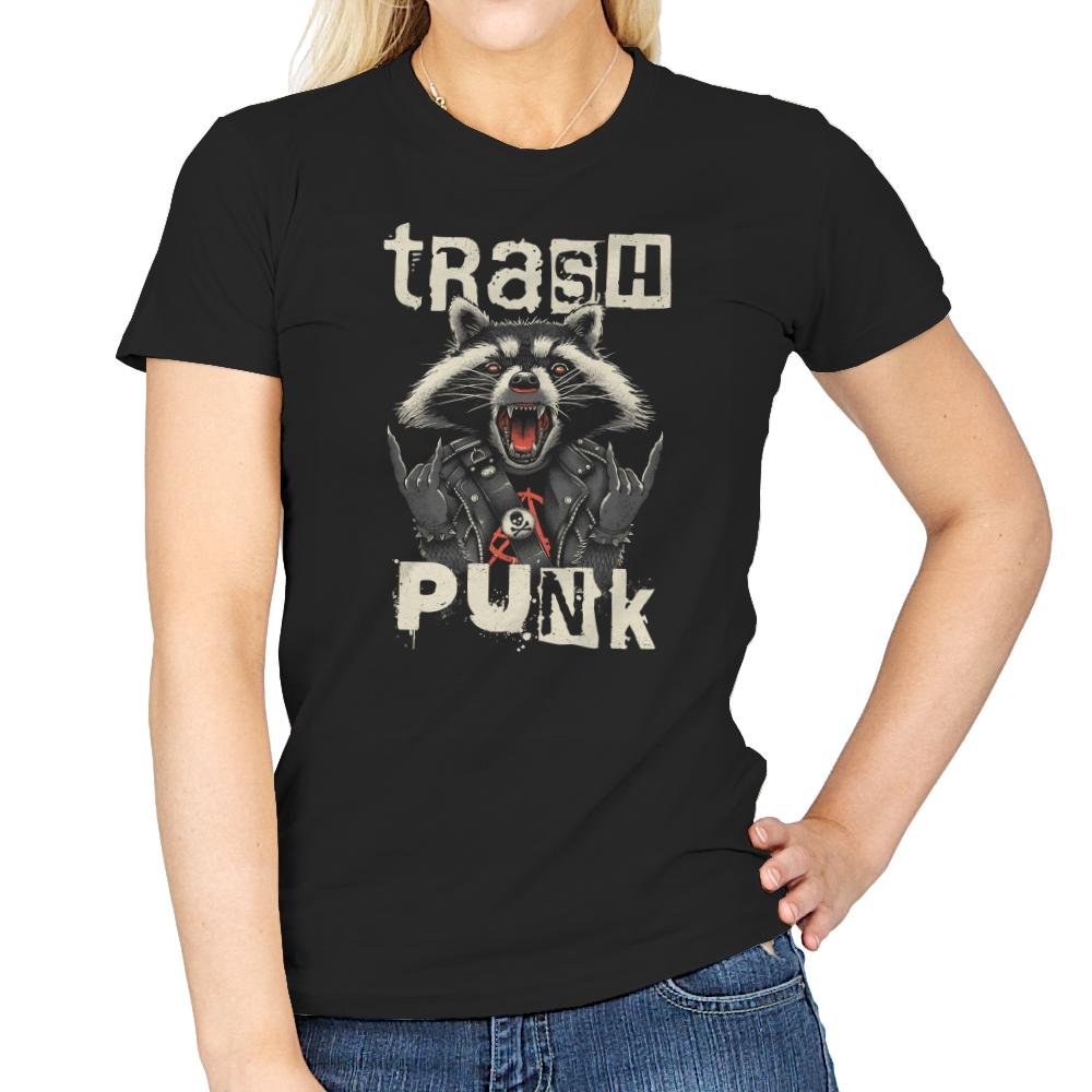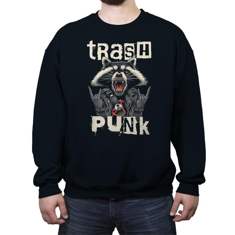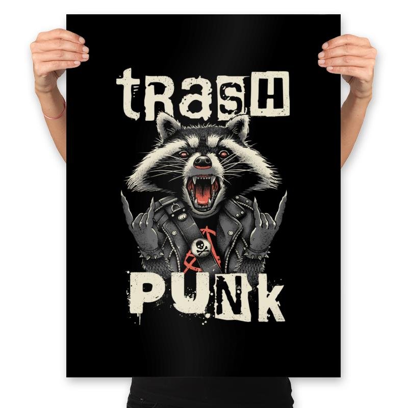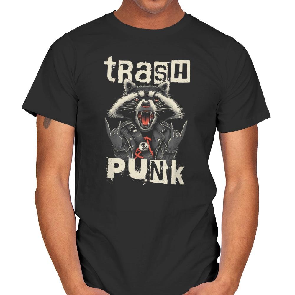 This design takes a scavenger mascot and pushes it fully into back-alley punk territory. The raccoon snarls, throws the horns, and wears its jacket like a badge of bad intent. The rough lettering and splatter textures feel torn from a basement flyer wall, not cleaned up for polite company. It is a joke with teeth, equal parts feral humor and anti-everything attitude.