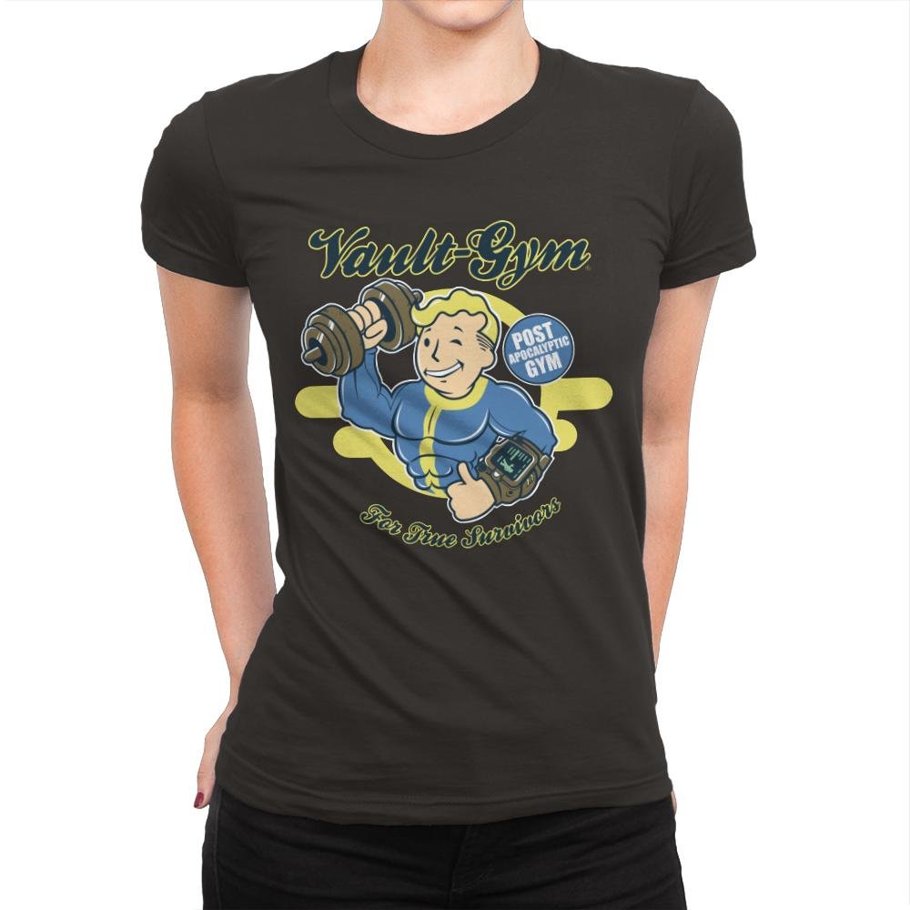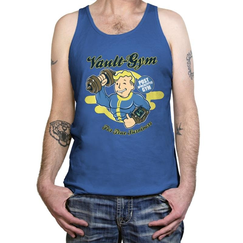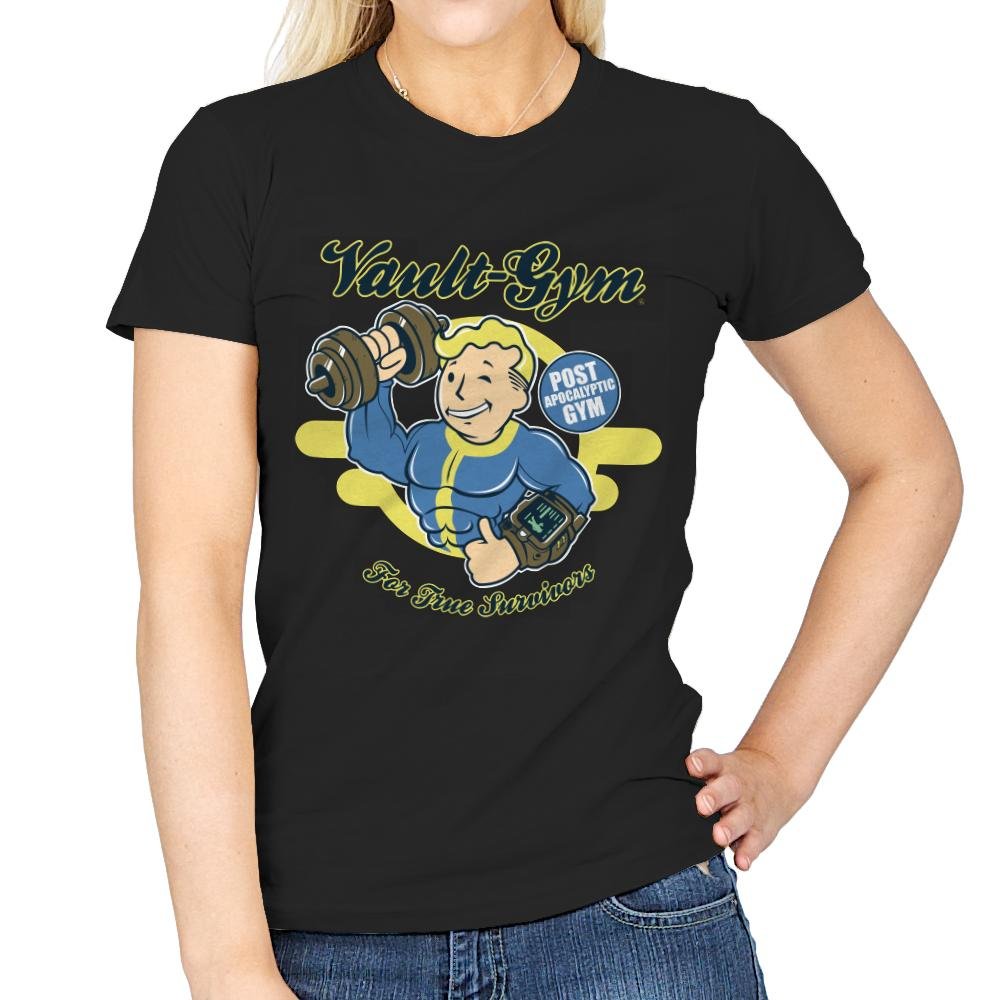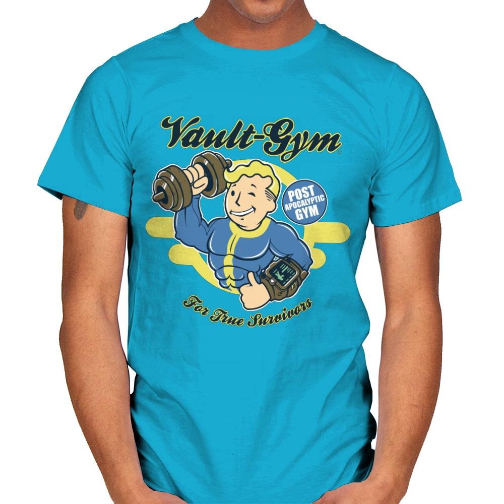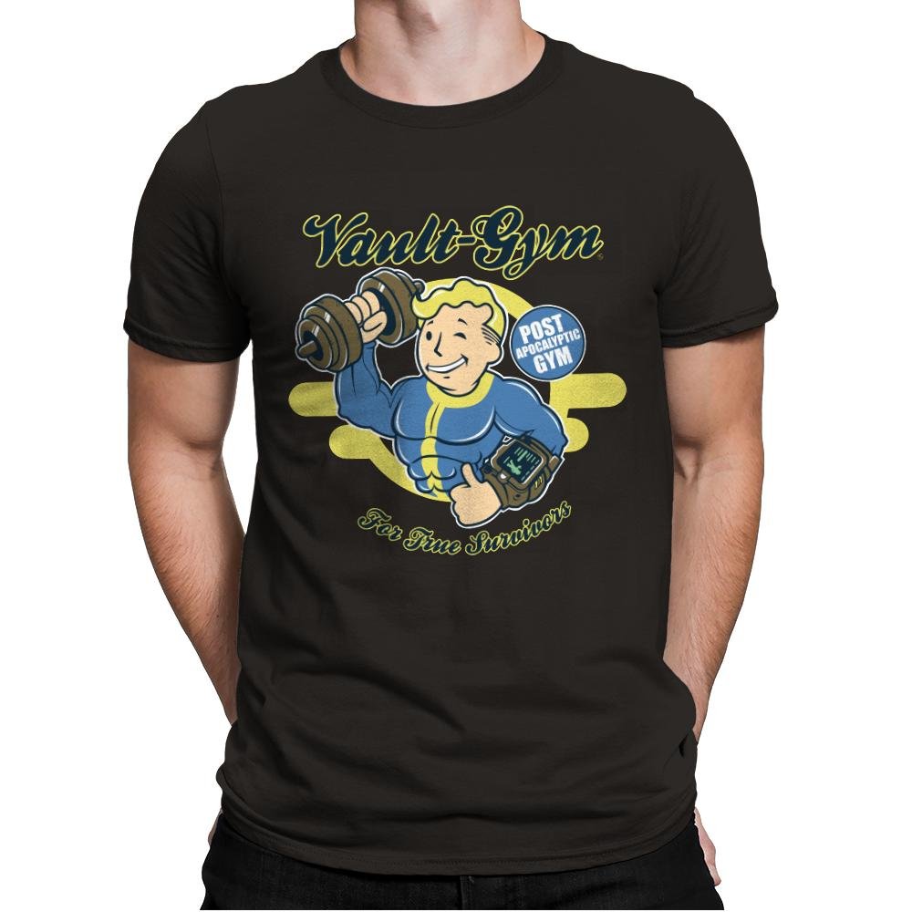 The “Vault Gym” design channels post-apocalyptic energy with a playful twist, featuring a buff character lifting weights with a Pip-Boy on his arm. The vintage gym logo with the slogan “Post-Apocalyptic Gym For True Survivors” brings humor and nostalgia to those who know the challenges of surviving and thriving in any situation. This design is a fun tribute to the idea that fitness is key to surviving in the wasteland.