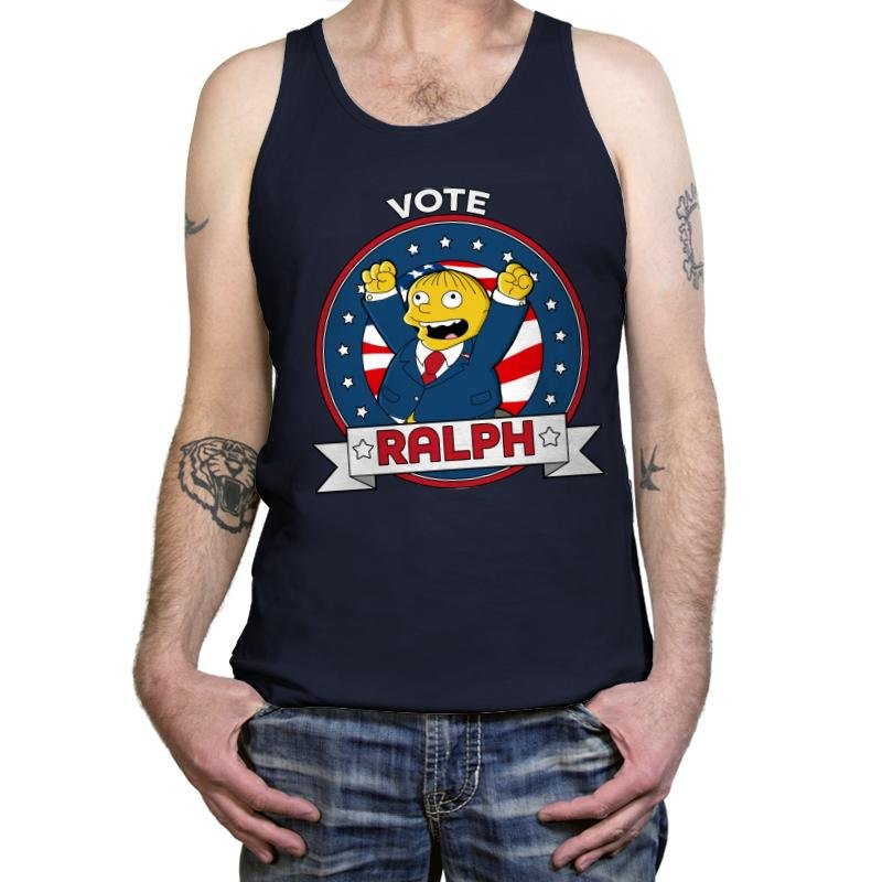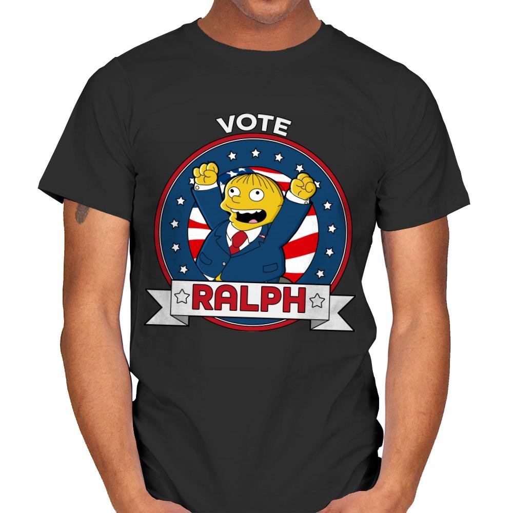 This design presents a campaign-style badge built from clean shapes, patriotic colors, and a familiar grinning candidate throwing both fists in the air. The circular seal, stars, stripes, and bold banner mimic official election graphics, while the wide-eyed optimism undercuts the seriousness just enough. It feels like a political poster from a universe where enthusiasm outweighs competence. Fans recognize the joke immediately, especially the way sincerity and absurdity collide.