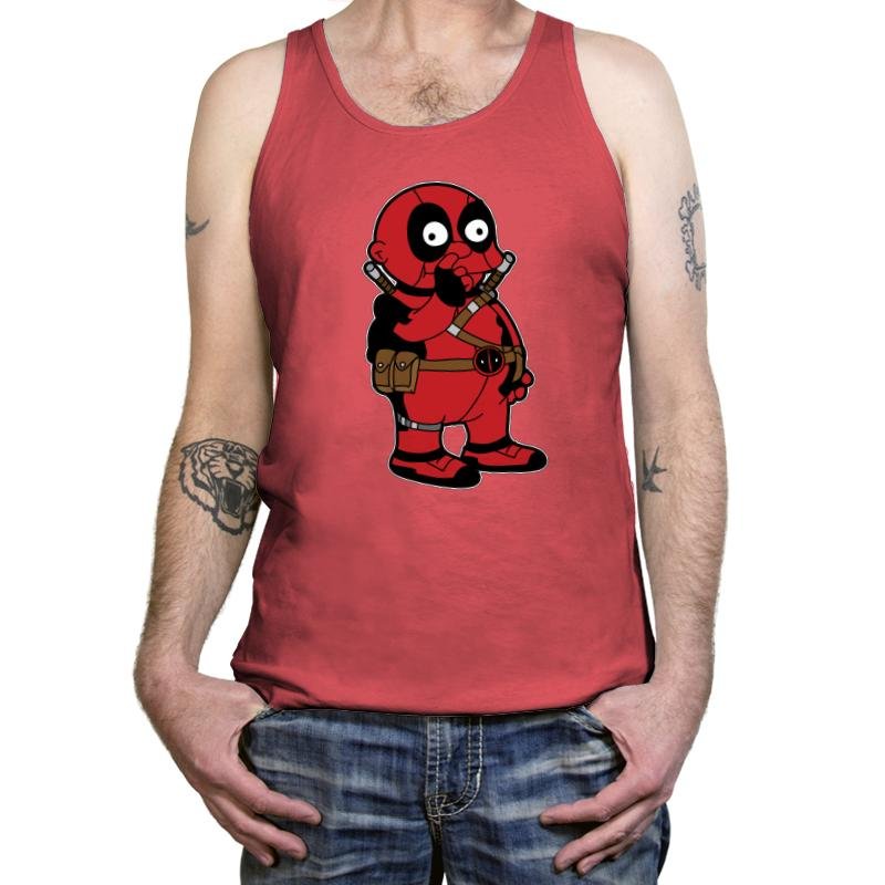 For fans of both Deadpool and The Simpsons, this design offers a clever and light-hearted fusion of two beloved franchises. It’s perfect for those who enjoy a bit of comic book action with a humorous cartoon twist.
