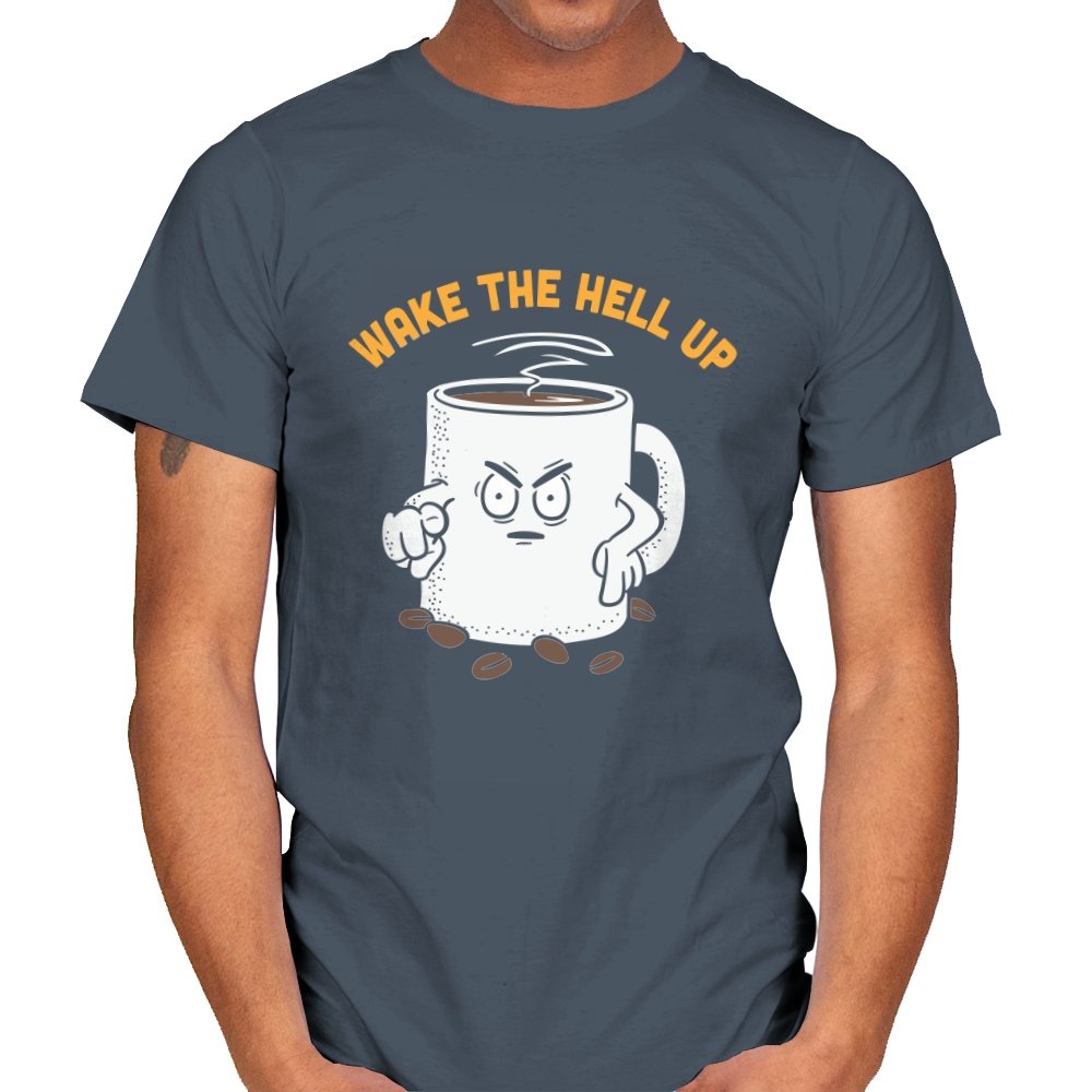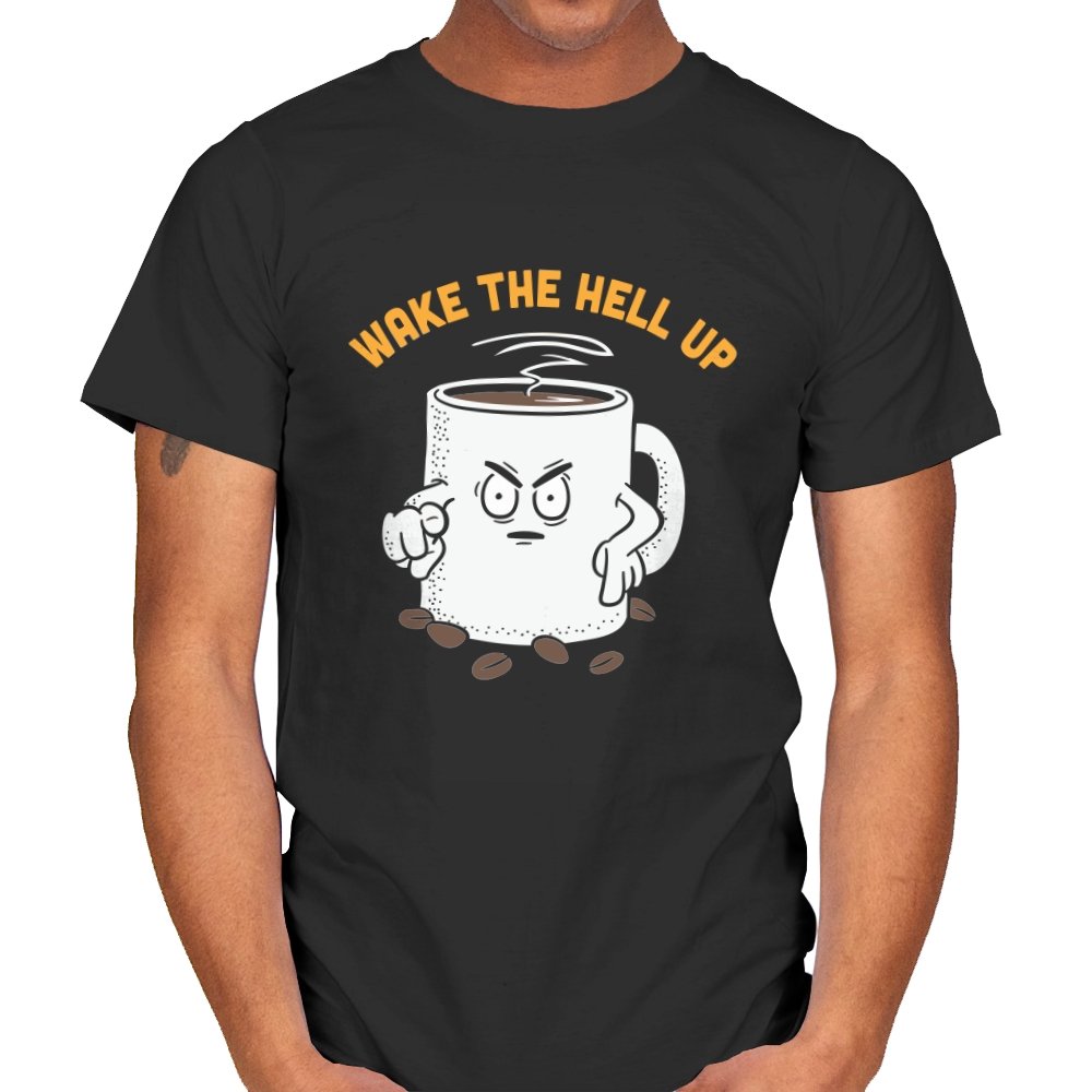 This design turns a simple coffee mug into an unmistakable threat. The cup stares straight ahead with clenched fists, scattered beans at its base, and steam rising like a warning signal. The phrase above it reads less like motivation and more like an ultimatum, capturing the exact mood before caffeine kicks in. If mornings feel adversarial, the joke lands immediately.