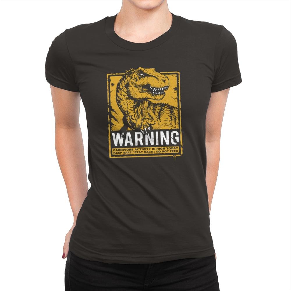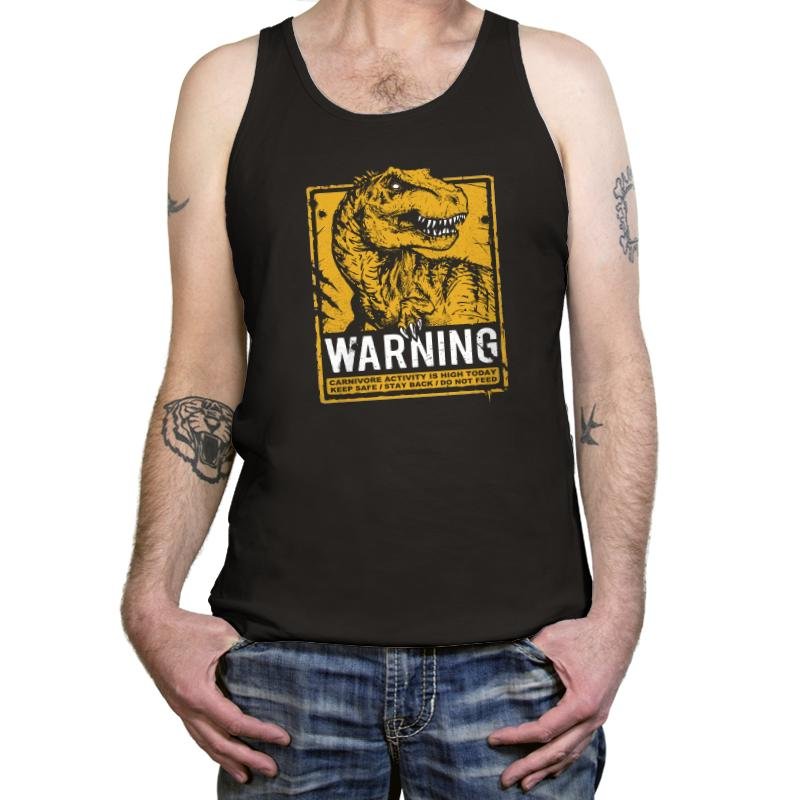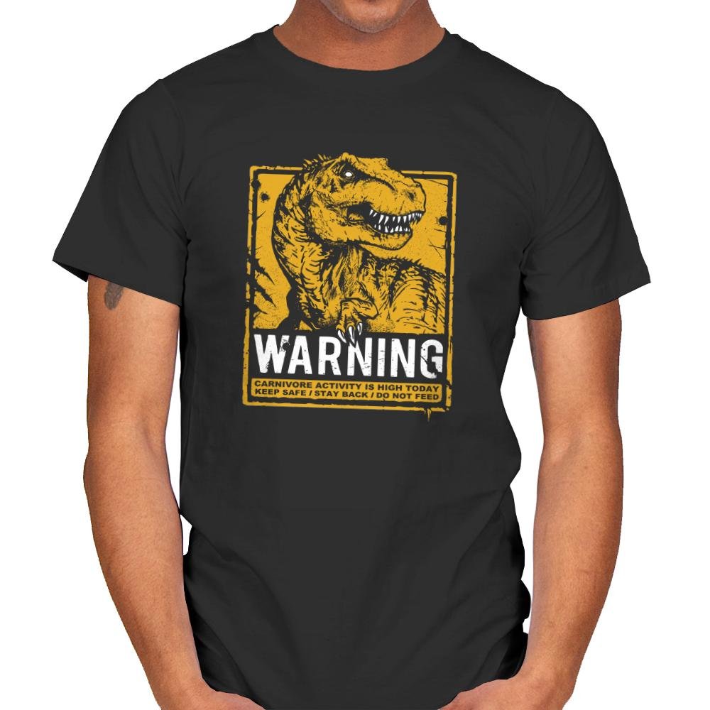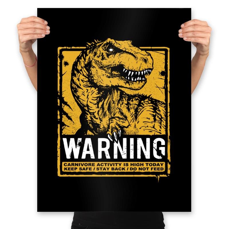 Some warnings deserve to be taken more seriously than others. This design presents a T-Rex in classic hazard sign styling, complete with the kind of advisory you’d see on a theme park ride, except this one addresses actual prehistoric carnivores rather than mechanical simulations. The weathered yellow and black aesthetic gives it that authentic safety signage look, while the message about keeping your arms inside the vehicle suddenly becomes genuinely practical advice. It’s equal parts Jurassic reference and functional warning system for encounters that hopefully remain fictional.