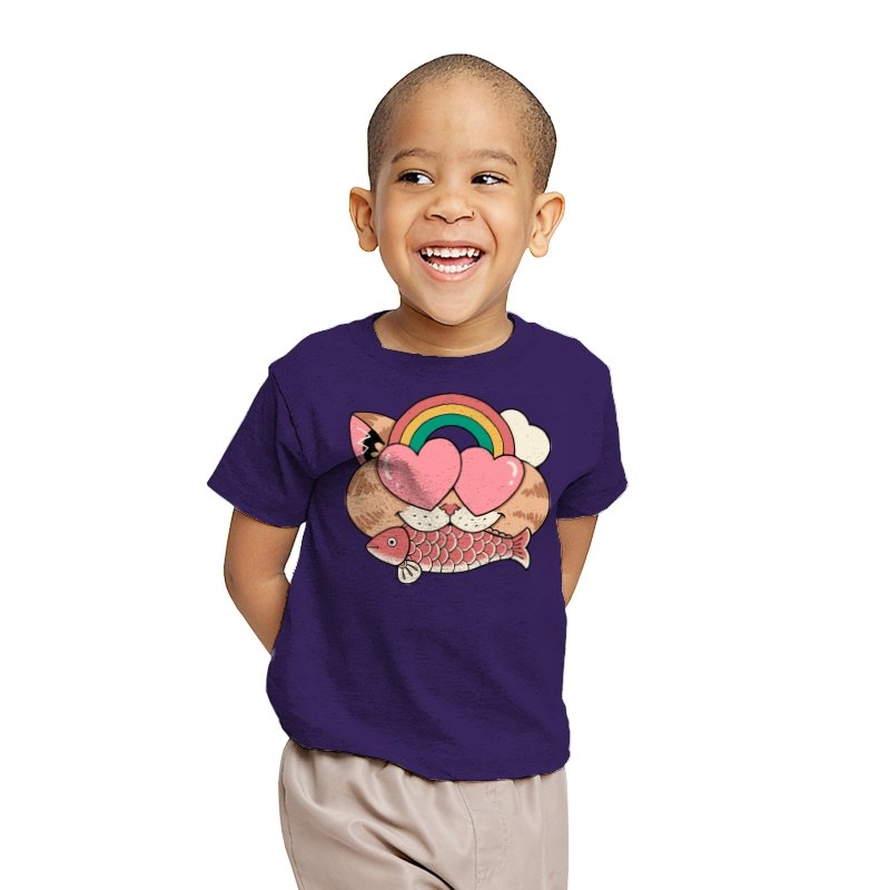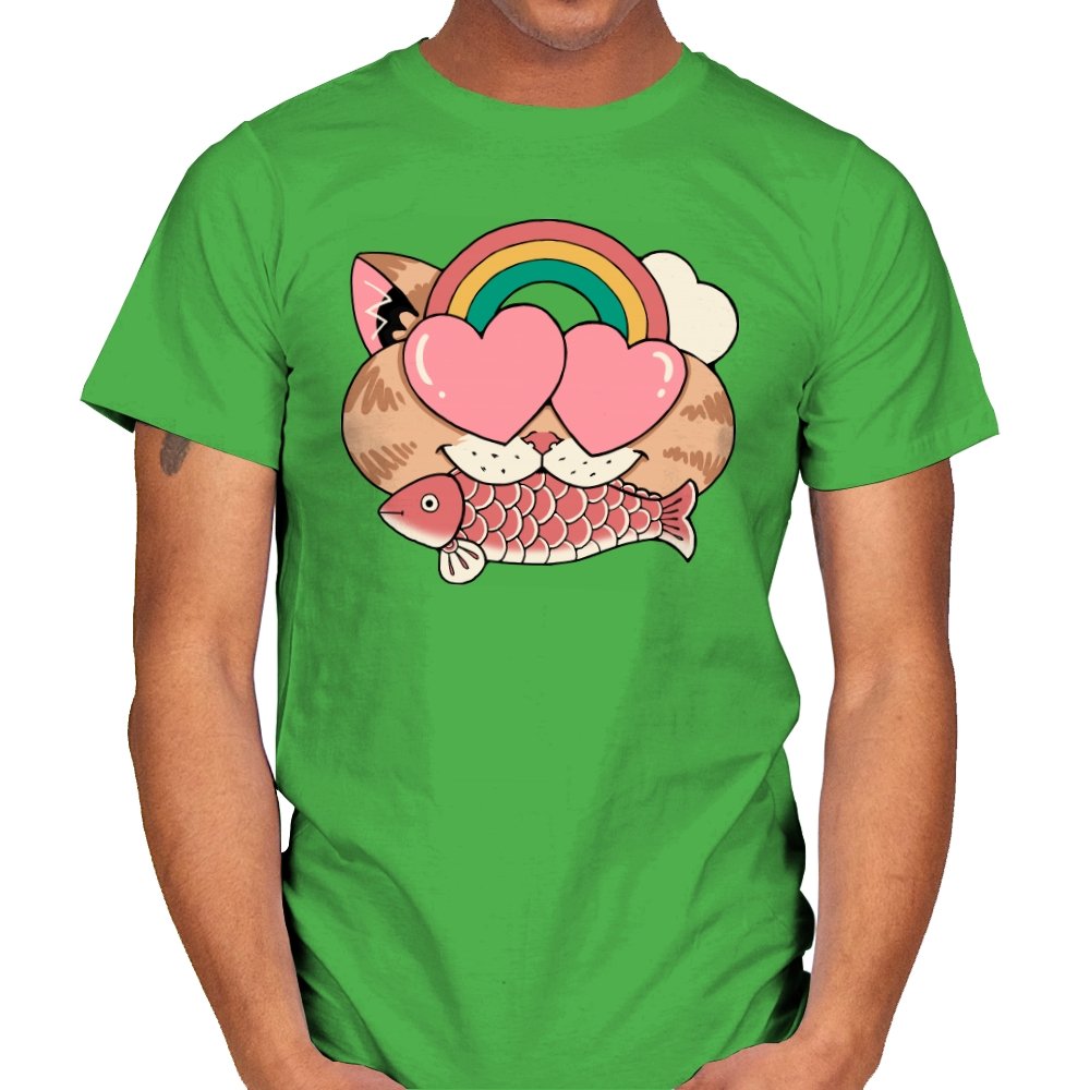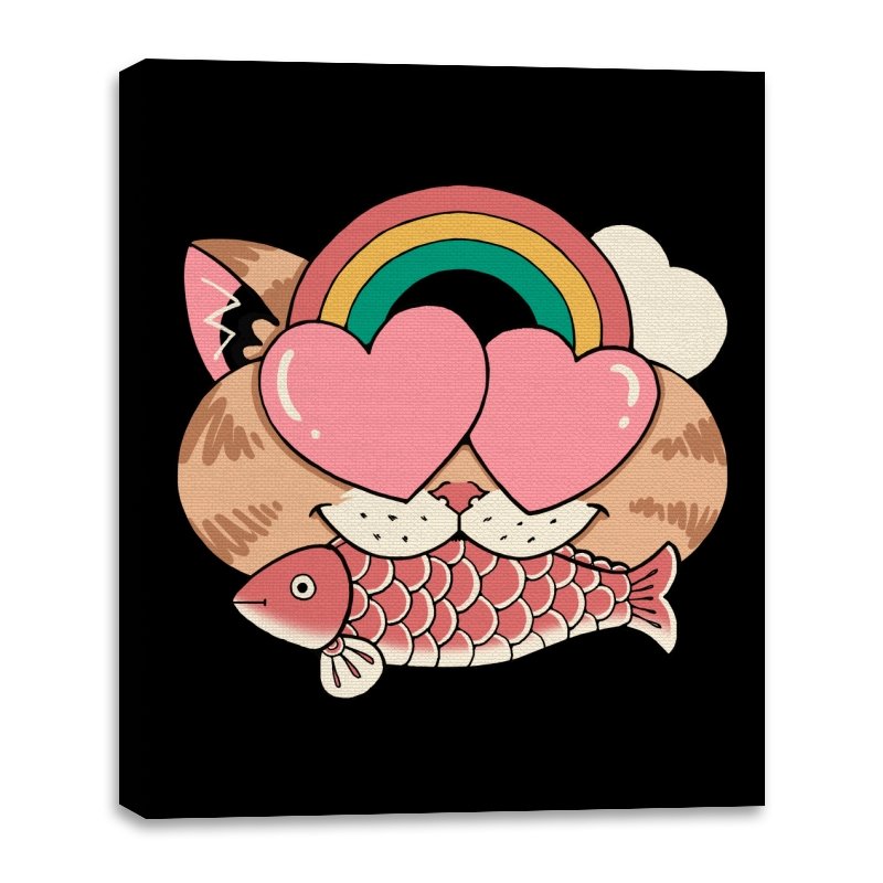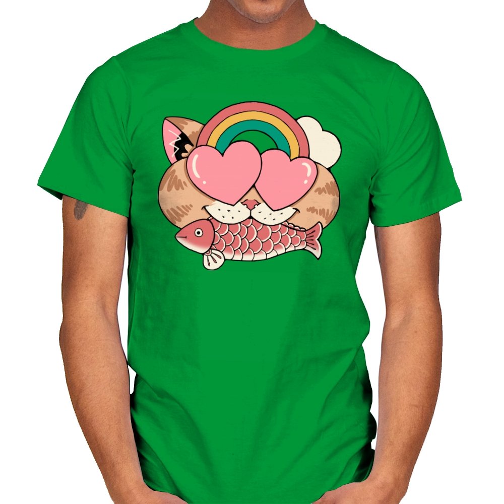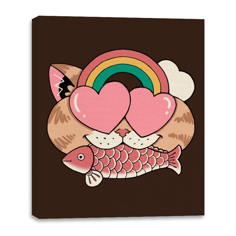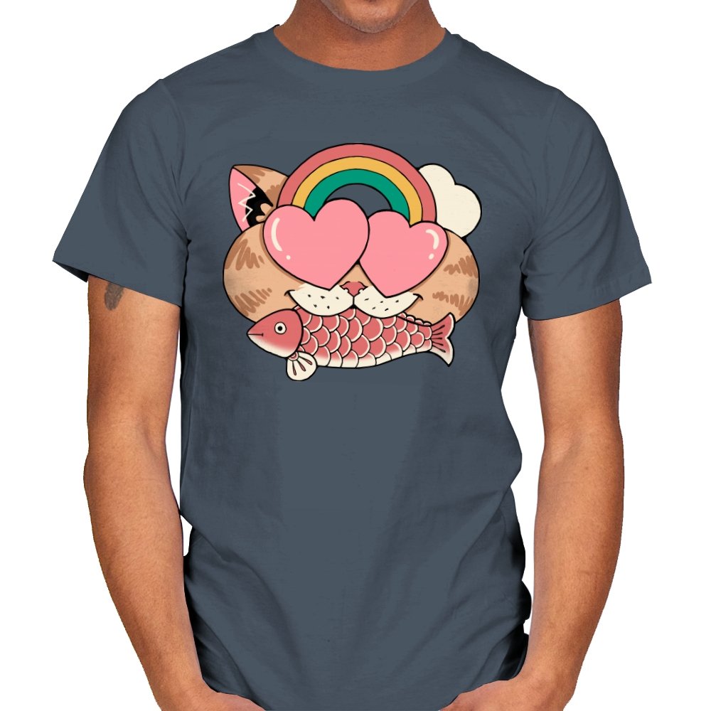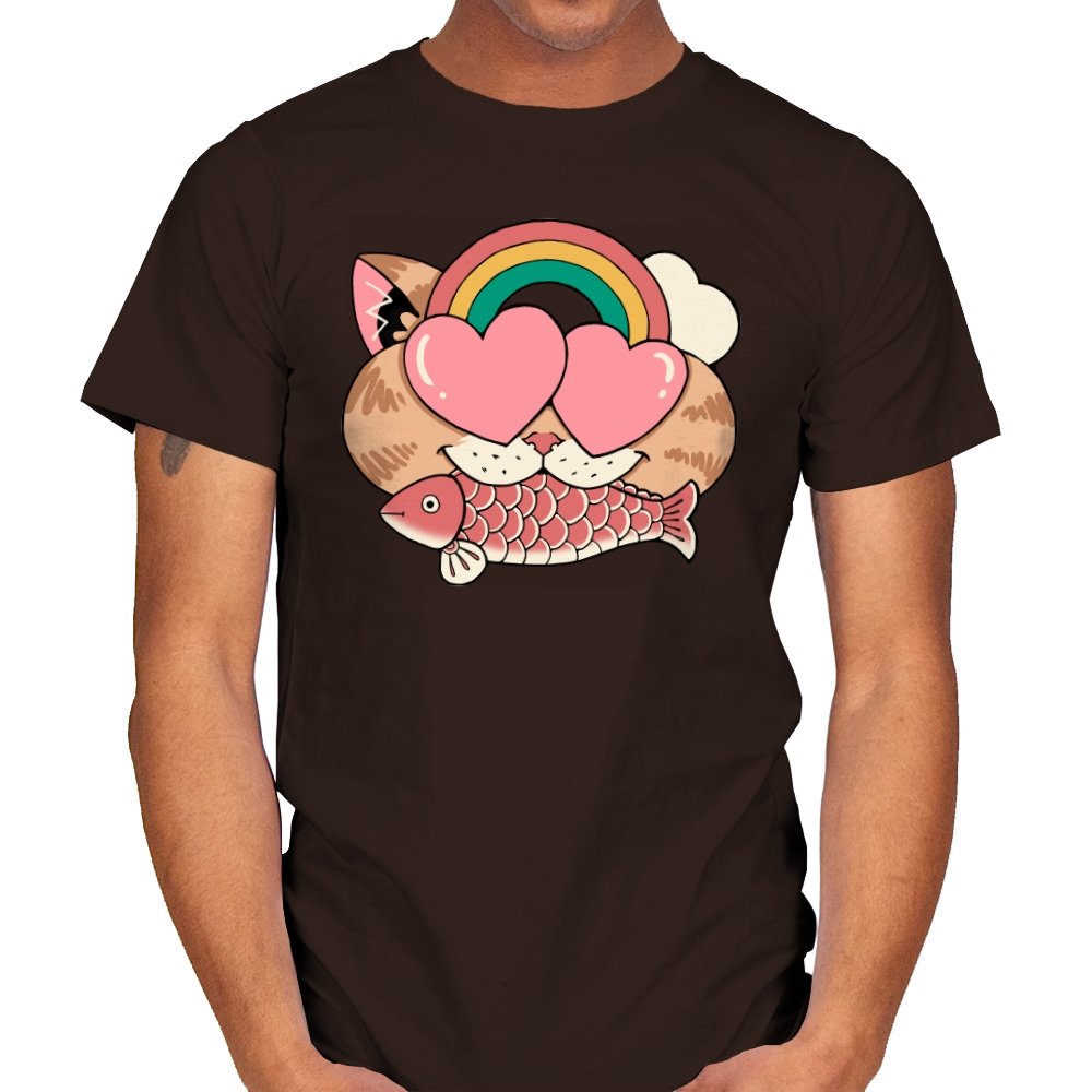 Whimsical Whiskers I captures the playful spirit of a cat with heart-shaped eyes, rainbow dreams, and a fish in tow. The design combines cute and quirky elements—like the cat’s love-struck expression and the vibrant colors of the rainbow—with a soft, retro aesthetic. It’s a fun and lighthearted tribute to the unexpected joys of life, all wrapped up in an adorable, animal-inspired design.
