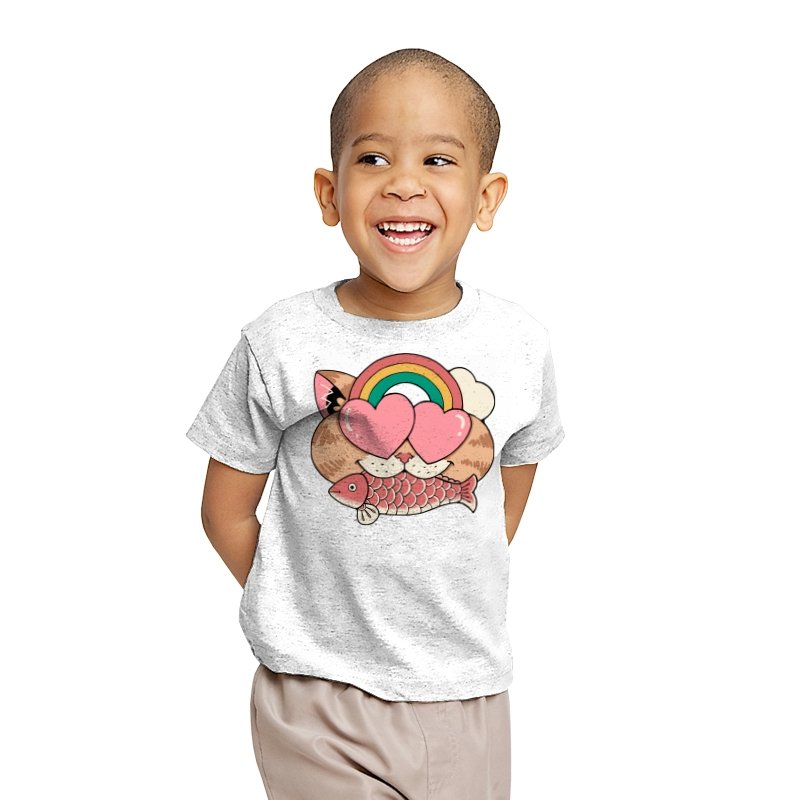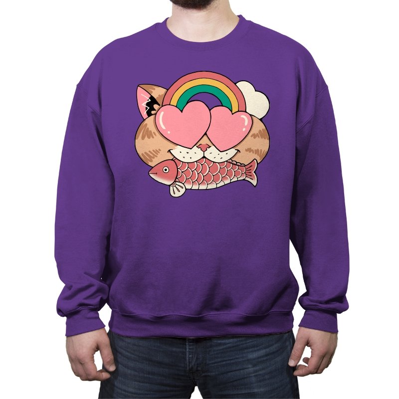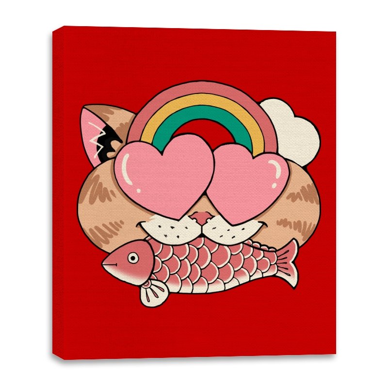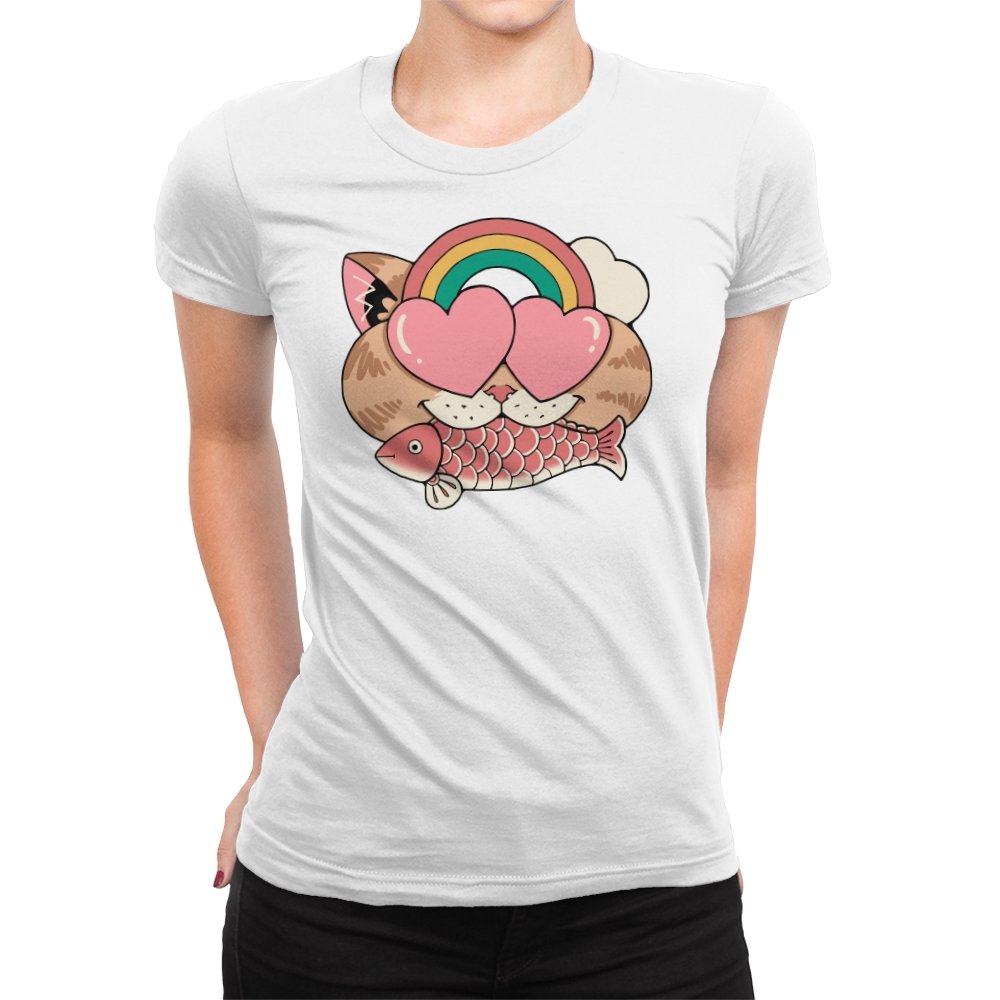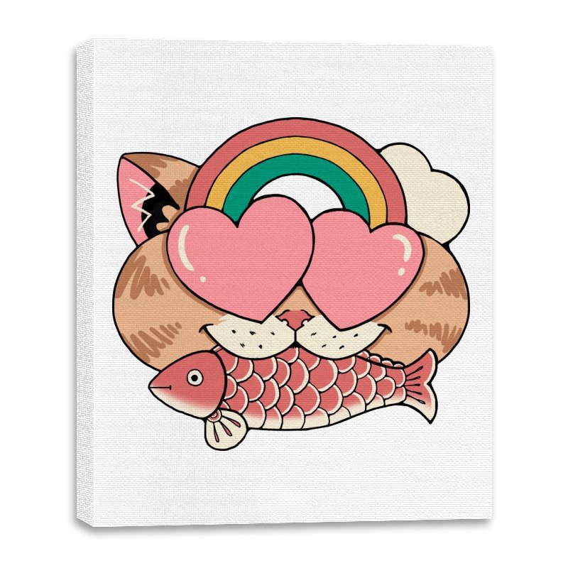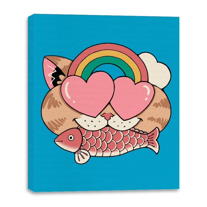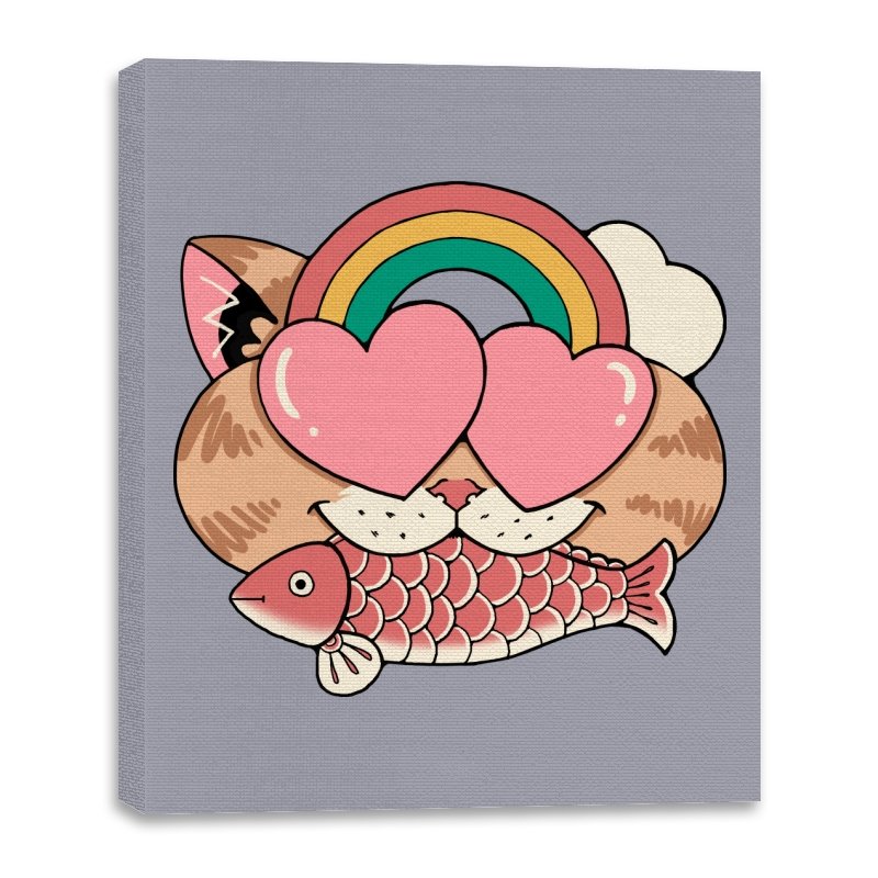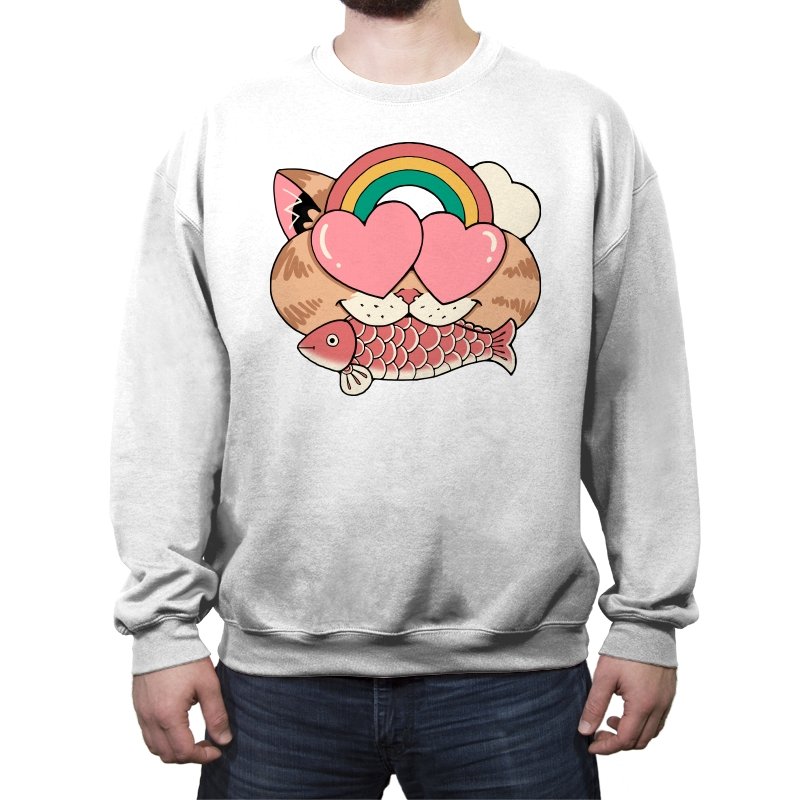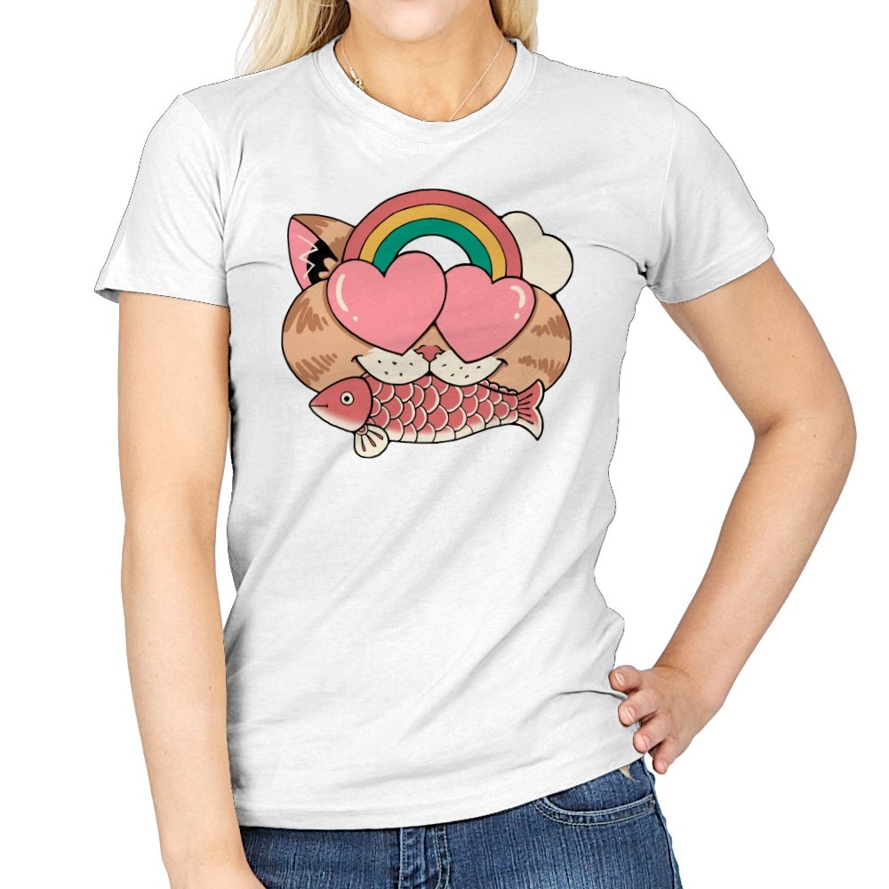 Whimsical Whiskers I captures the playful spirit of a cat with heart-shaped eyes, rainbow dreams, and a fish in tow. The design combines cute and quirky elements—like the cat’s love-struck expression and the vibrant colors of the rainbow—with a soft, retro aesthetic. It’s a fun and lighthearted tribute to the unexpected joys of life, all wrapped up in an adorable, animal-inspired design.