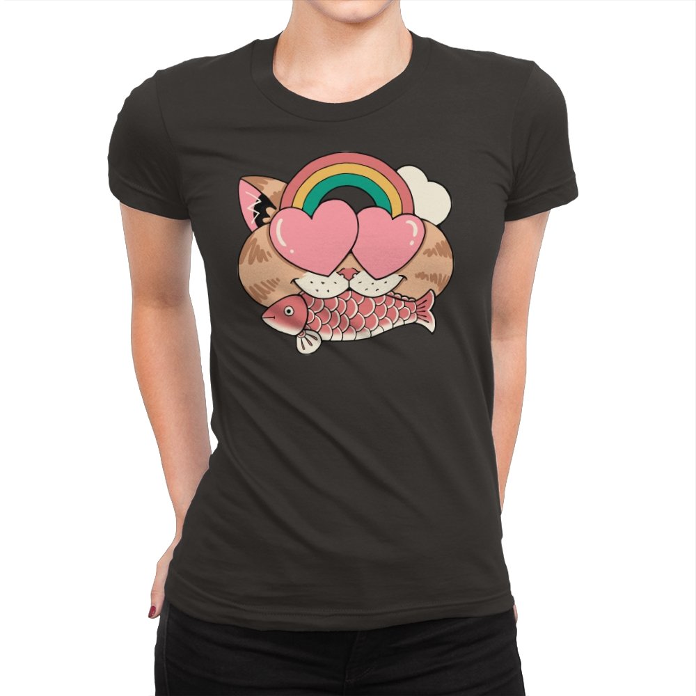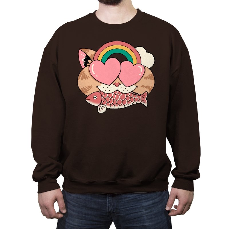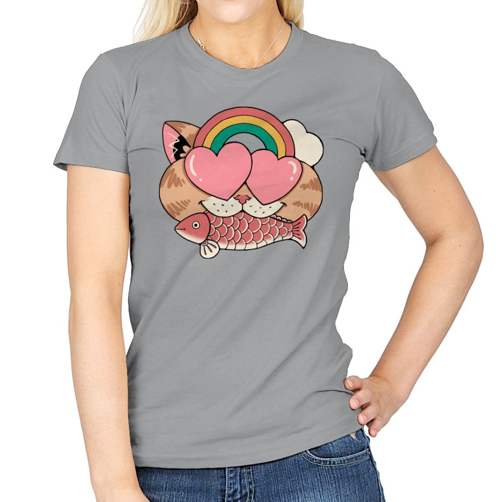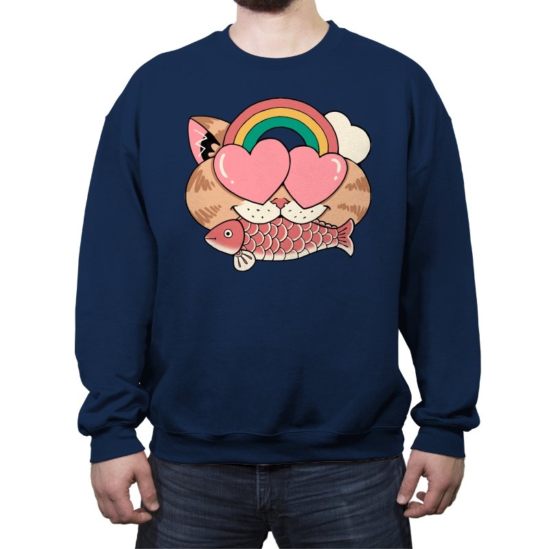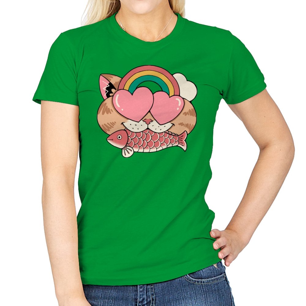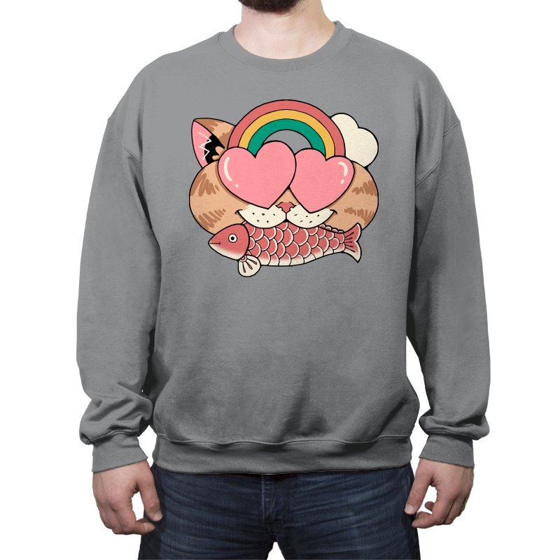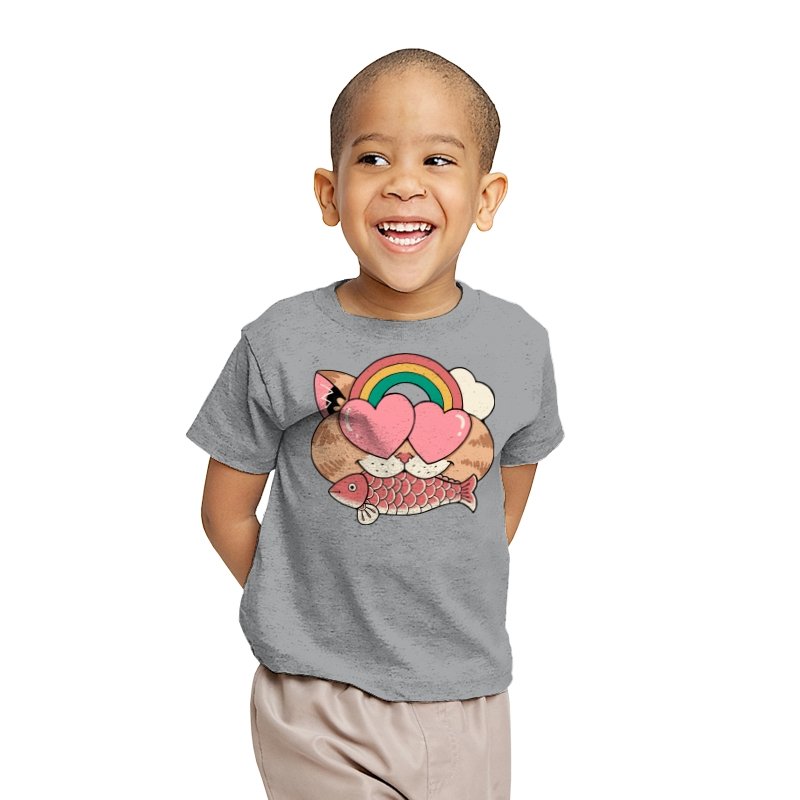 Whimsical Whiskers I captures the playful spirit of a cat with heart-shaped eyes, rainbow dreams, and a fish in tow. The design combines cute and quirky elements—like the cat’s love-struck expression and the vibrant colors of the rainbow—with a soft, retro aesthetic. It’s a fun and lighthearted tribute to the unexpected joys of life, all wrapped up in an adorable, animal-inspired design.