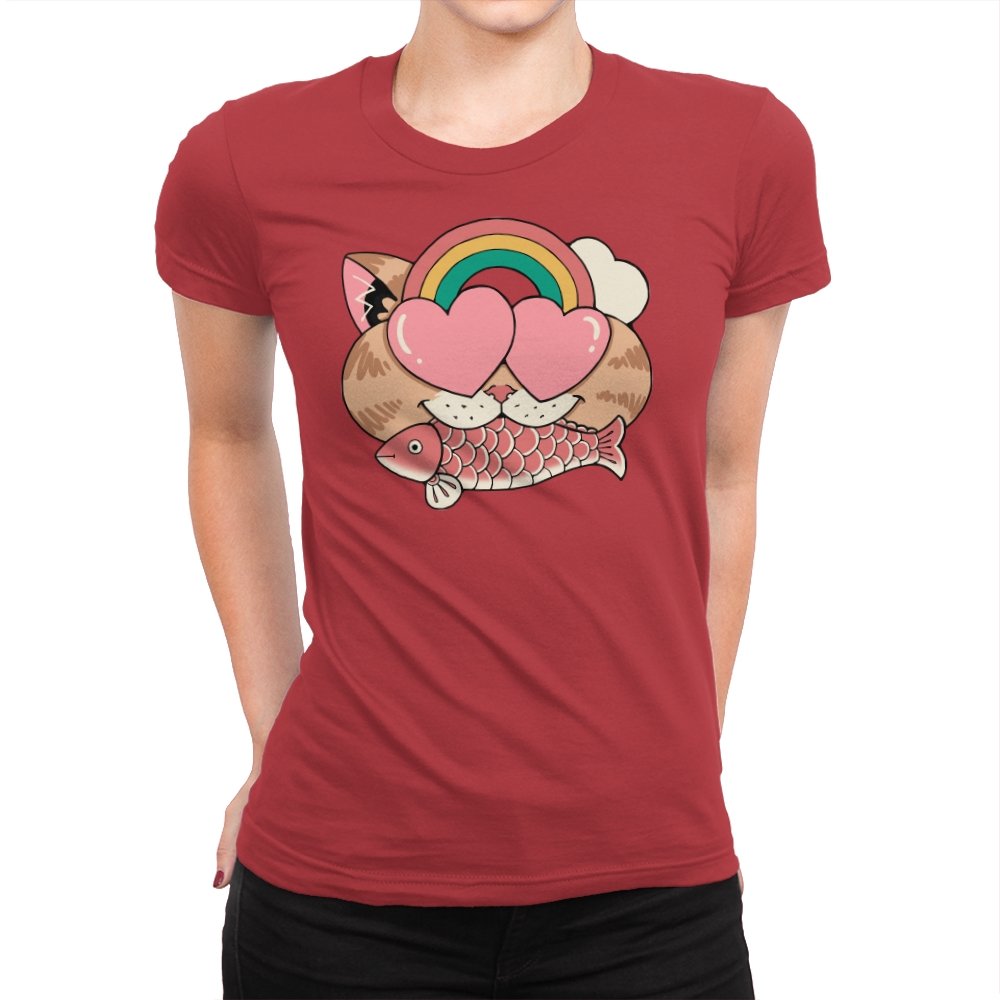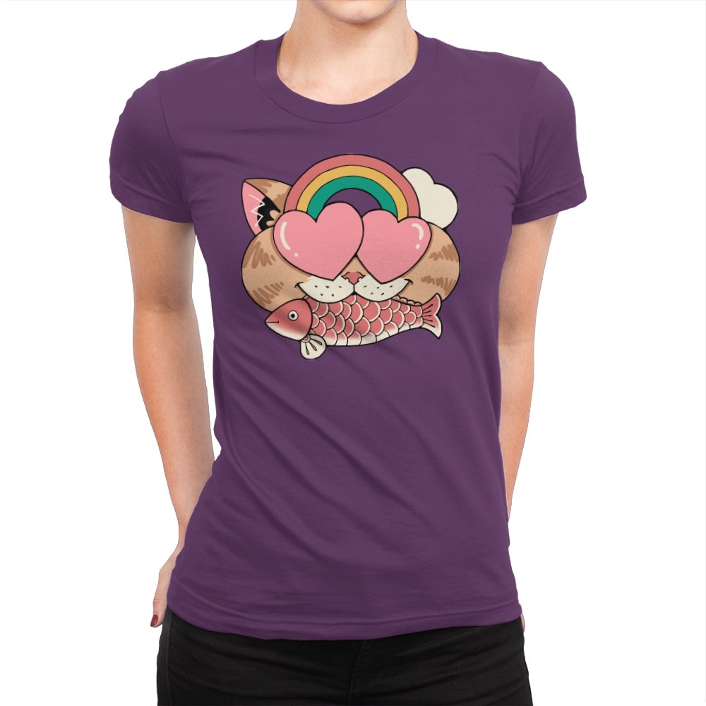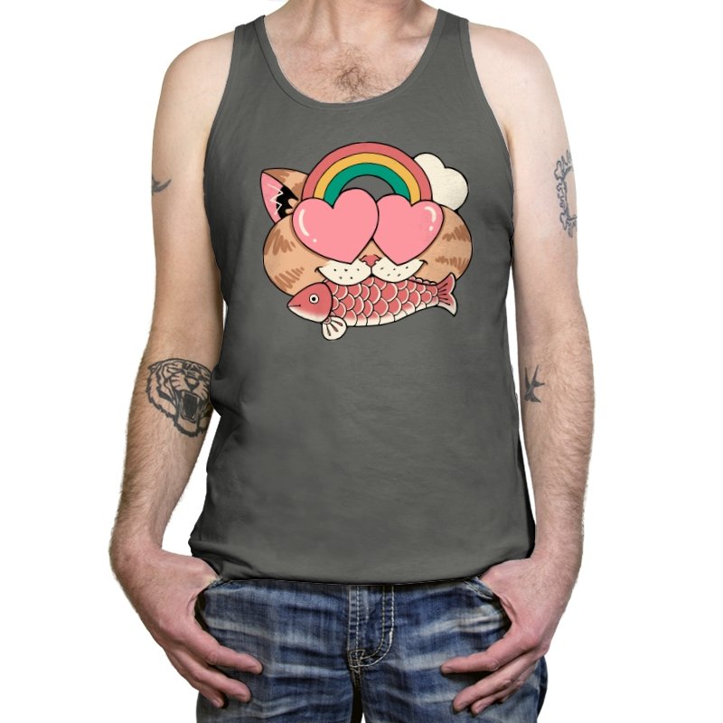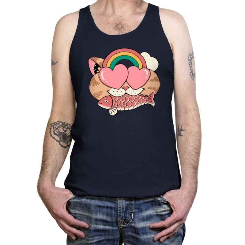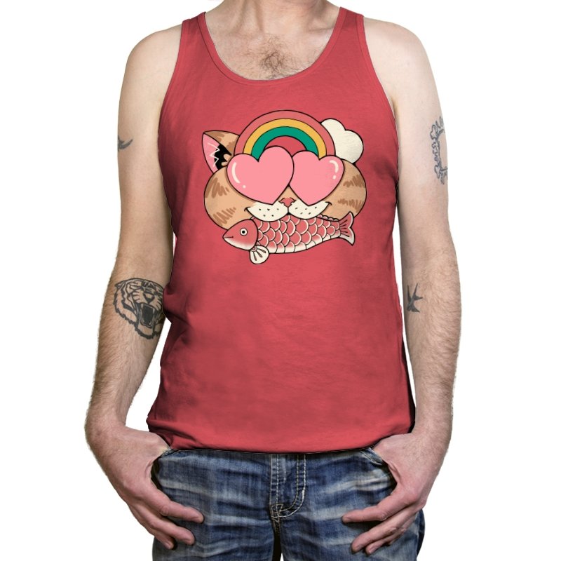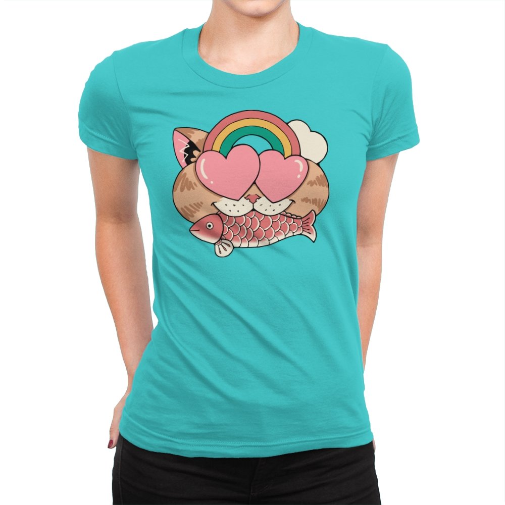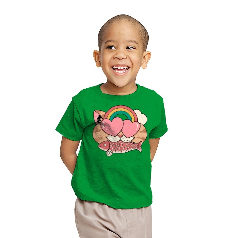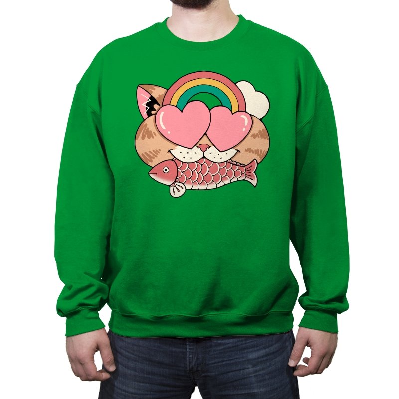 Whimsical Whiskers I captures the playful spirit of a cat with heart-shaped eyes, rainbow dreams, and a fish in tow. The design combines cute and quirky elements—like the cat’s love-struck expression and the vibrant colors of the rainbow—with a soft, retro aesthetic. It’s a fun and lighthearted tribute to the unexpected joys of life, all wrapped up in an adorable, animal-inspired design.