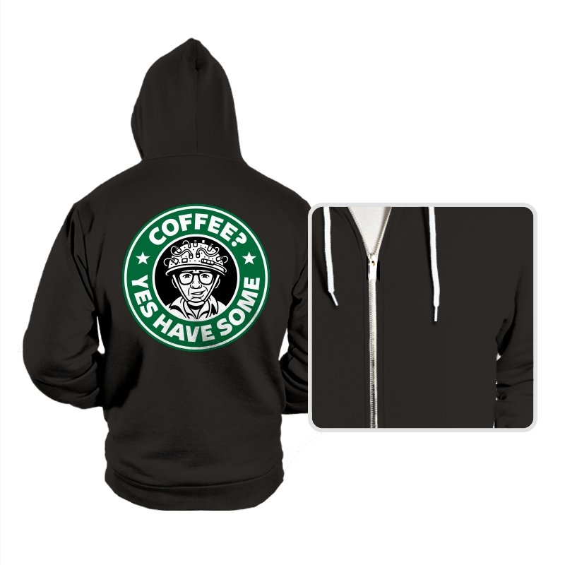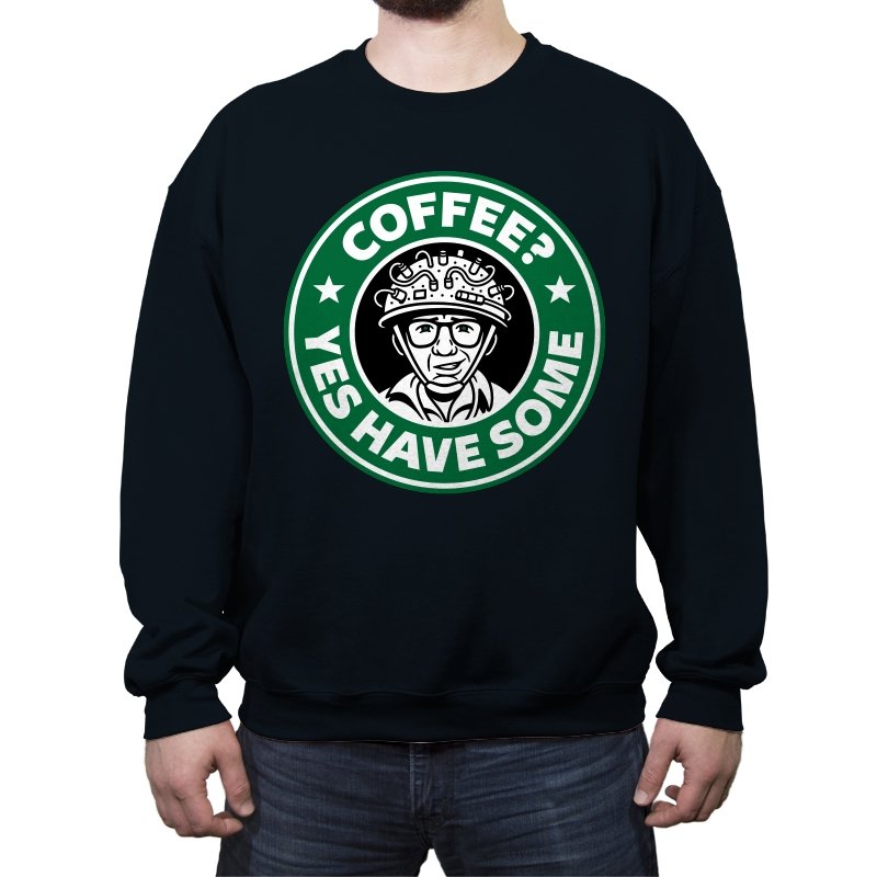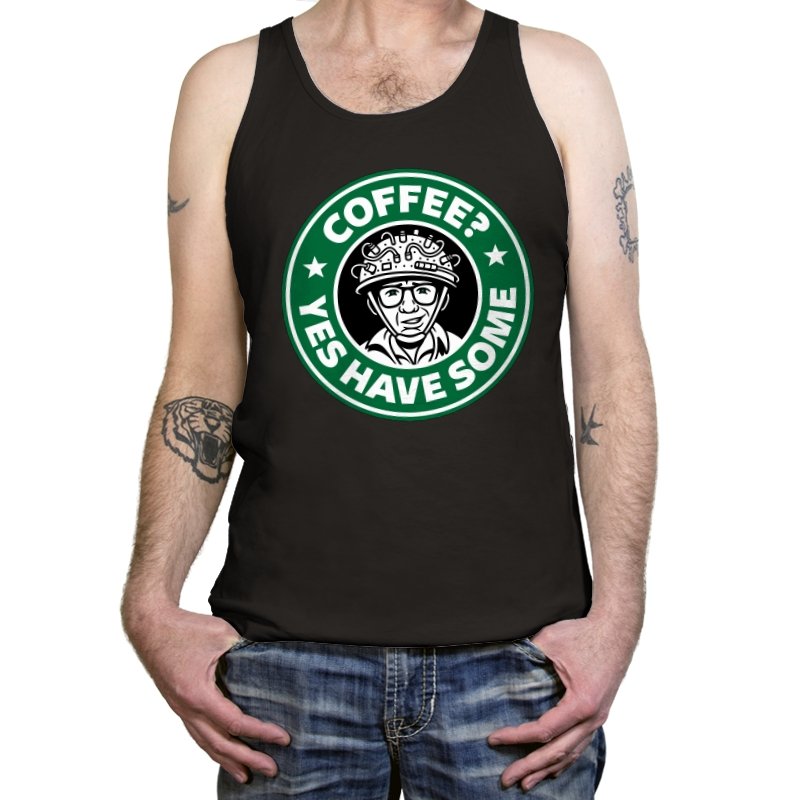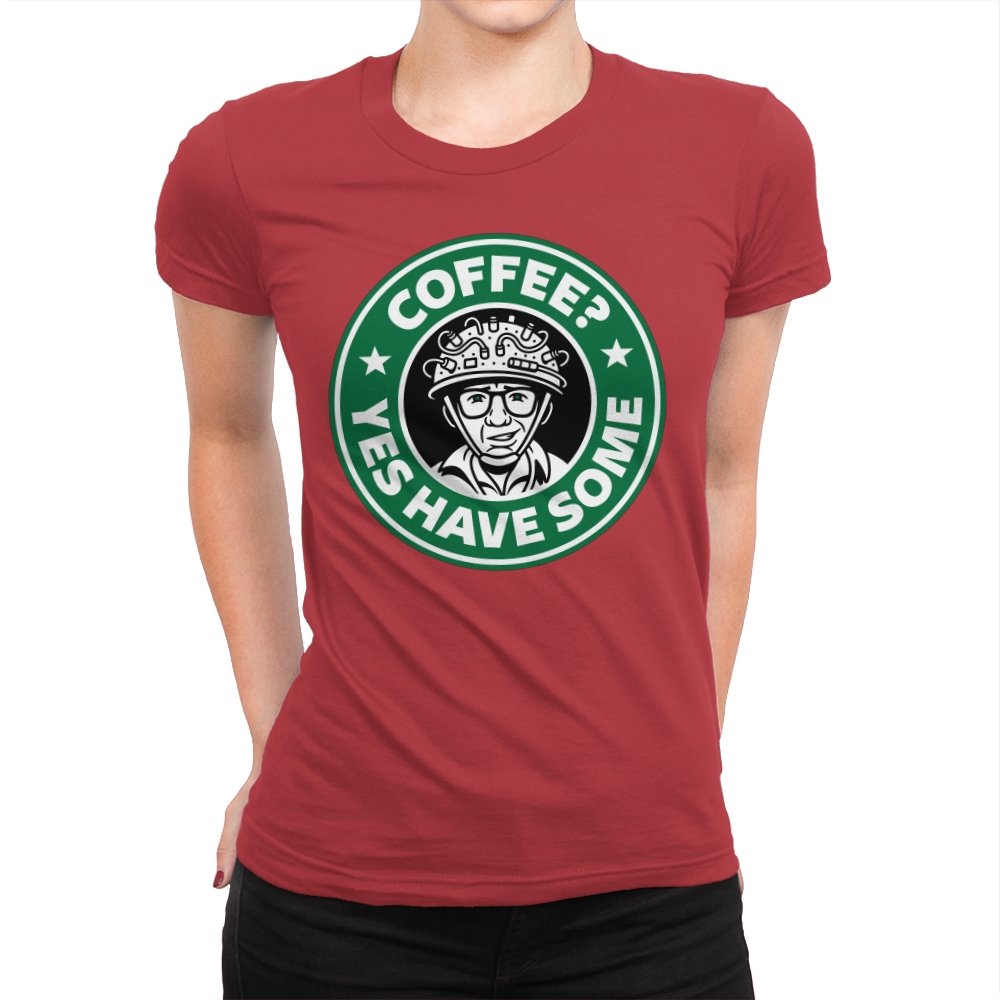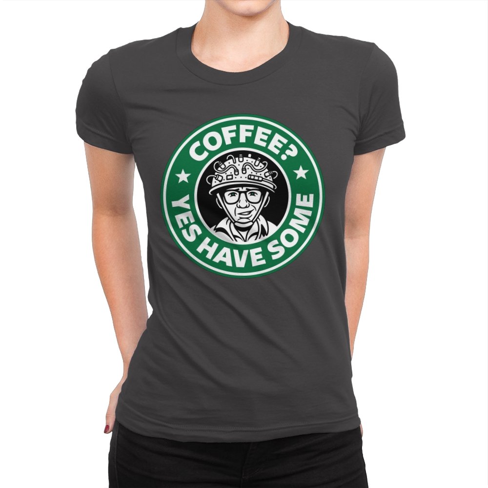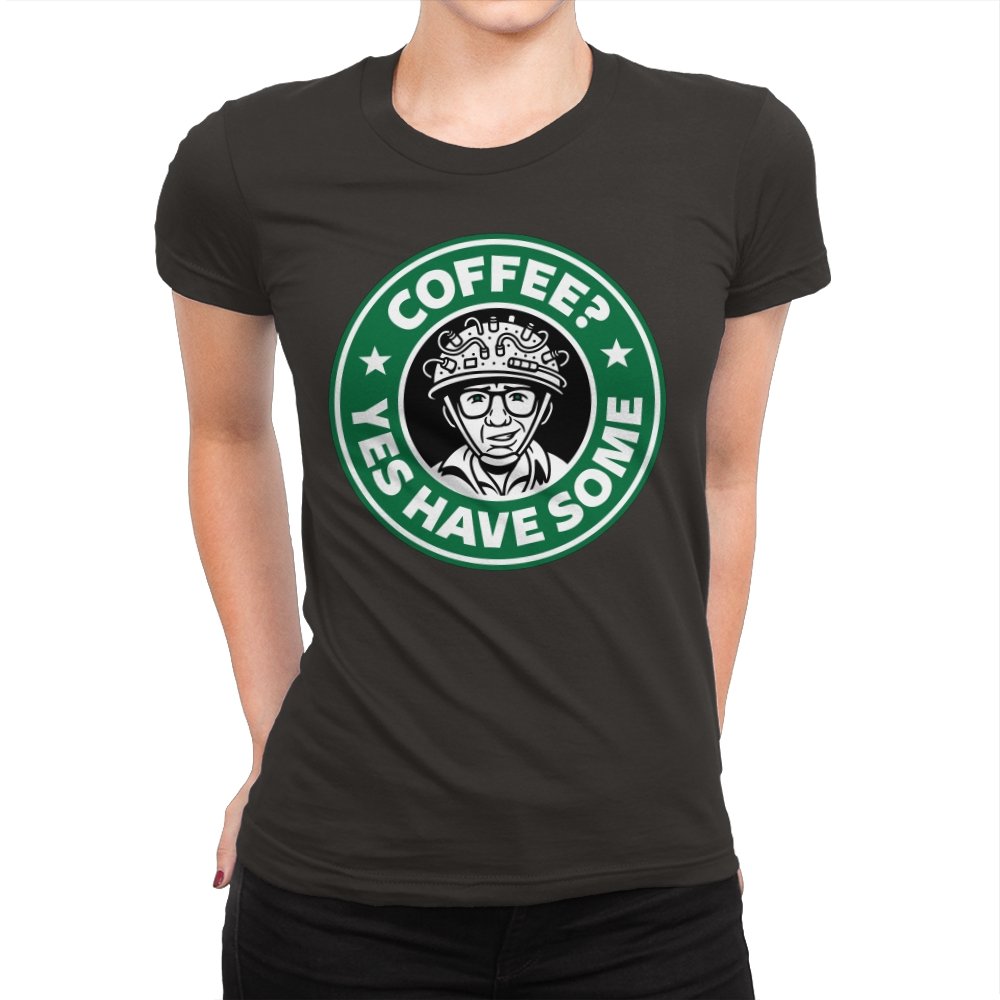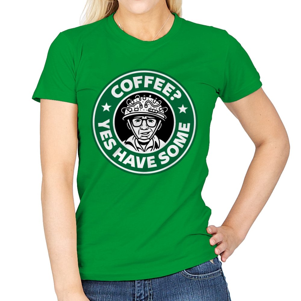 This design leans into a familiar coffee logo, then swaps in a calm, brilliant figure who knows exactly what he wants. The circular badge, bold green palette, and knowing expression sell the joke immediately. It is a quiet nod to caffeine rituals and sharp minds, made for people who caught the reference the first time they heard it. Nothing is explained because it does not need to be.